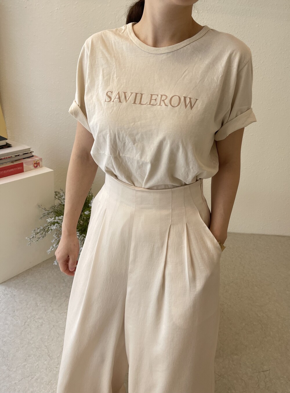 하이웨이스트가 부담 스러우셨던 분들께서는 더 반가울 팬츠로 그레이스제이만의 무드로 제안됩니다.