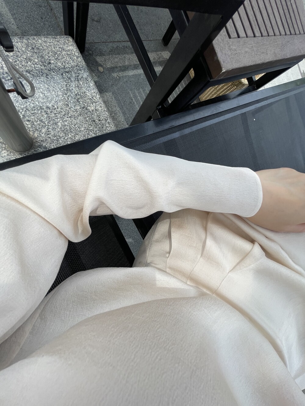 밑단까지 실키스트레치 소재로 마감되며, 스킨톤의 속옷과 매치해주시면 비침에 큰 구애 없이 입어지실거에요.