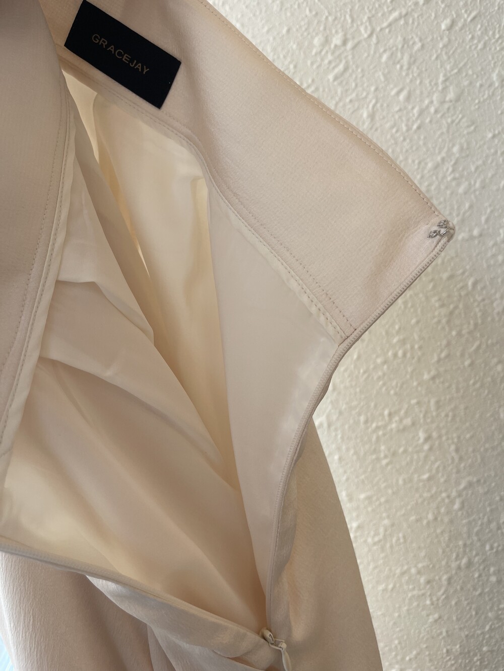 특히 옆선 지퍼 여밈으로 어느 방향에서 봐도 우아하고 섬세한 라인이 특징적입니다.