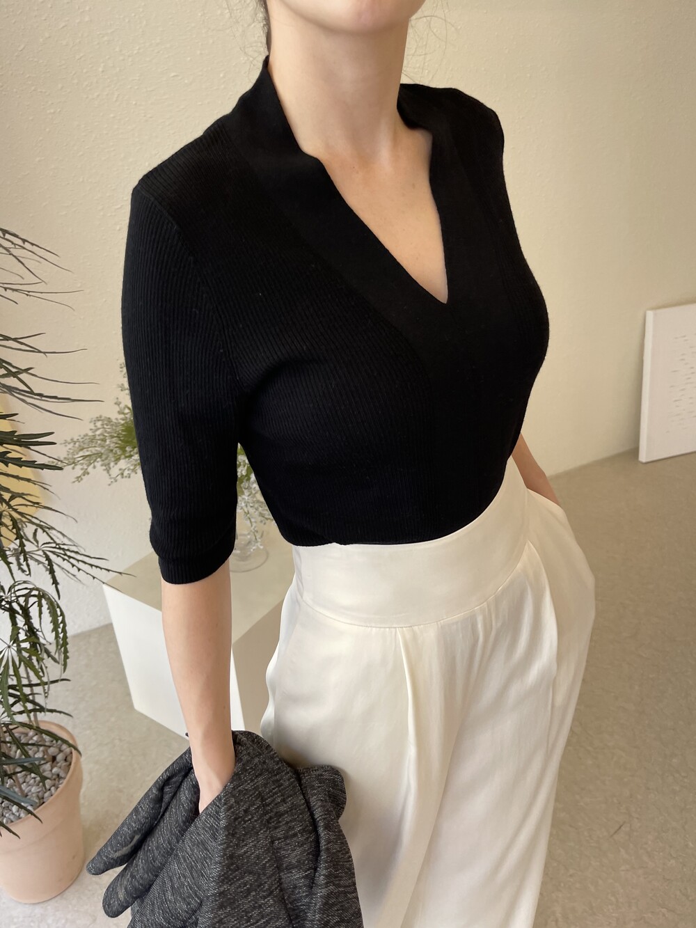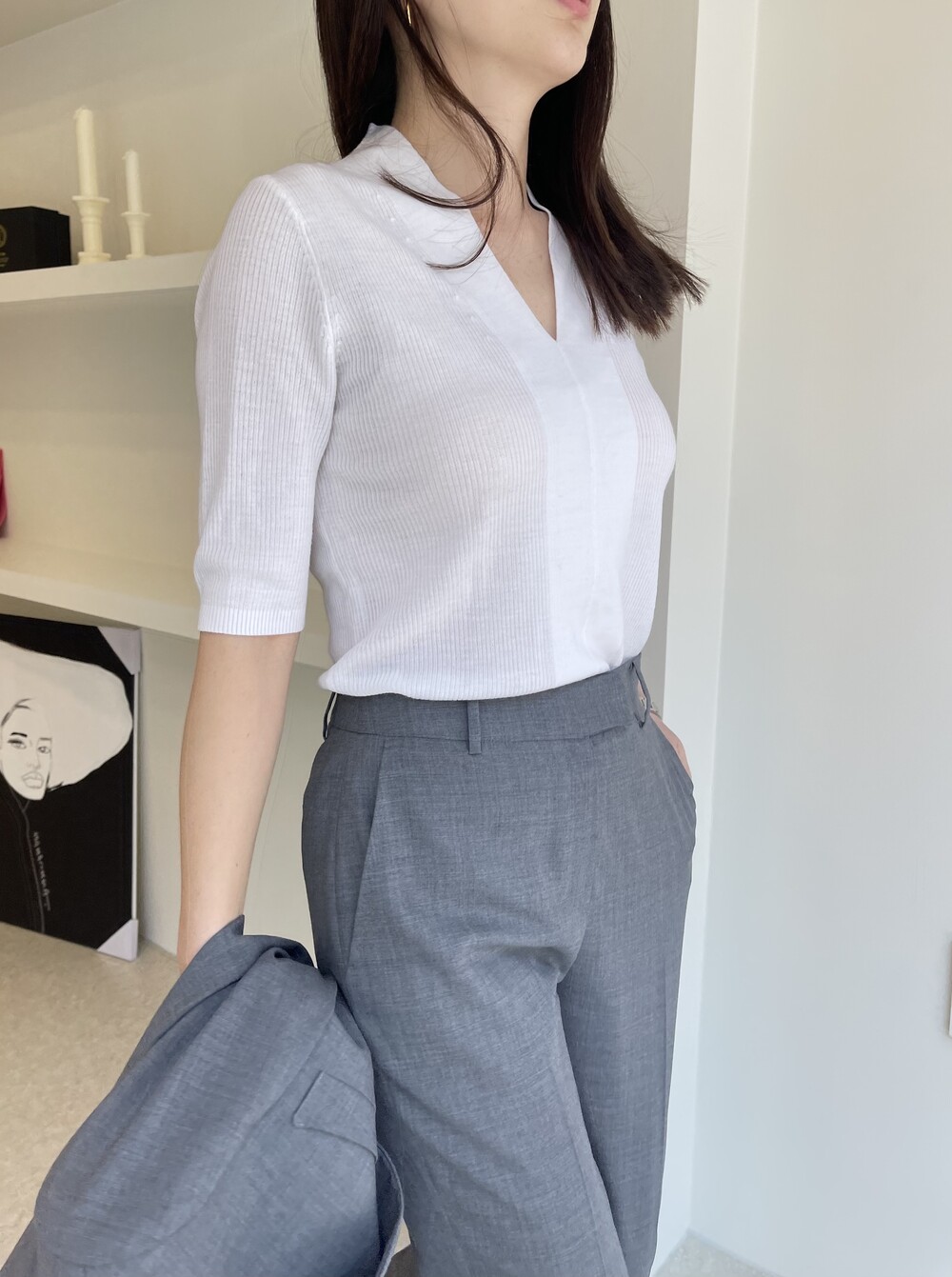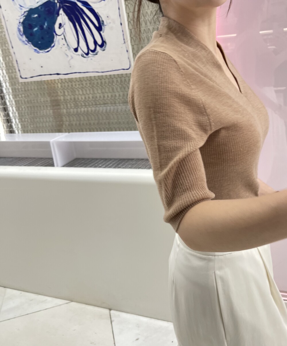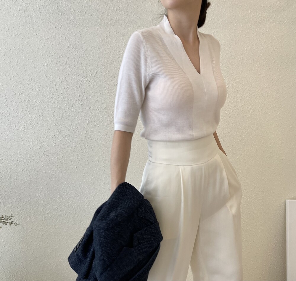 V넥 7부니트는 니트 단품만으로도 충분히 우아하고 단아한 멋을 가지고 있기에
