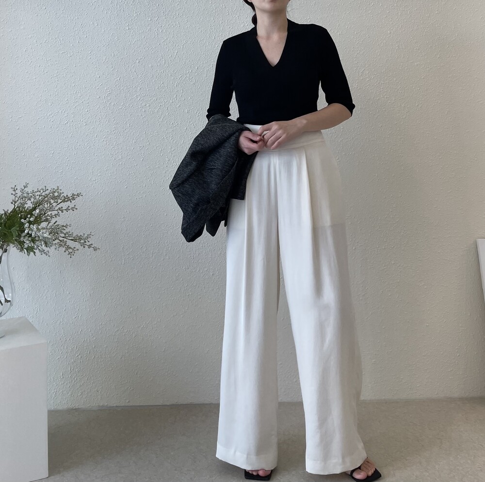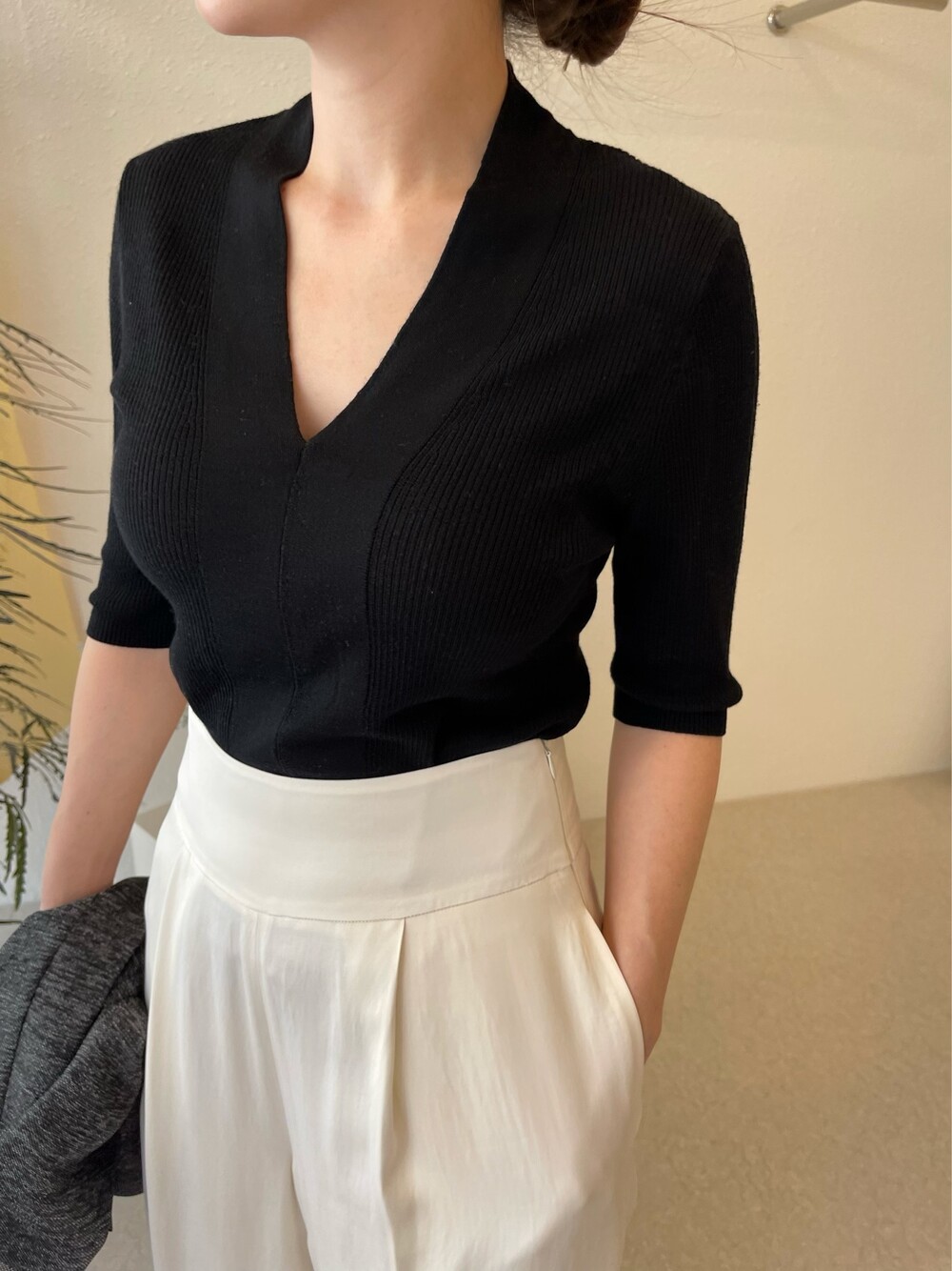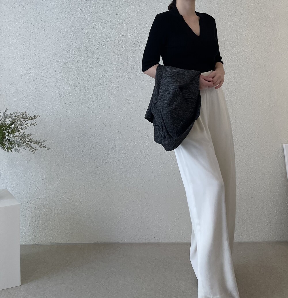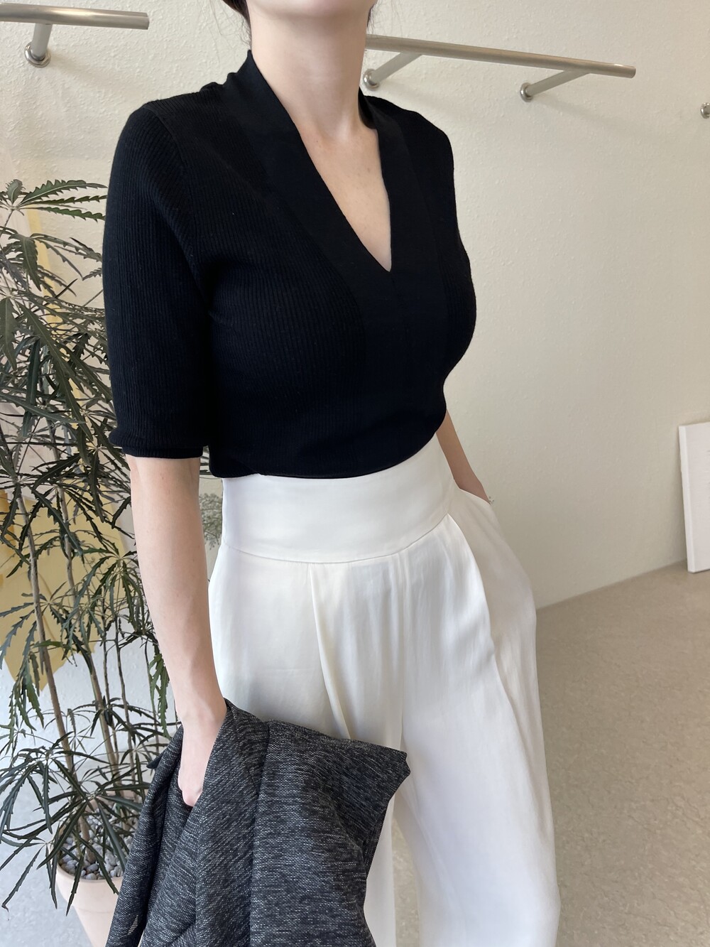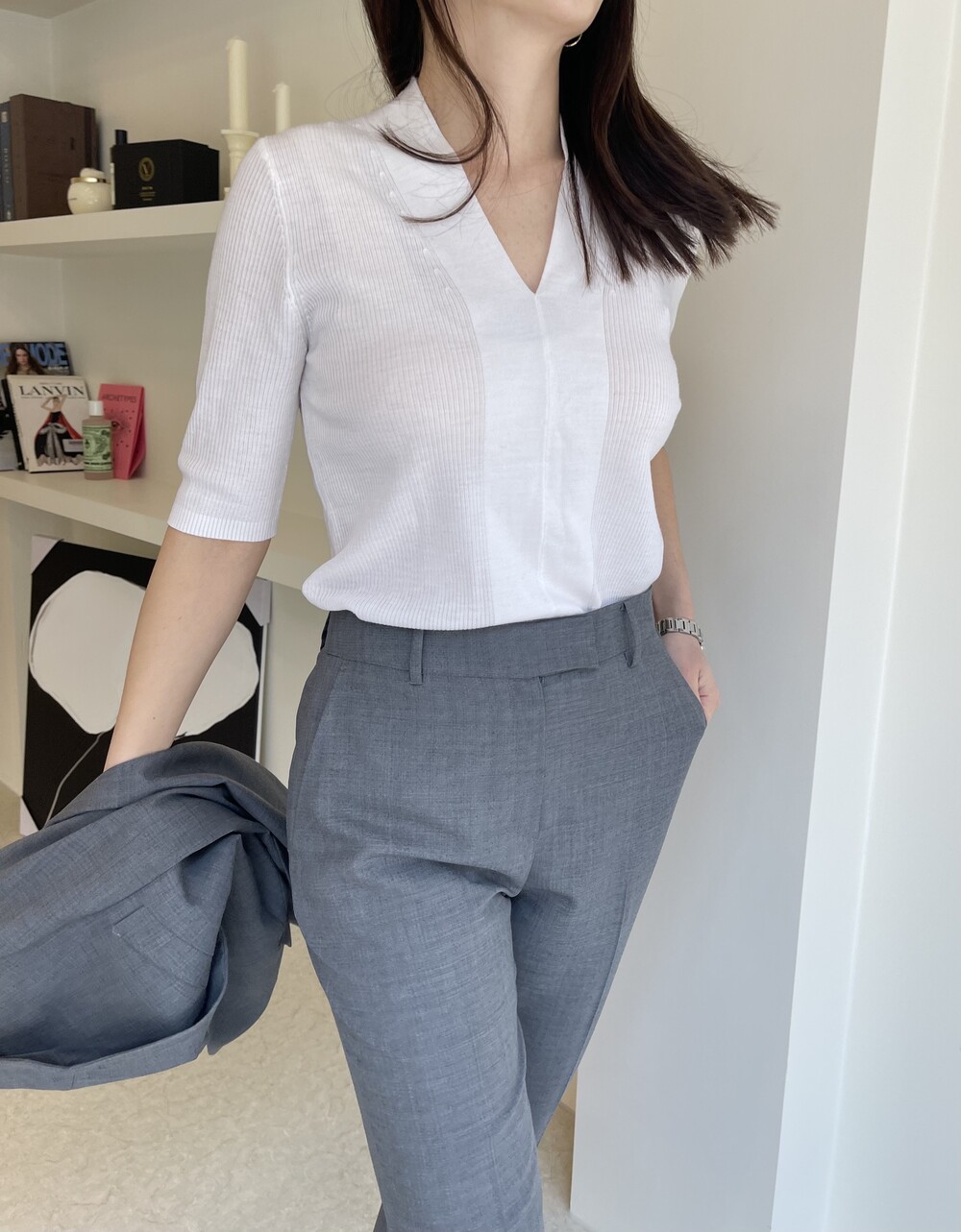 V넥 7부니트는 니트 단품만으로도 충분히 우아하고 단아한 멋을 가지고 있기에