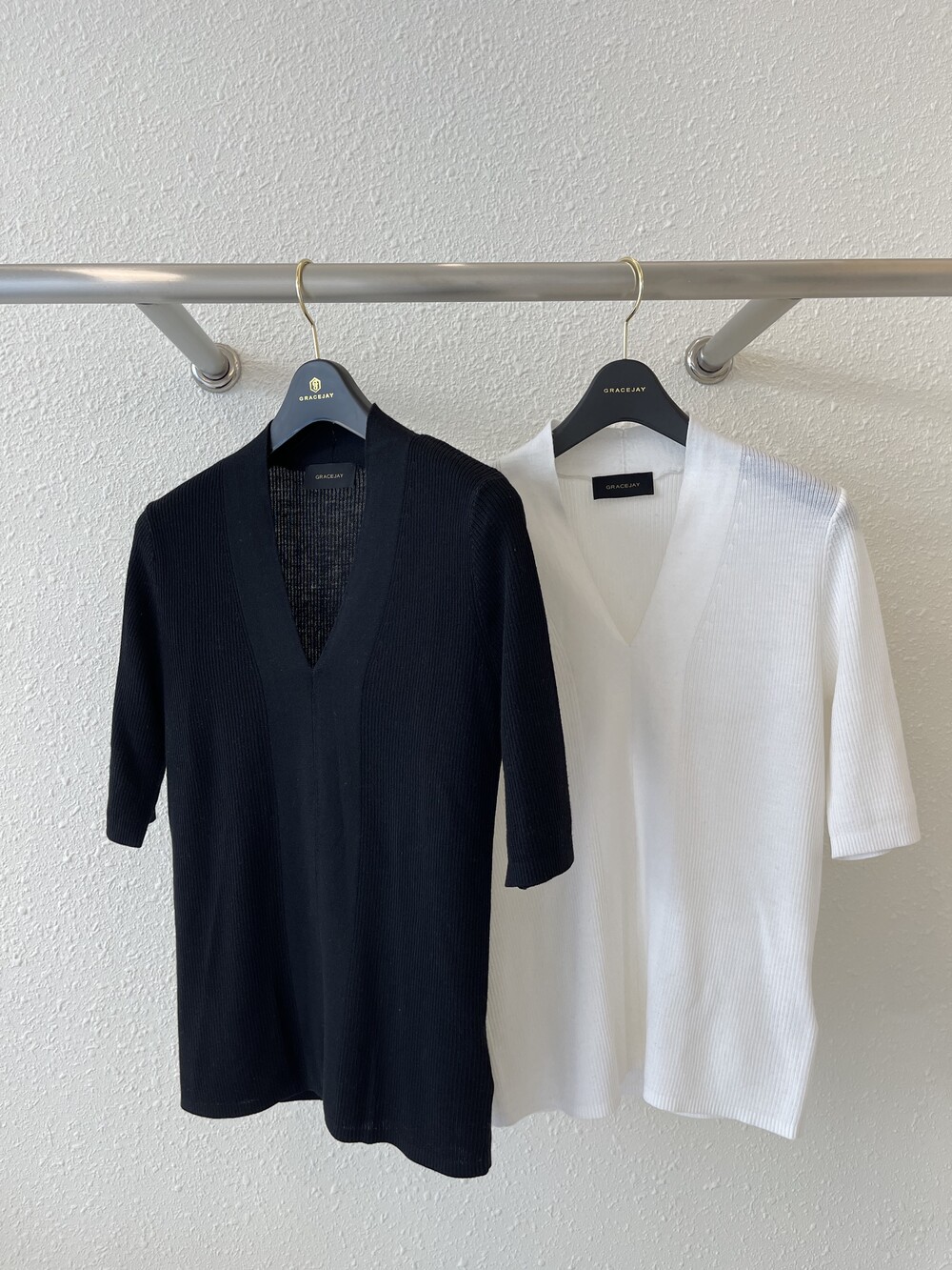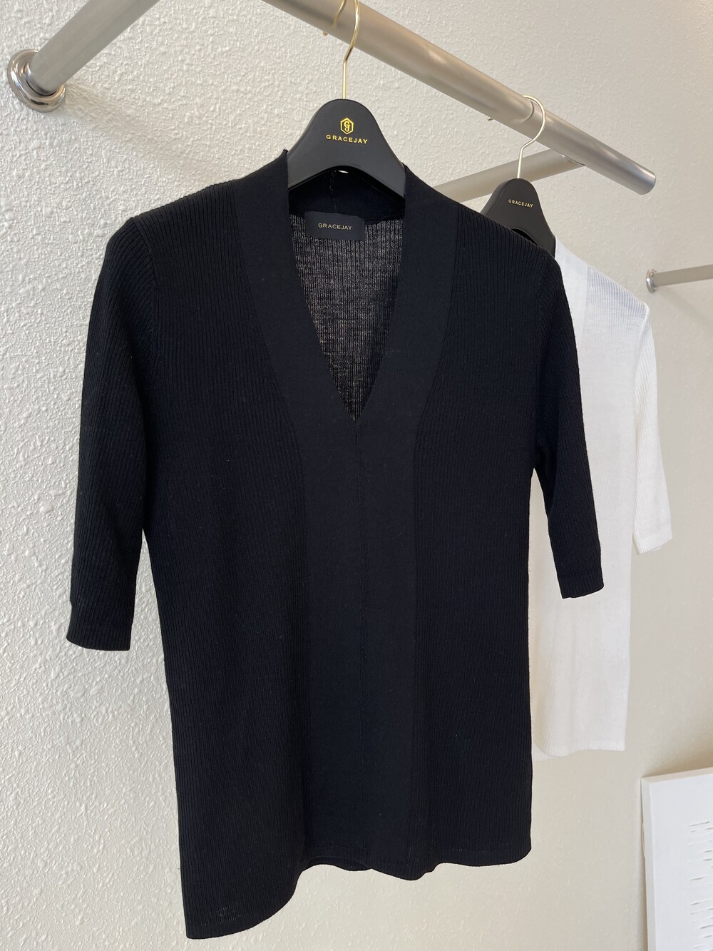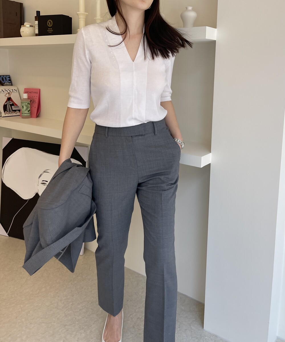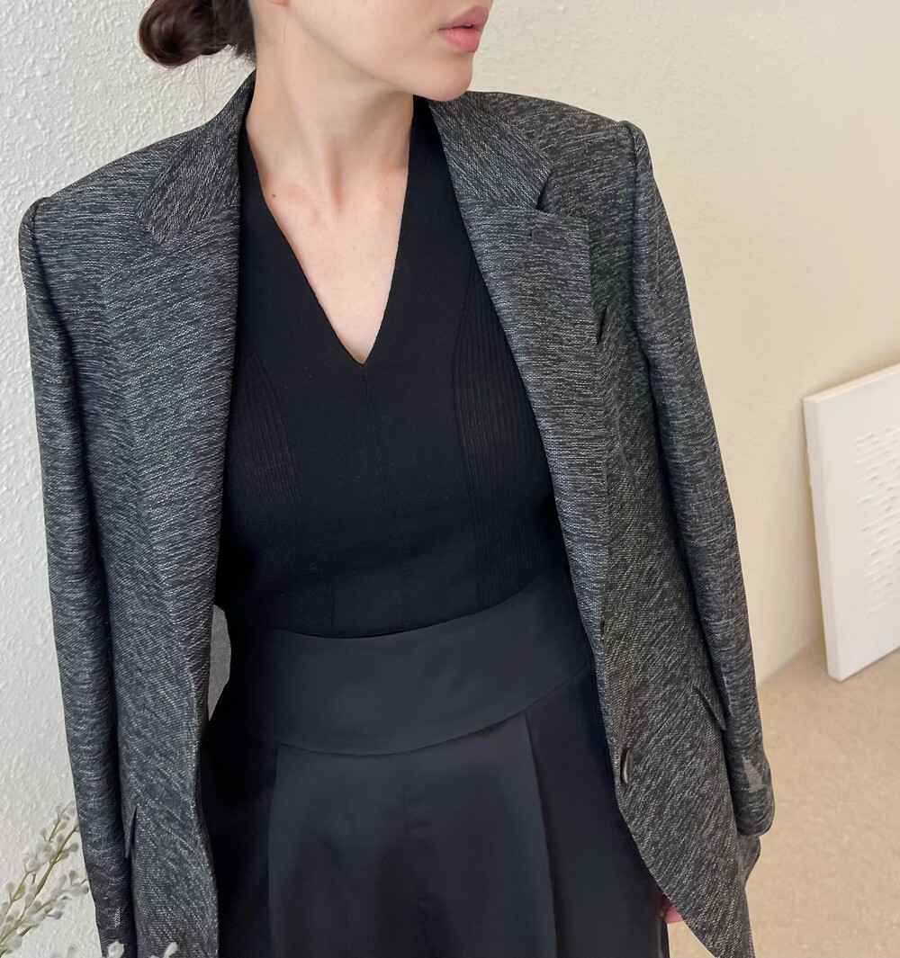 V넥 7부니트는 니트 단품만으로도 충분히 우아하고 단아한 멋을 가지고 있기에