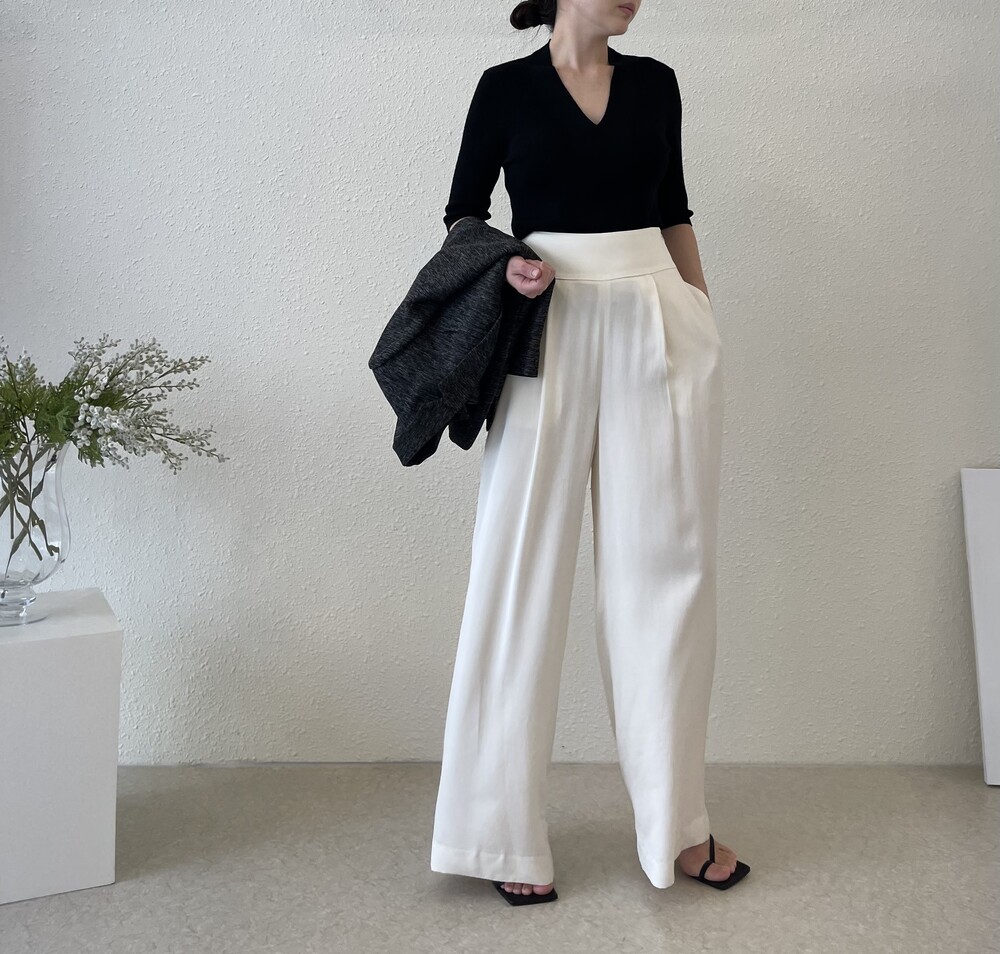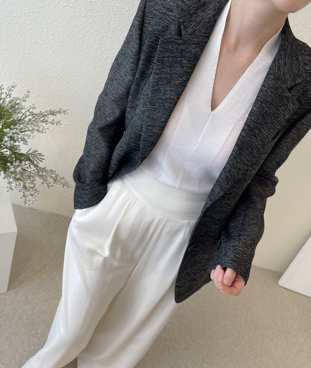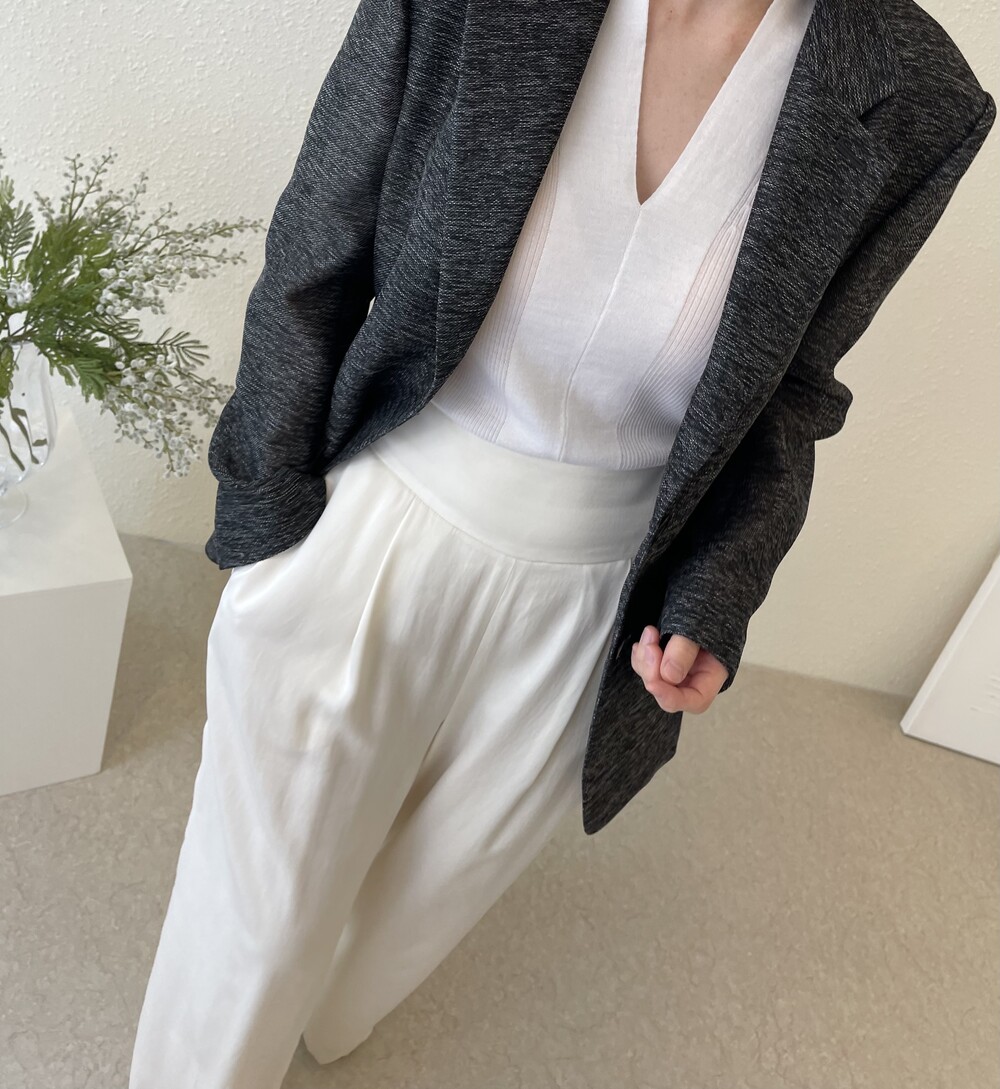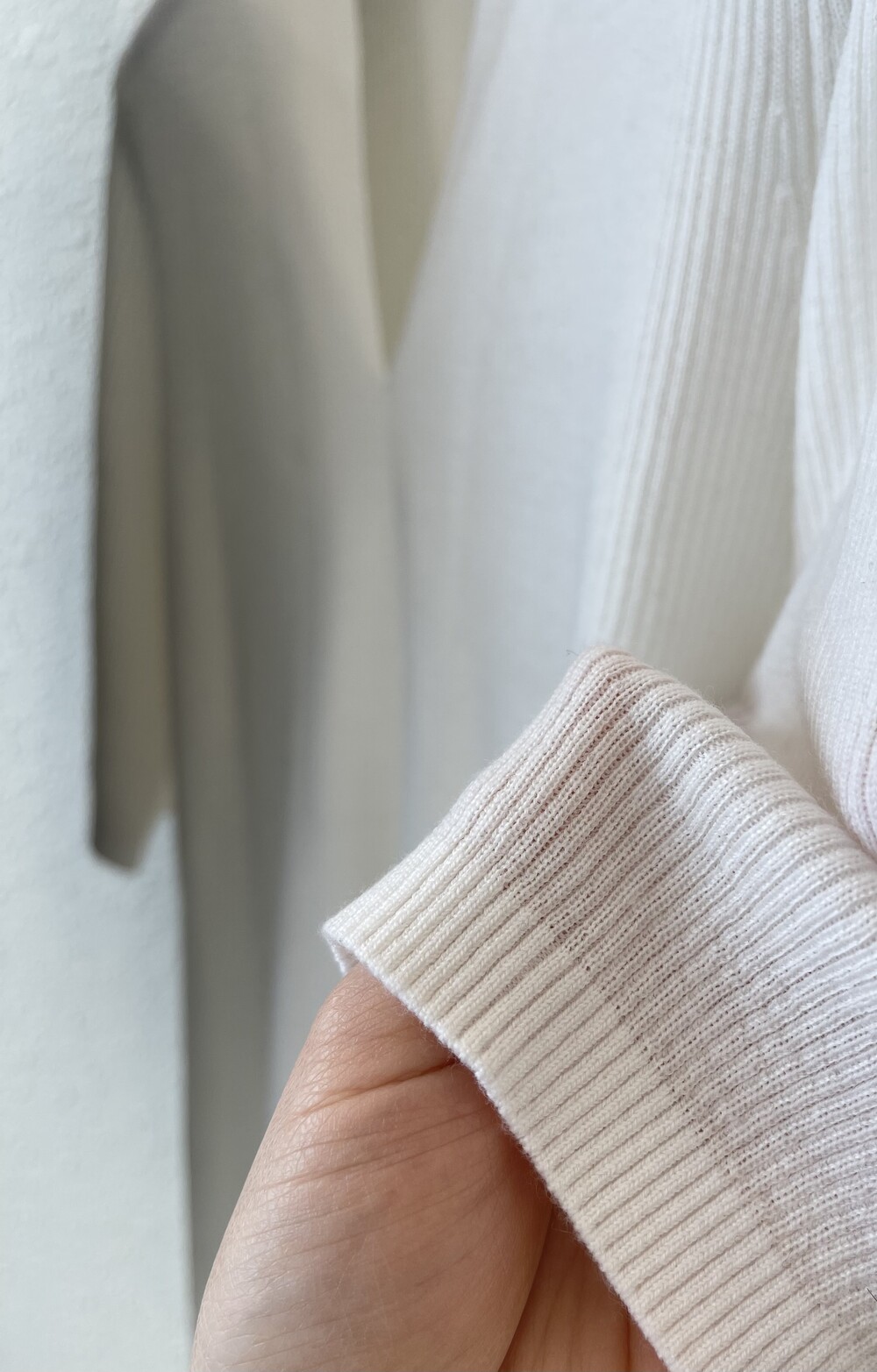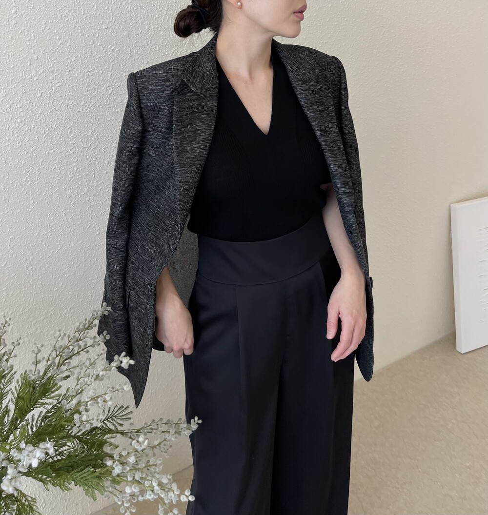 V넥 7부니트는 니트 단품만으로도 충분히 우아하고 단아한 멋을 가지고 있기에
