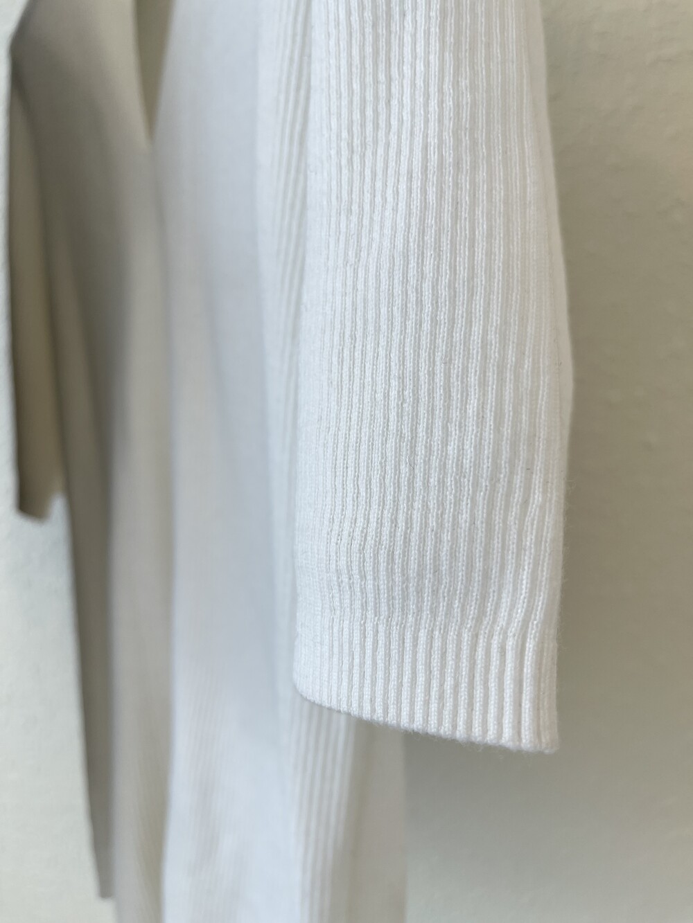 2 사이즈 / 어깨:37 / 가슴:39.5 / 소매기장: 30.5 / 총장: 58 (뒷목점에서 내린 기준) / V 깊이:16.5