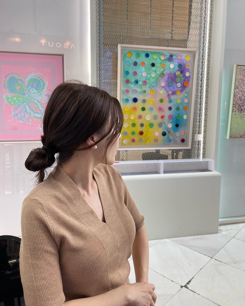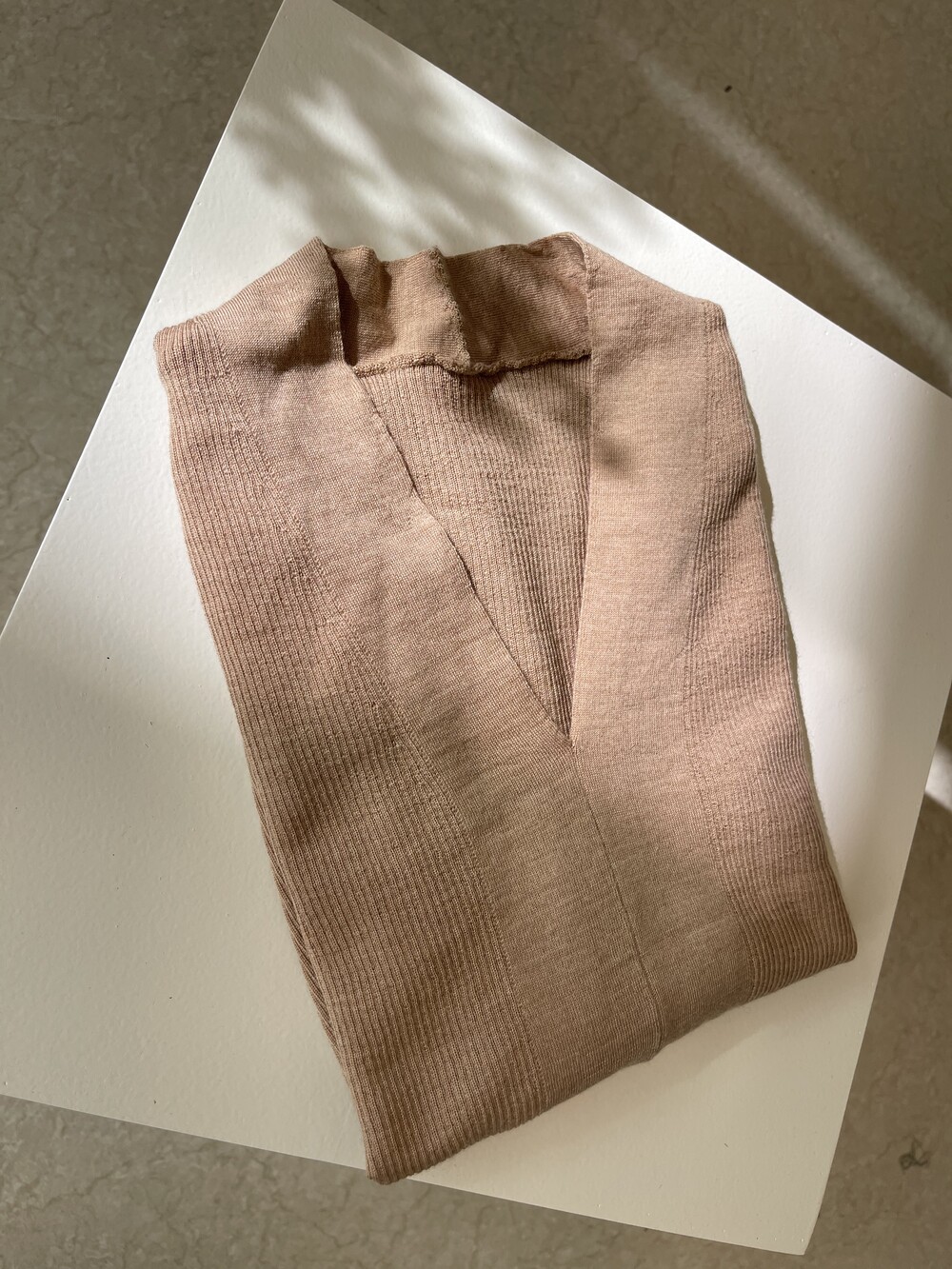 크림컬러의 비침 정도를 보여드리고자 연핑크의 속옷을 착용했습니다.