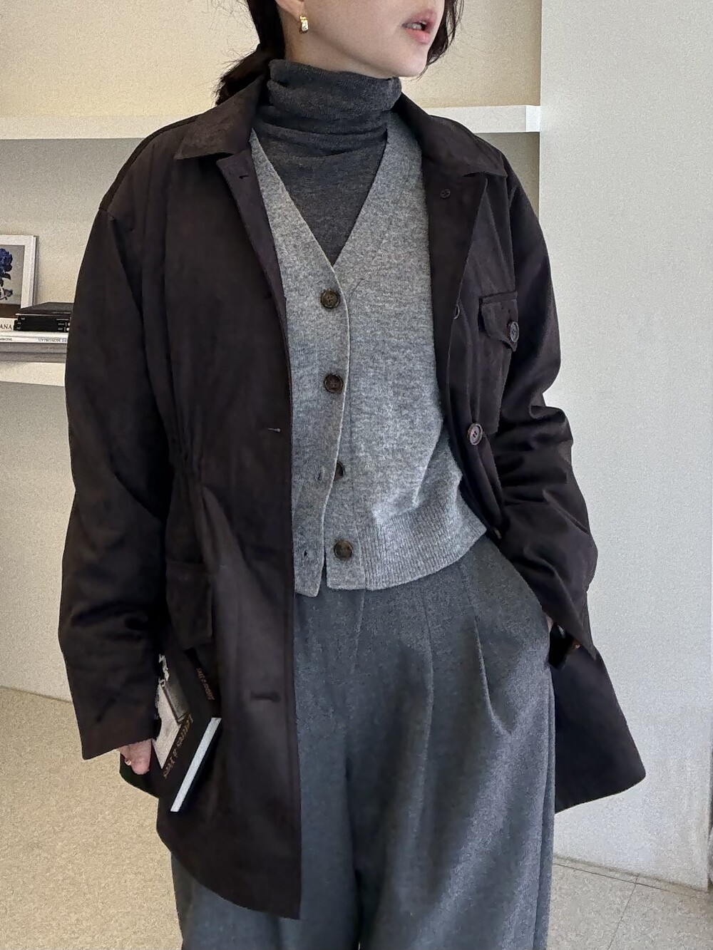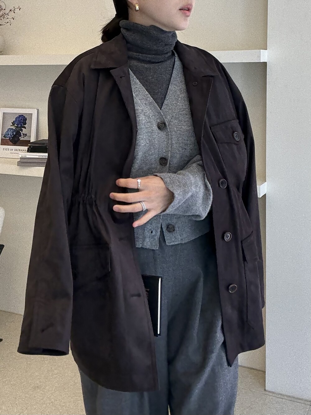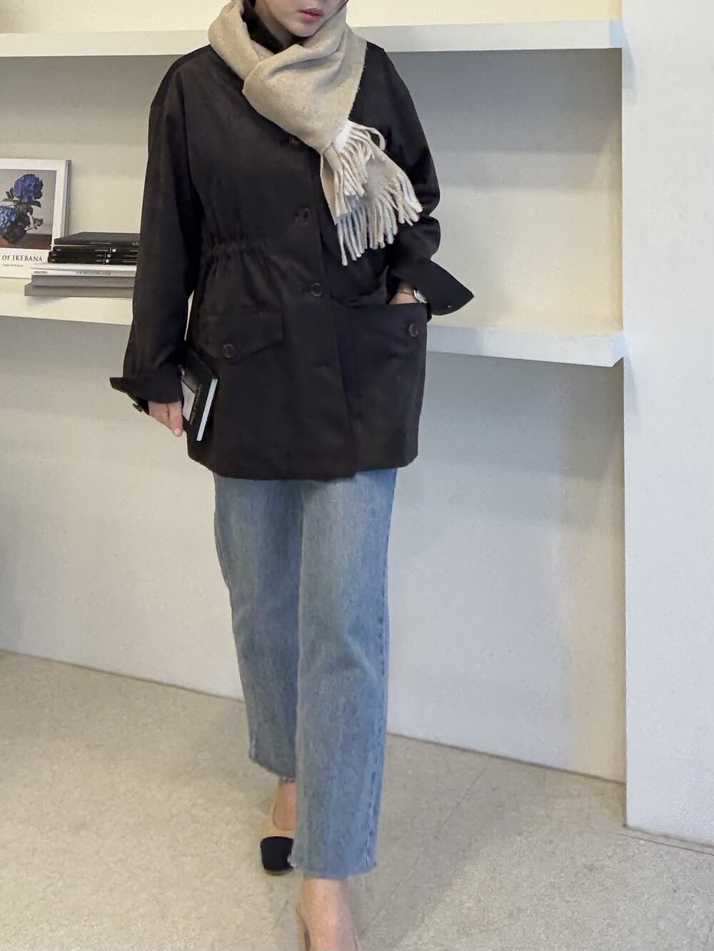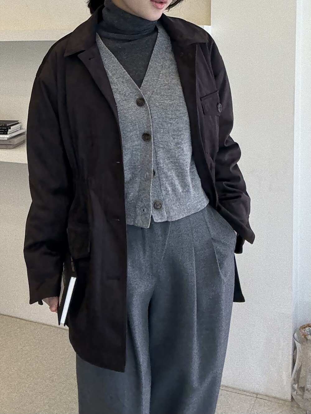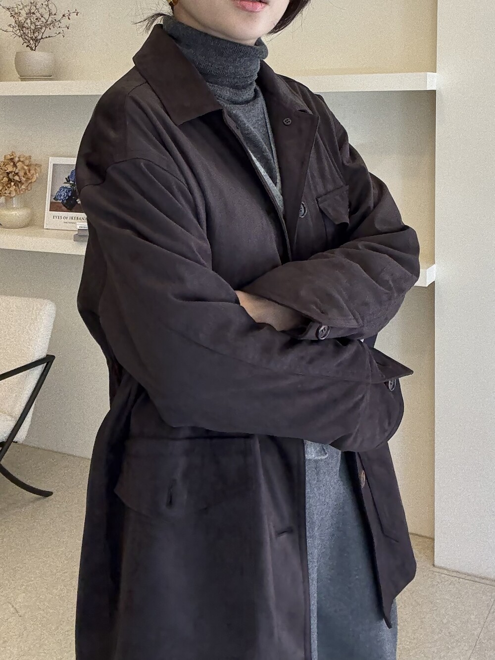 아주 딥한 카카오브라운 톤이라서 가지고 있으신 컬러와 코디하기에도 무리 없는 컬러입니다.