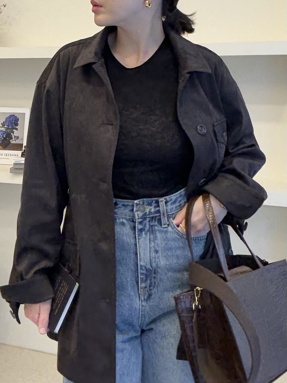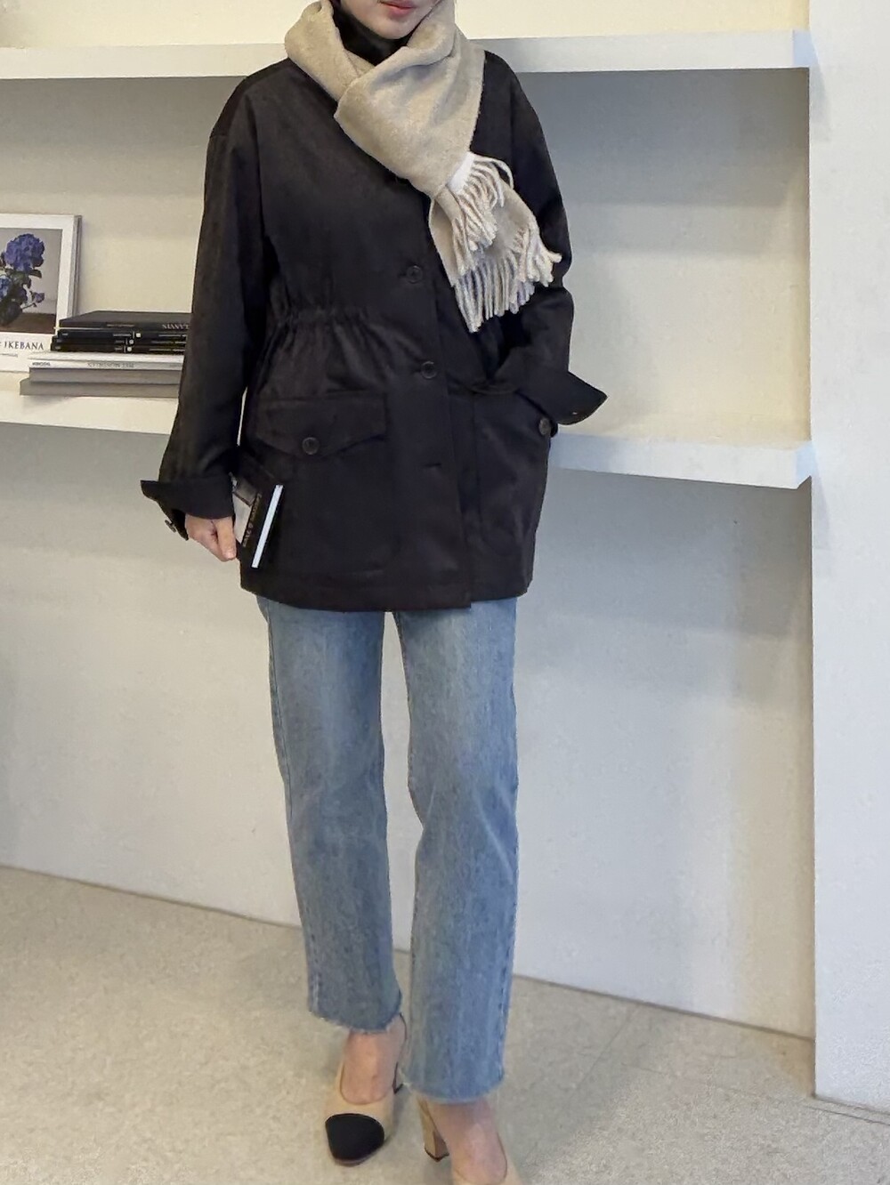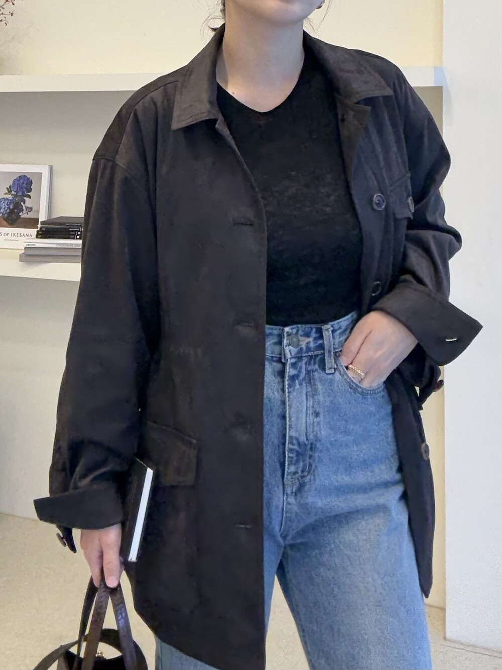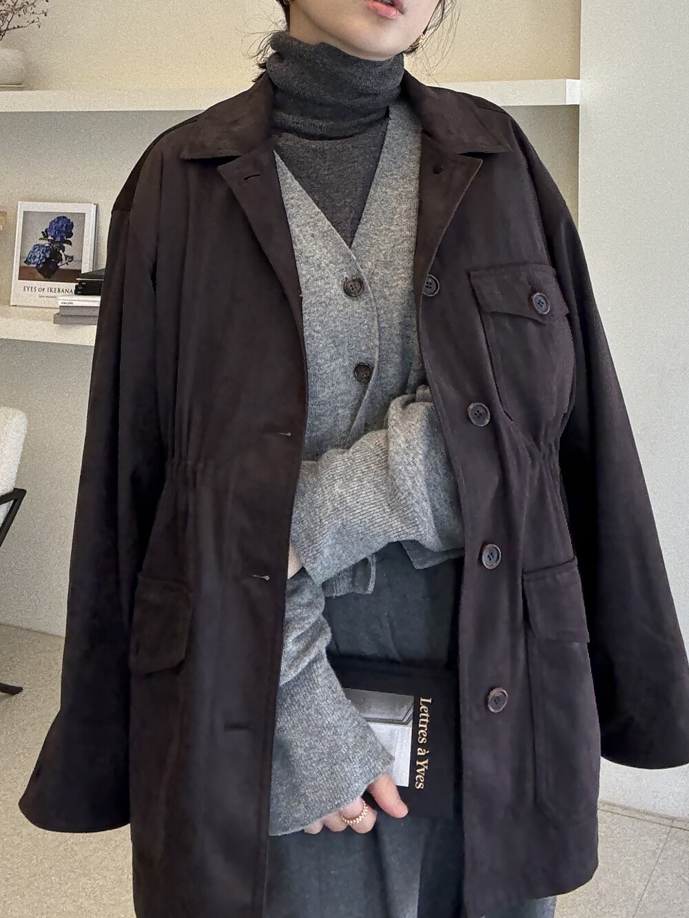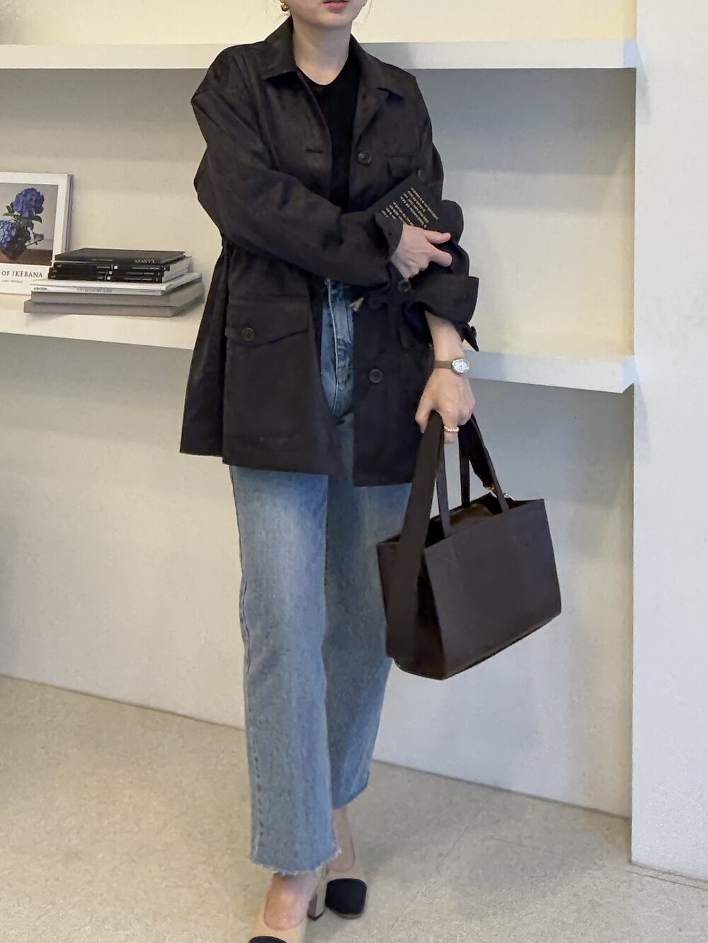 아주 딥한 카카오브라운 톤이라서 가지고 있으신 컬러와 코디하기에도 무리 없는 컬러입니다.