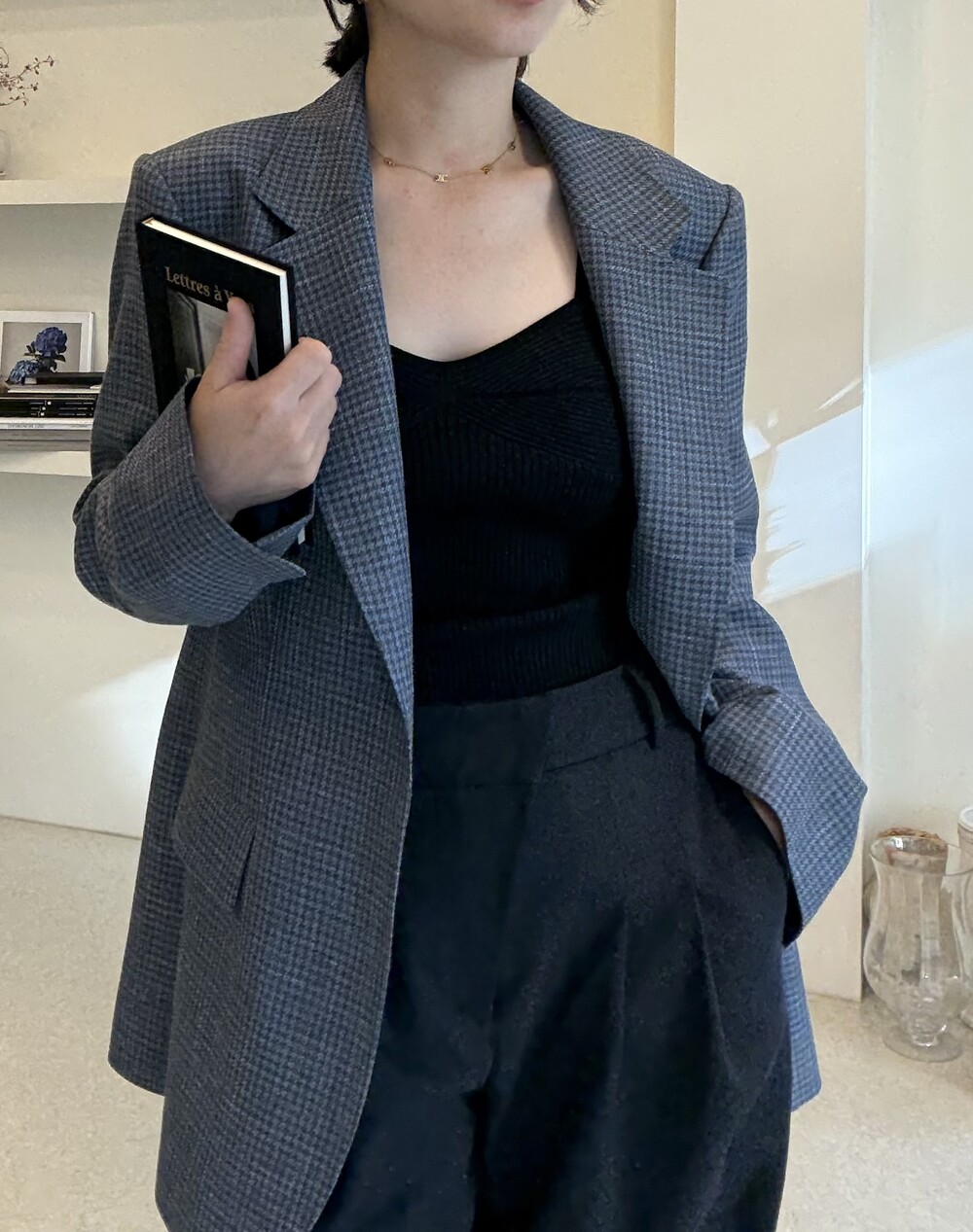 GRACEJAY Comment- 수트와 함께해도 좋고 단독 또는 레이어드 아아이템으로도 좋은 니팅 방식으로 짜여진 슬리브리스 입니다. 사이즈별로 선택 하실 수 있으며, 작아 보여도 신축성이 꽤 좋은 제품이라서 여기저기 유용하게 활용되실거에요.