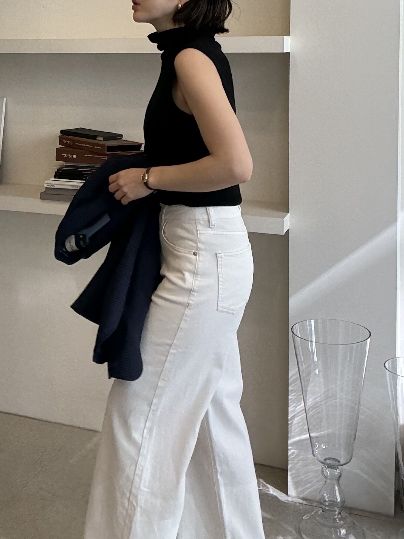 밑단으로 갈수록 아주 미세하게 부츠컷으로 빠져 다리가 더 곧아보이고 길어보이는 효과를 줍니다.