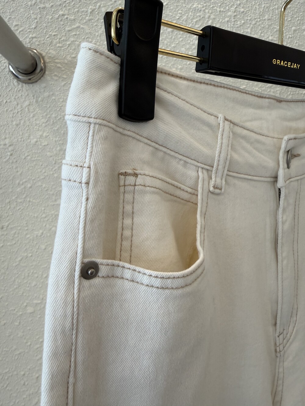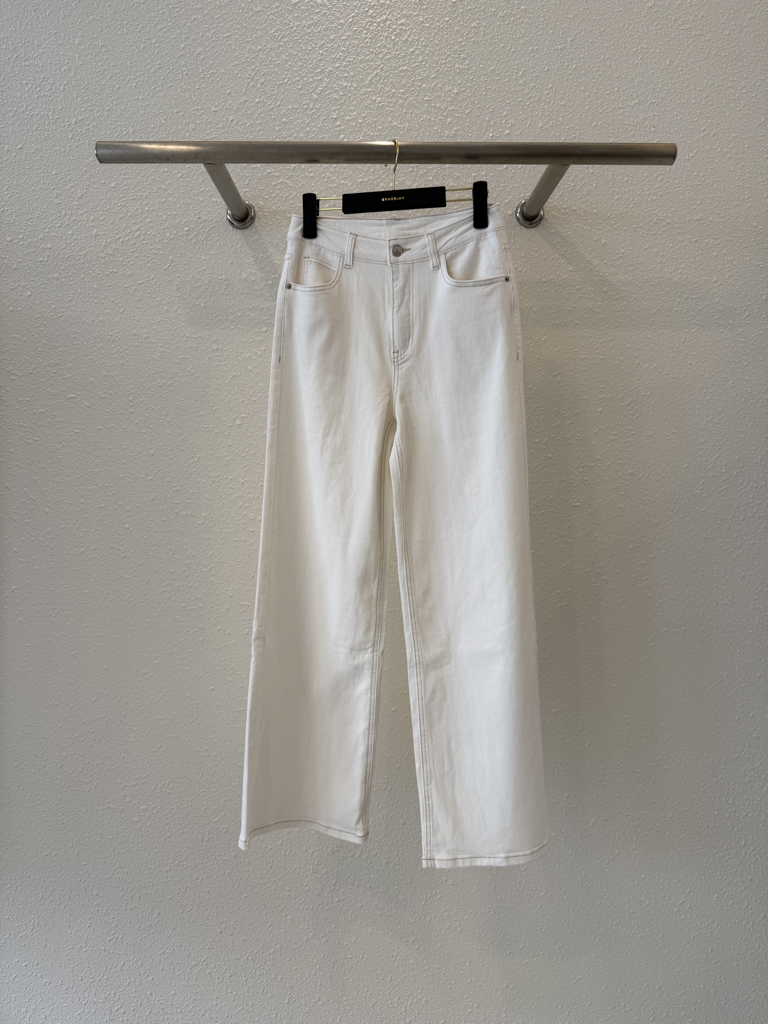 그레이스제이에서 소개되는 수입소재外 모든 소재는 퀄리티가 검증된 국내 원단 업체를 통해 정식적으로 진행됩니다. 그레이스제이에서 소개드리는 3번째의 바잉제품도 하이앤드 퀄리티의 데님 원단으로 진행되었습니다. 부드러운 터치와 자연스러운 워싱 텍스쳐가 돋보이는 소재입니다. 허리 안쪽으로는 내츄럴 밴드가 들어가서 보다 편한 착용감도 느끼 실 수 있는 제품으로 입을 수록 더 편하고 자연스러운 터치가 느껴지는 데님입니다.