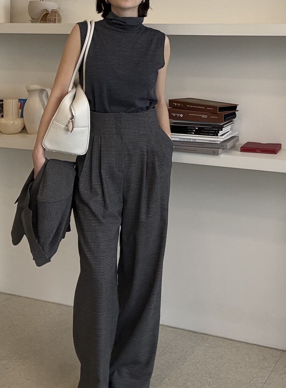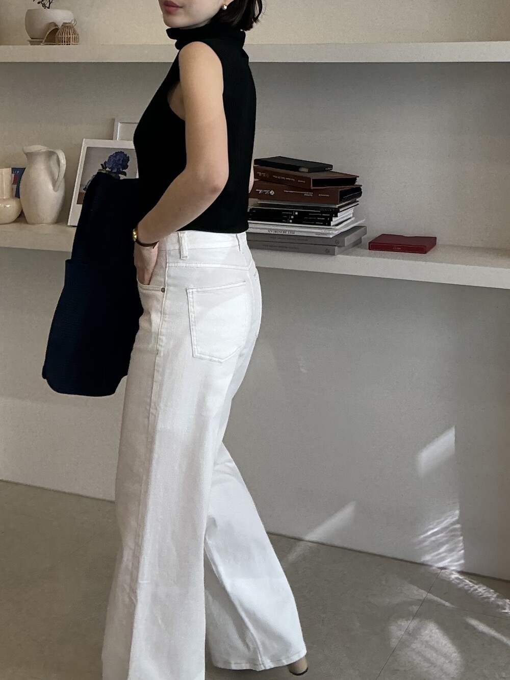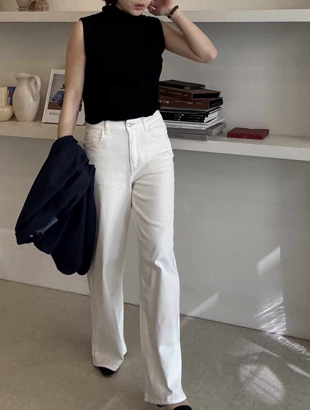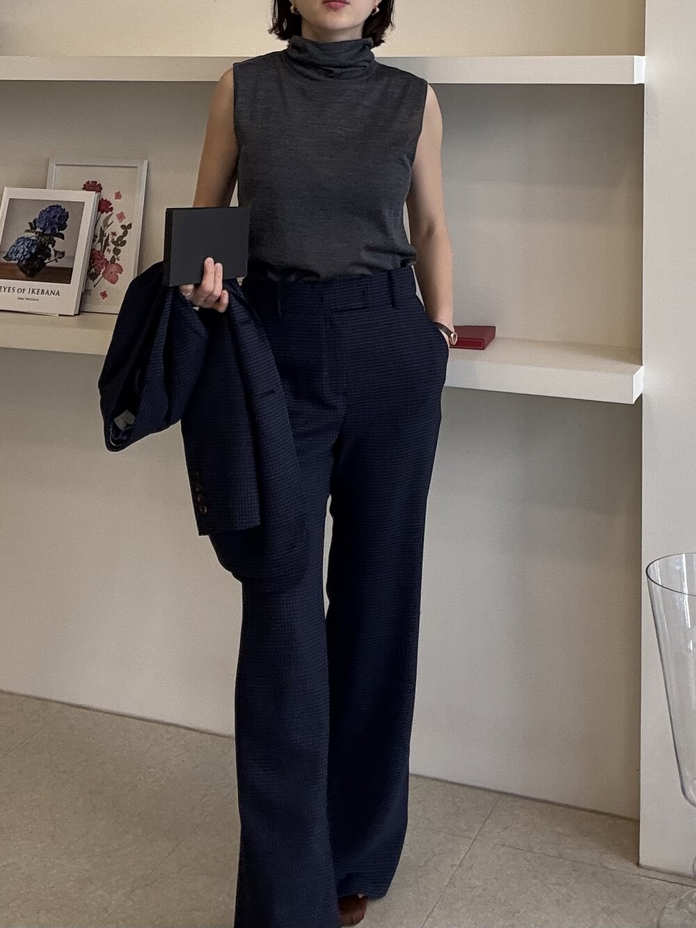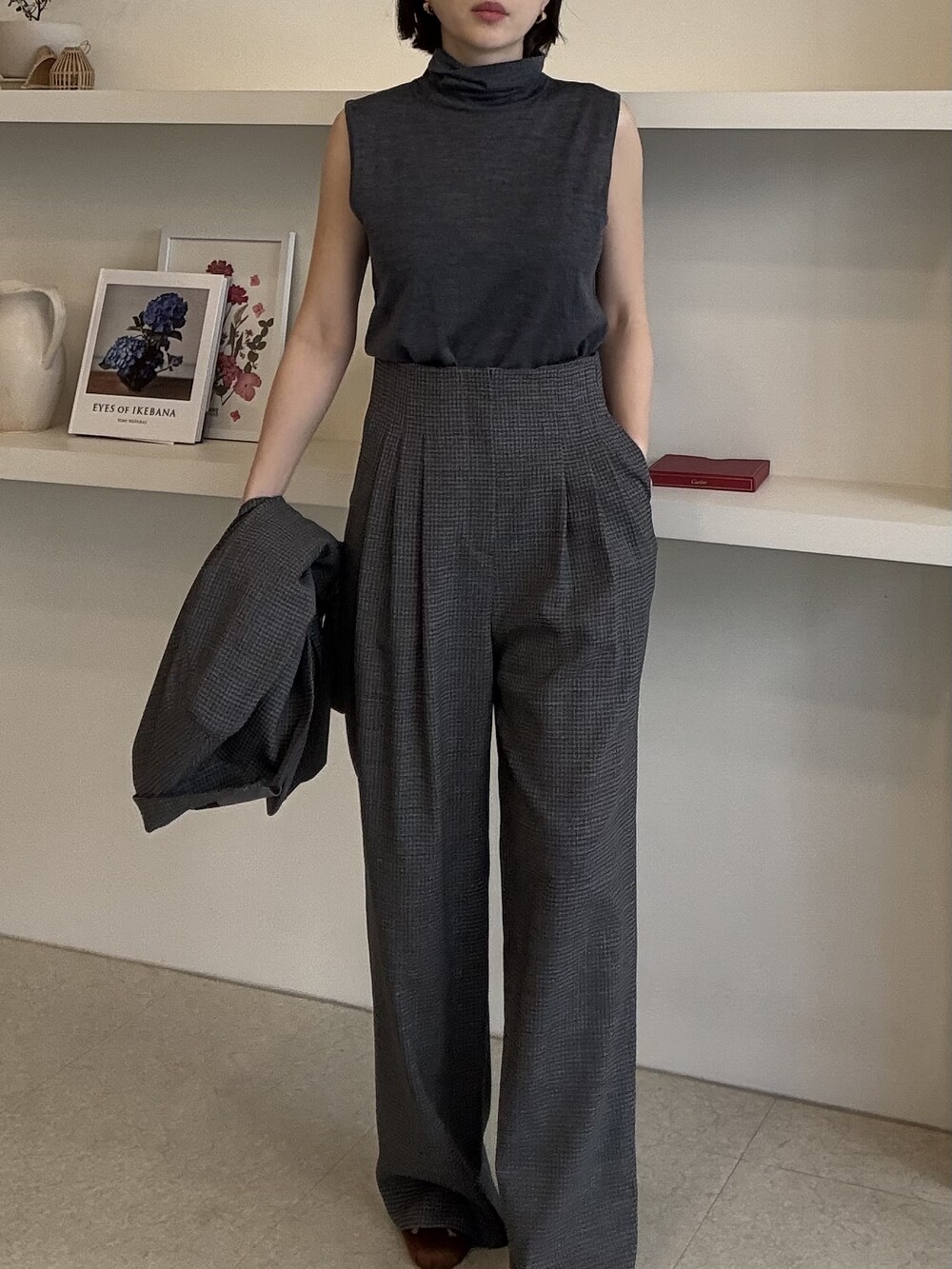 메리노 울100% 의 세번수 울로 소프트한 질감이 느껴지는 터틀넥 슬리브리스 입니다.