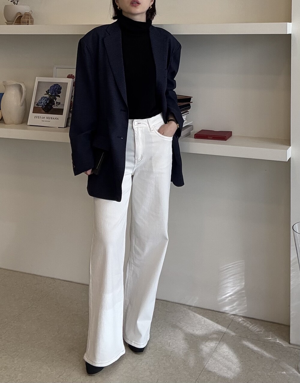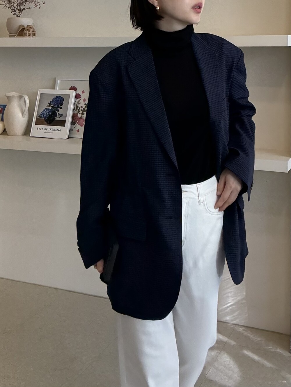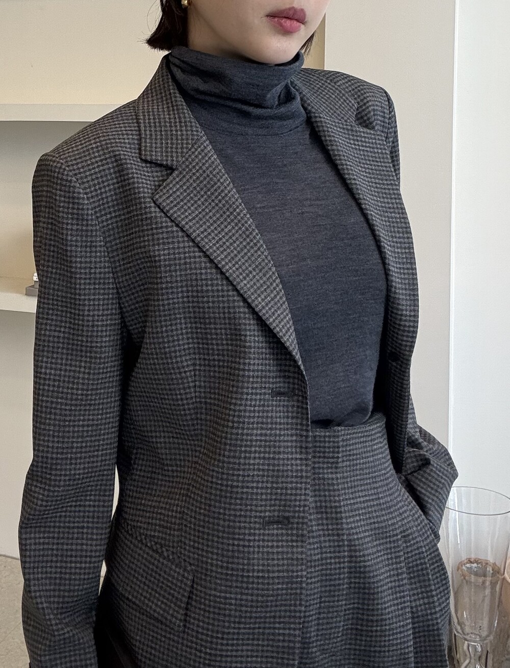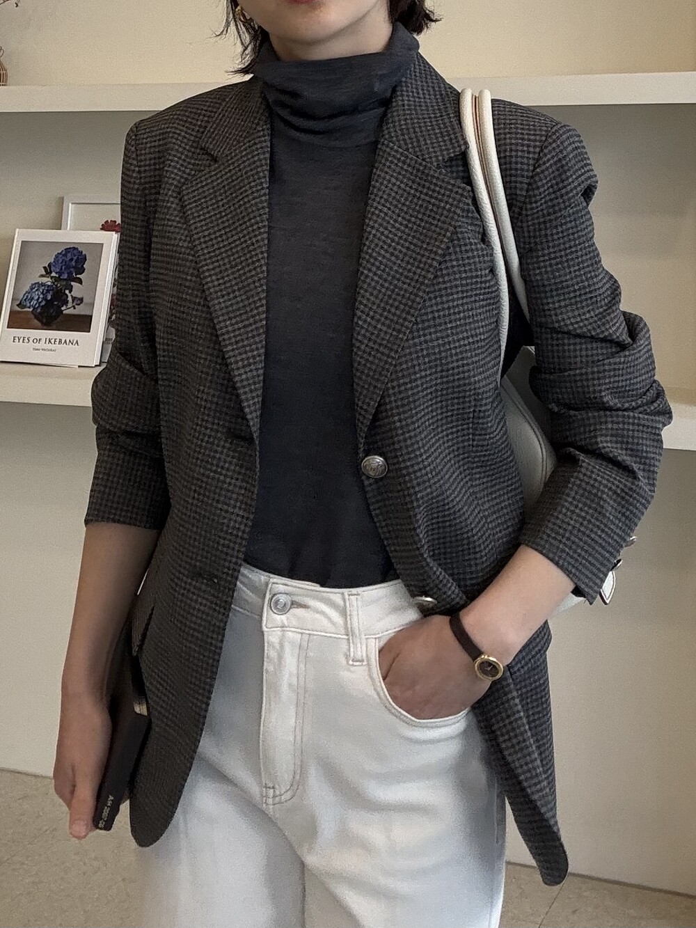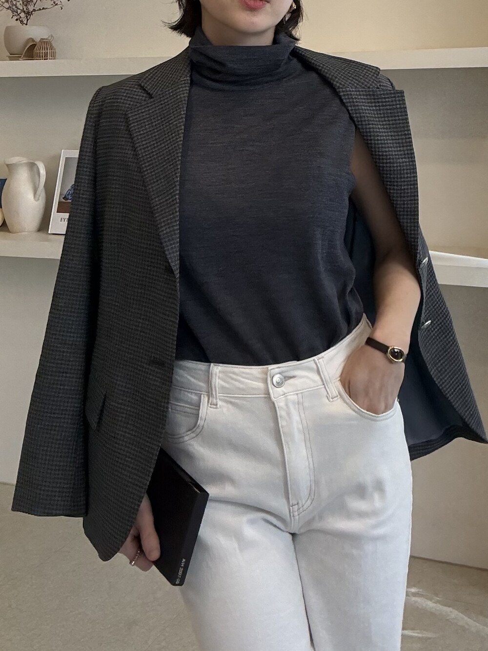터틀넥이 목에 붙지 않고 여유롭게 흐르는 포인트가 있으며, 뒷 중심선에 포인트 줄라인이 있어서