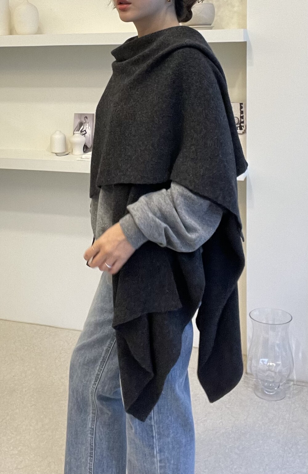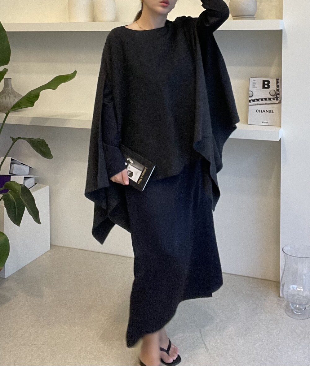 Special made limited Lambswool knit cape (charcoal)