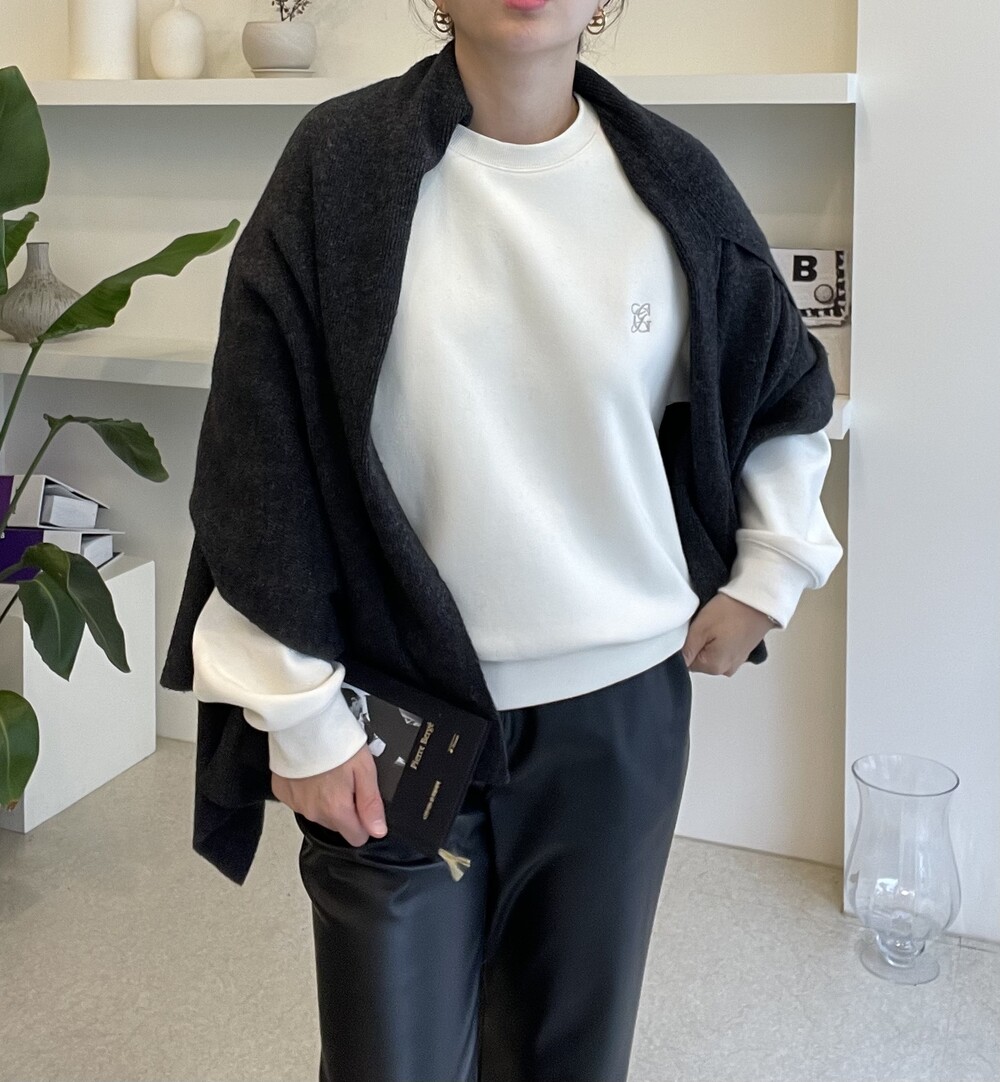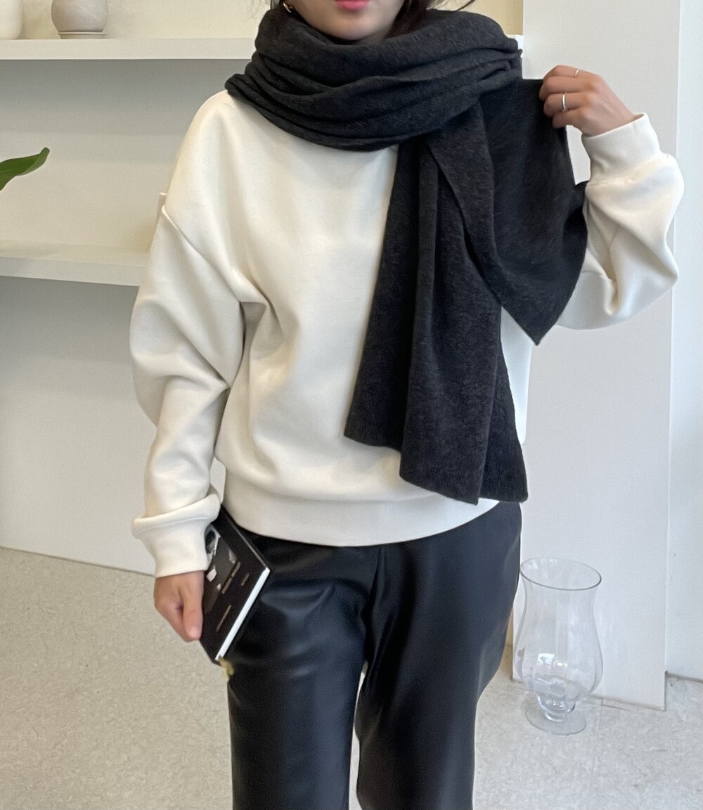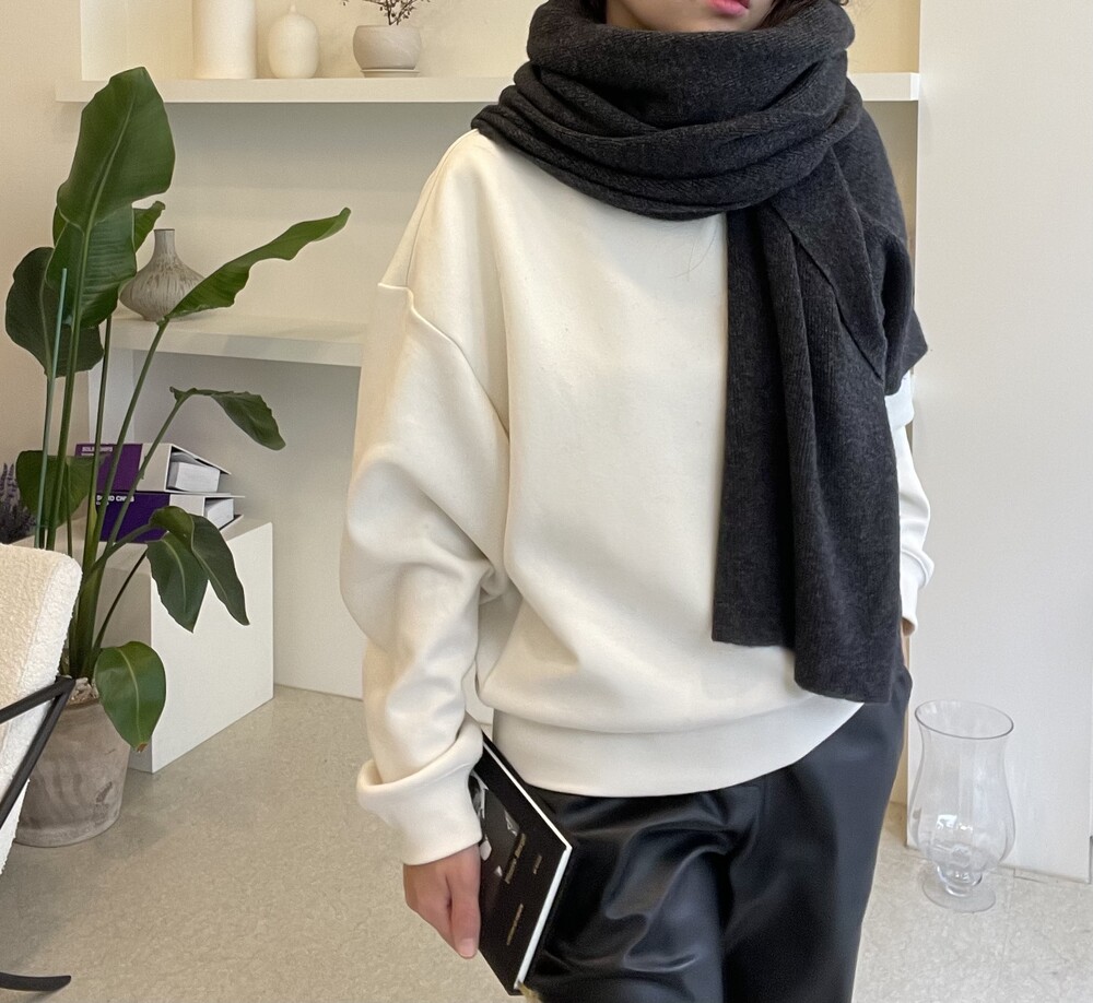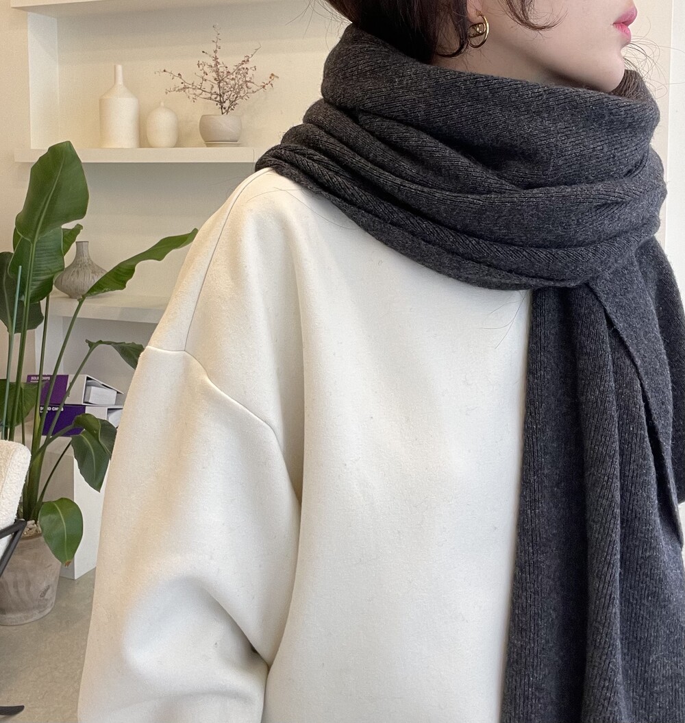 머플러의 형태로 한번 휙 감아주시거나 직사각형으로 접어서 어깨에 두르는 숄 연출도 물론 좋습니다.