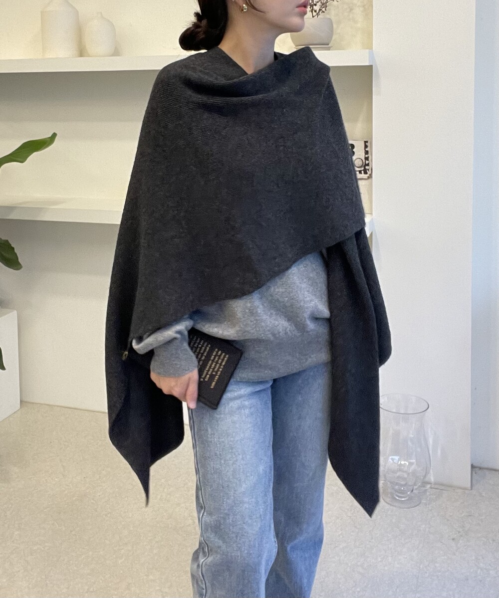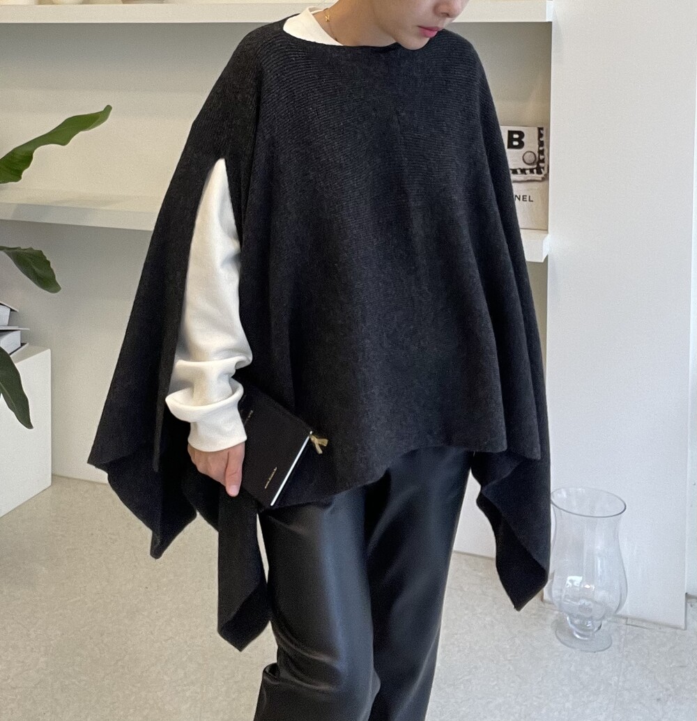 소프트한 질감의 램스울 90% 아크릴 10% 혼방의 knit cape 입니다.