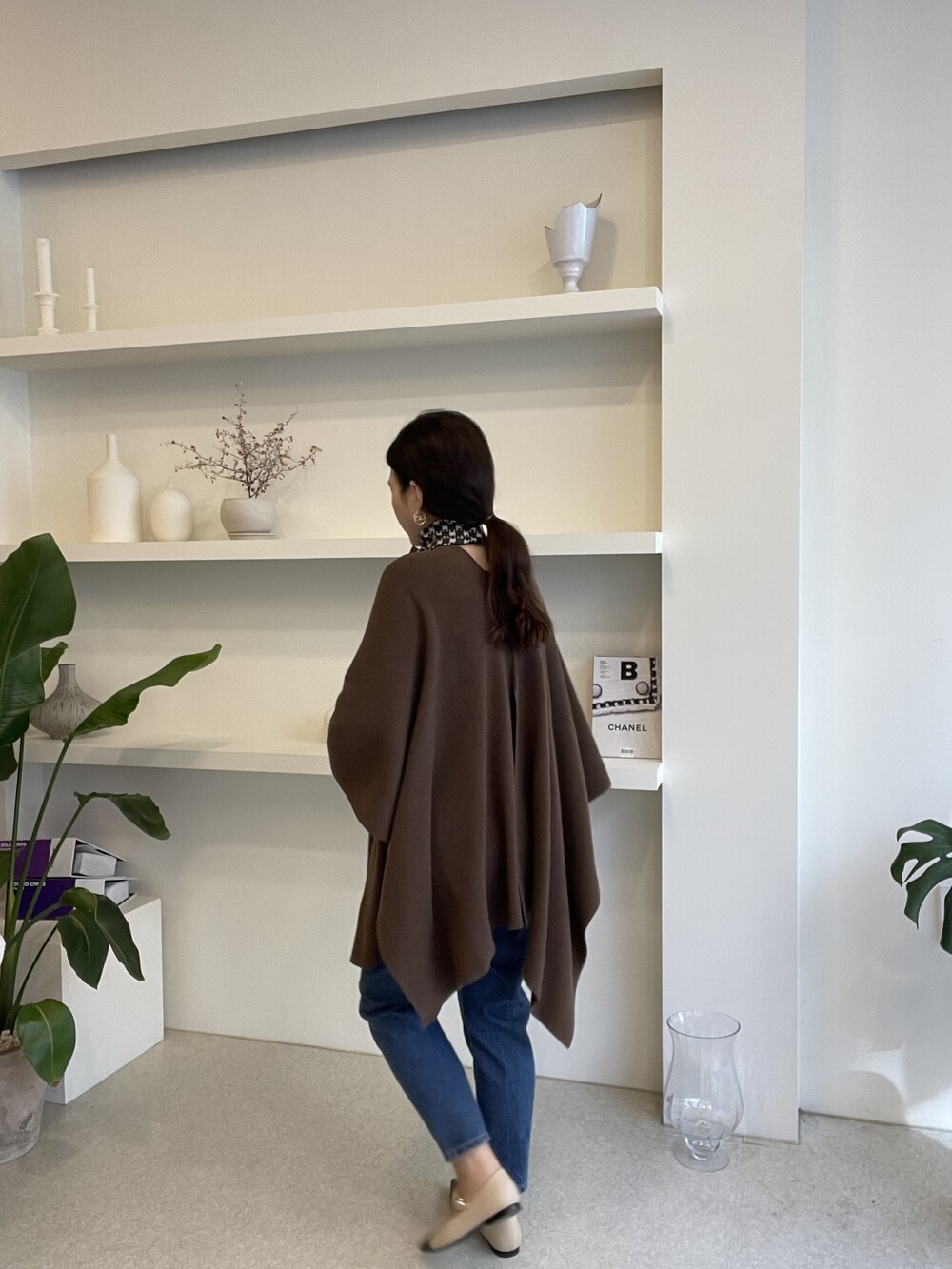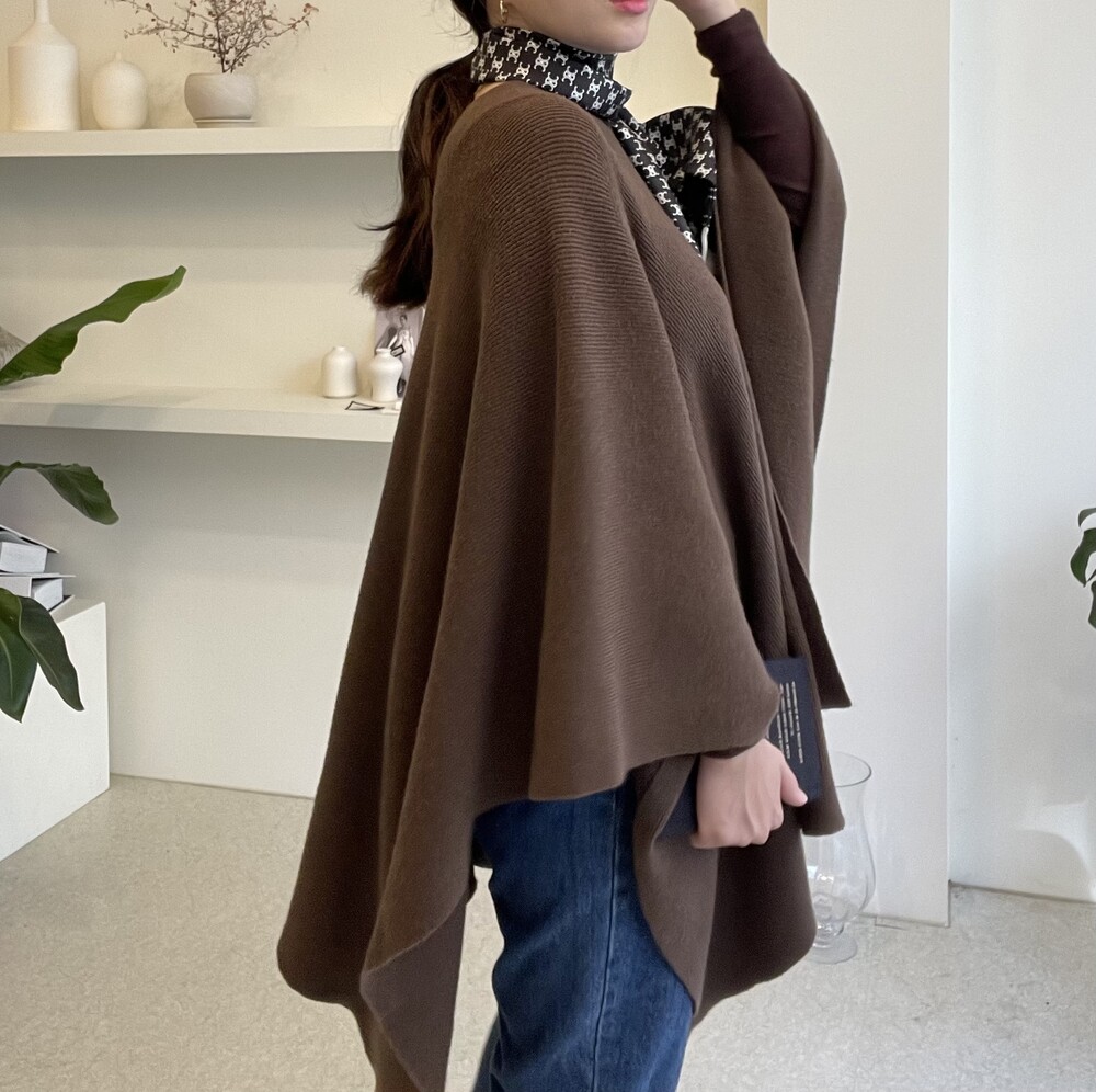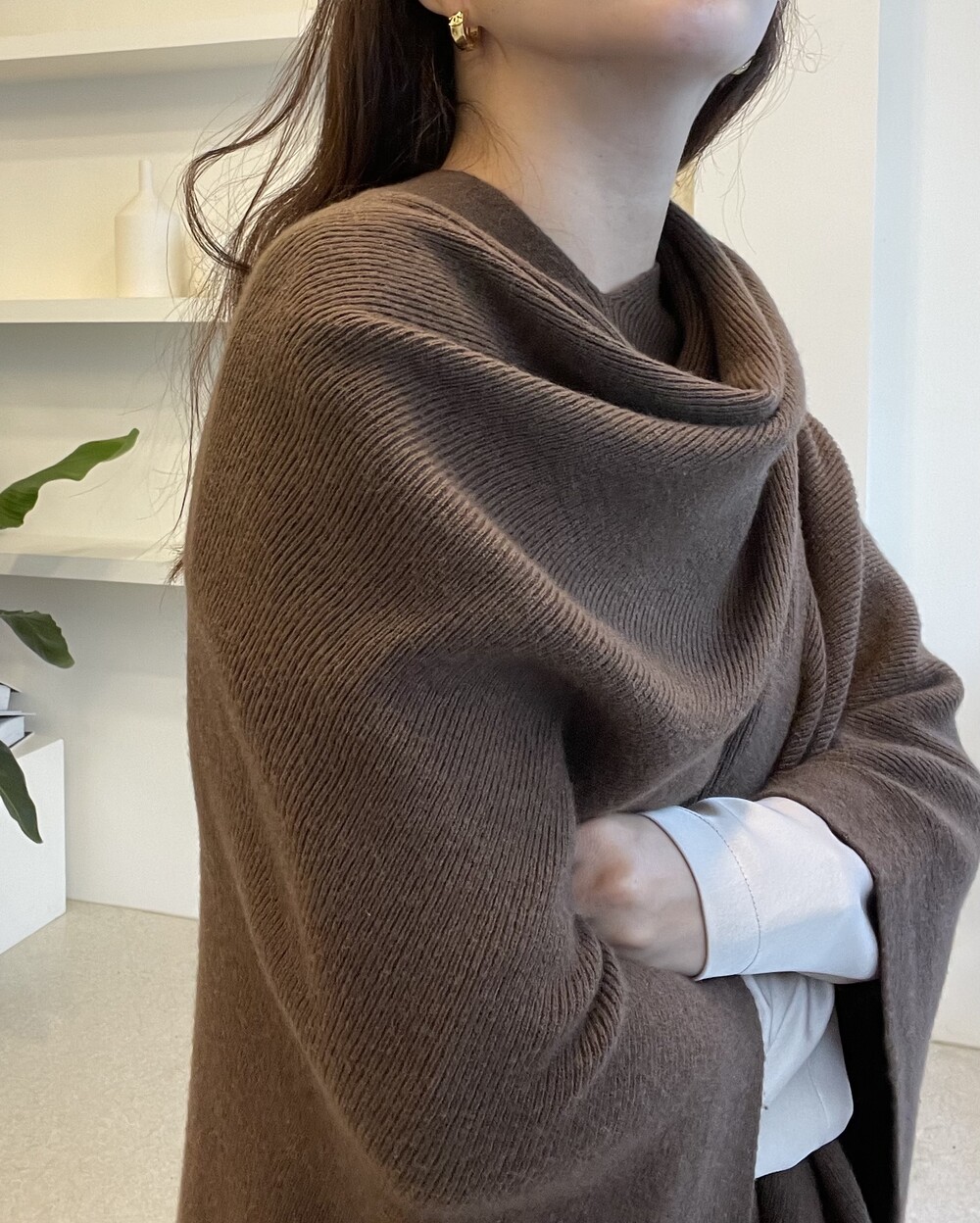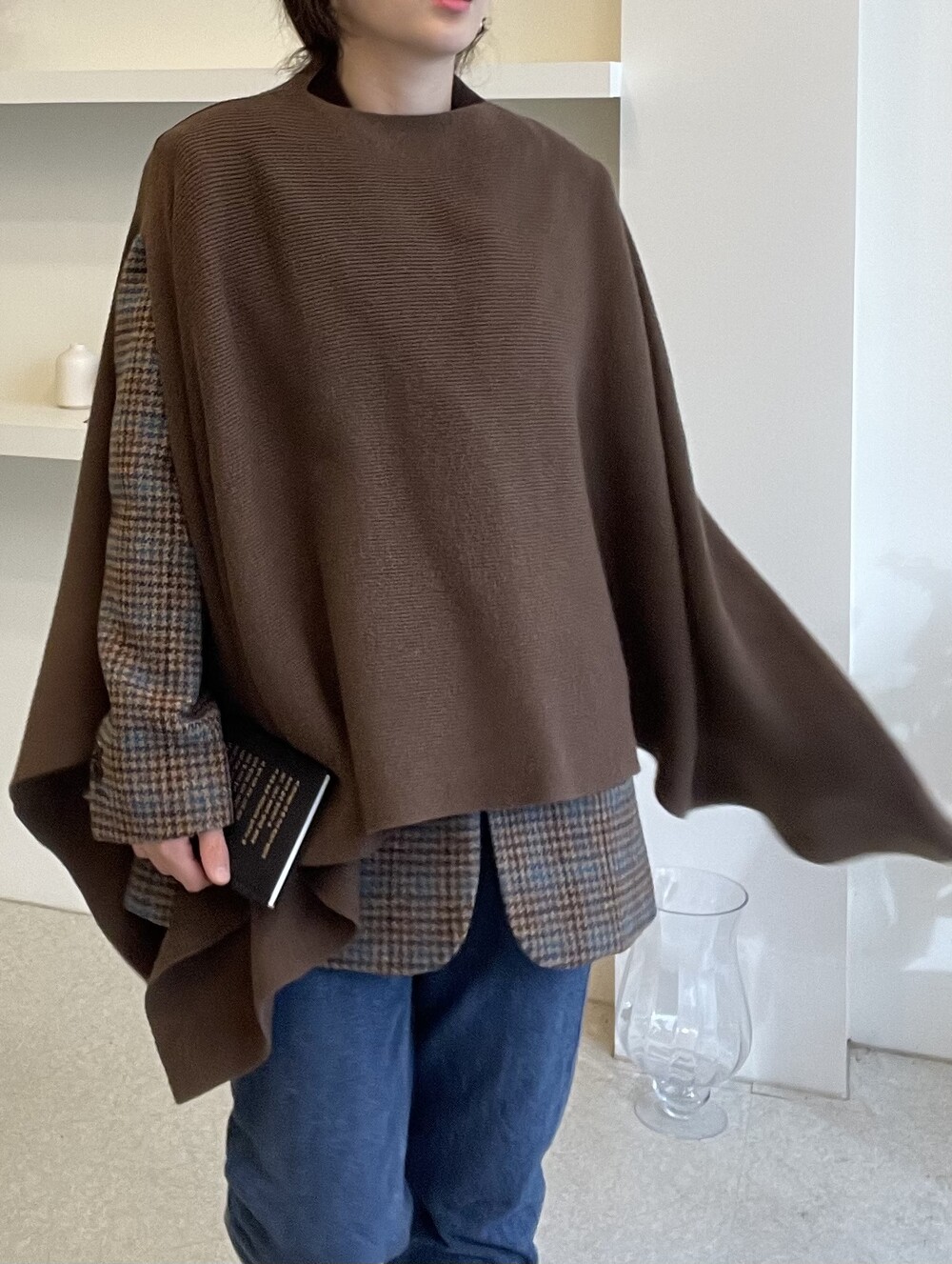 소프트한 질감의 램스울 90% 아크릴 10% 혼방의 knit cape 입니다.