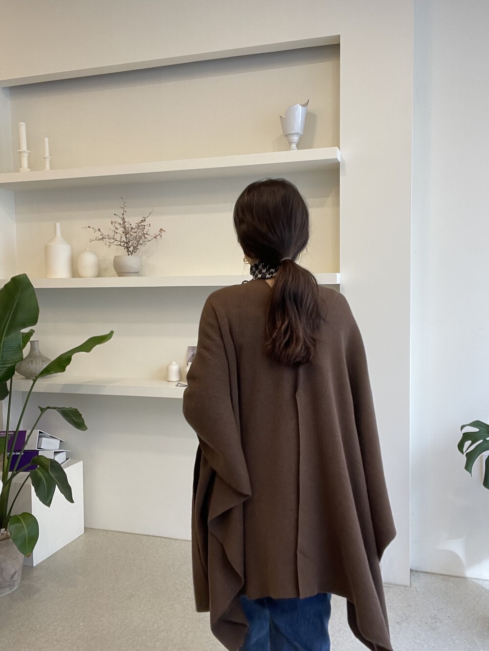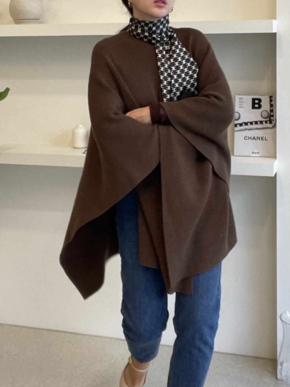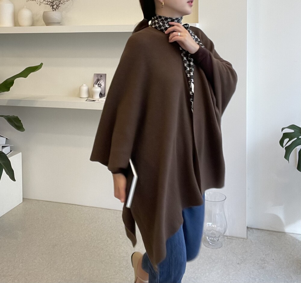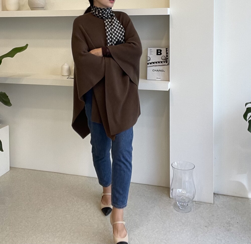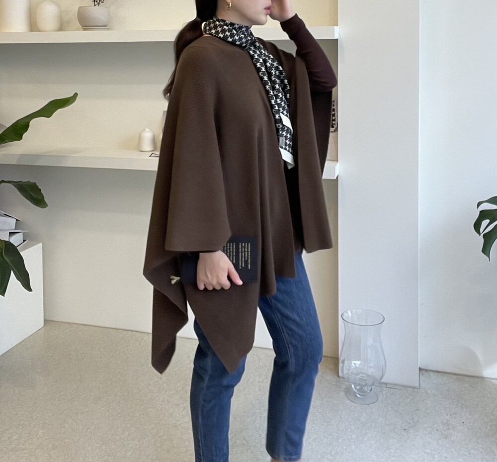 소프트한 질감의 램스울 90% 아크릴 10% 혼방의 knit cape 입니다.