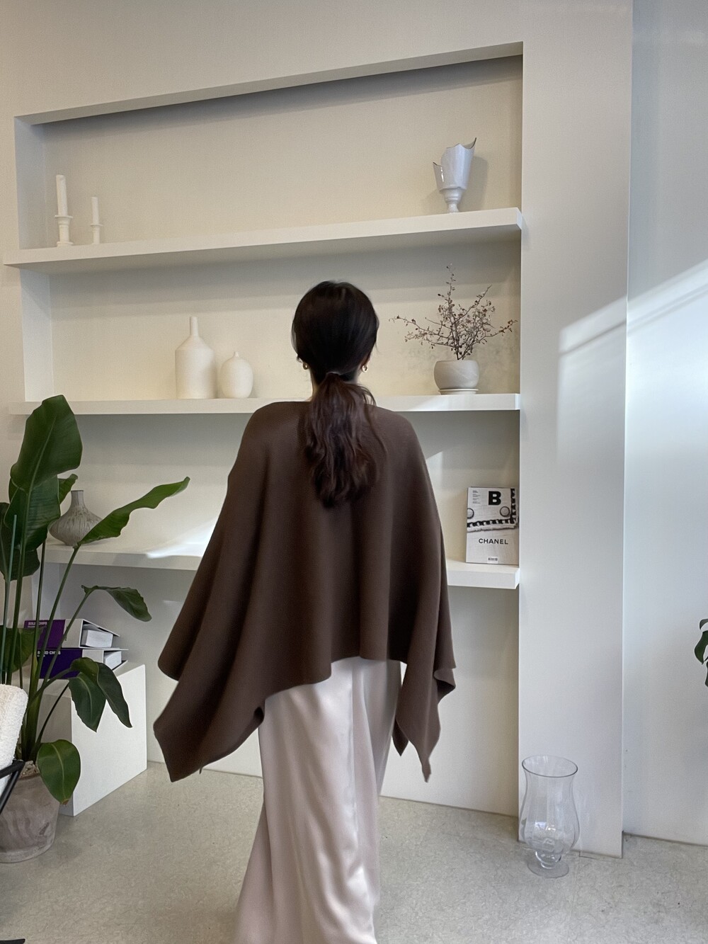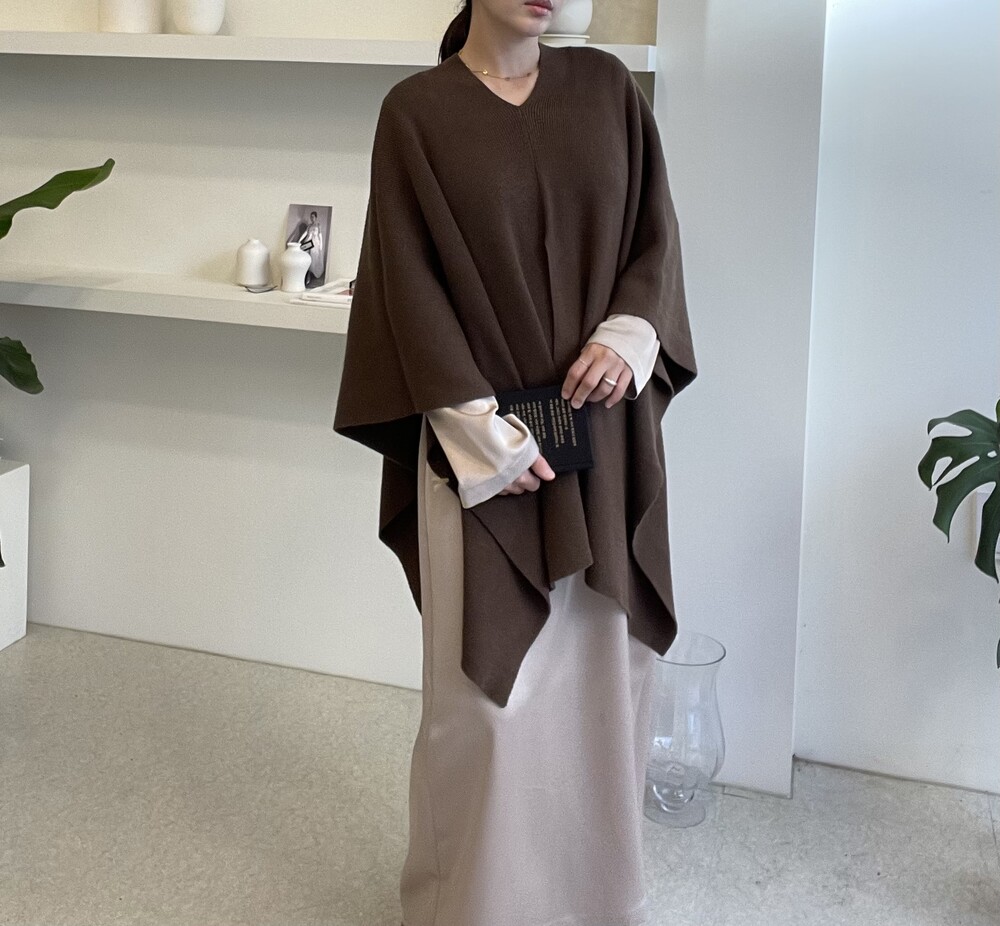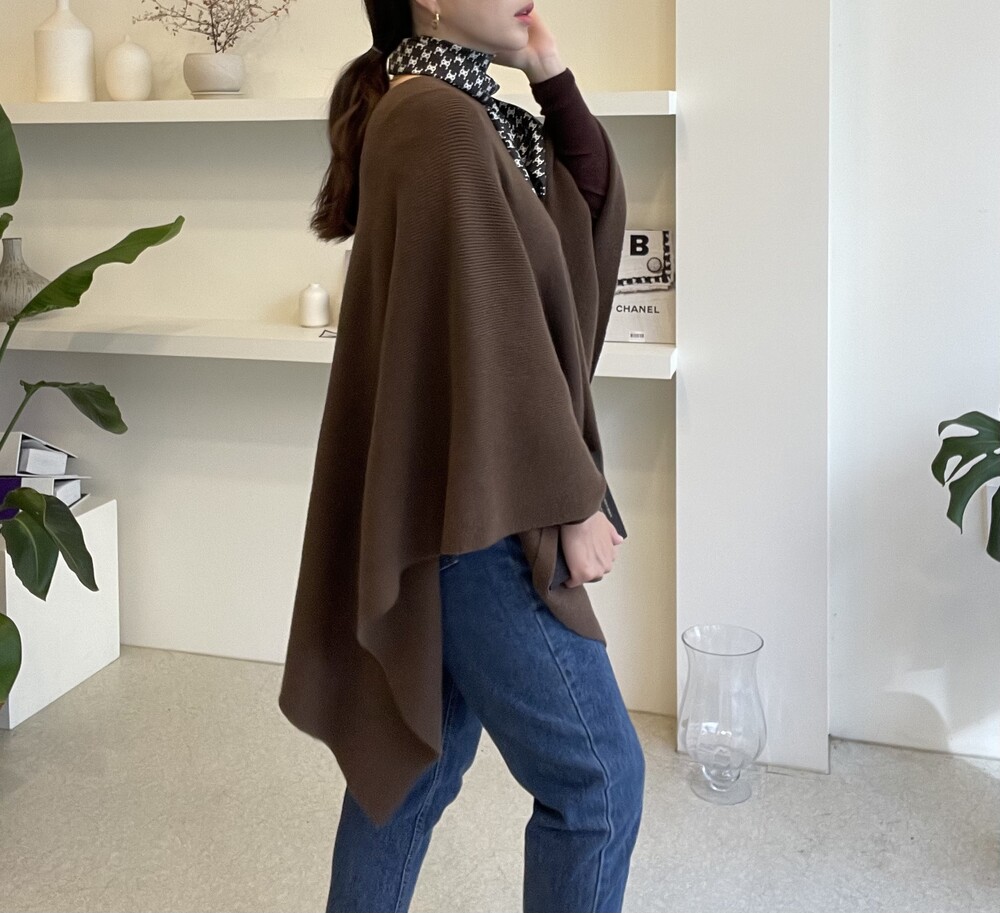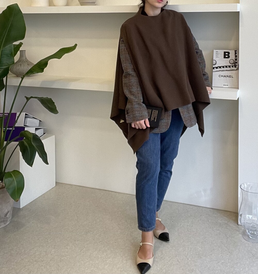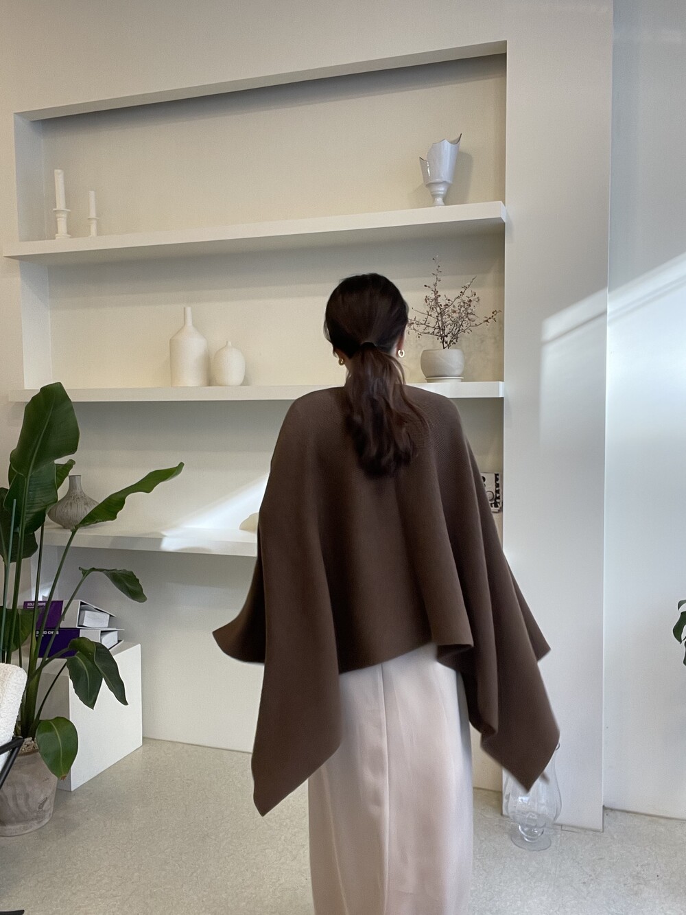 소프트한 질감의 램스울 90% 아크릴 10% 혼방의 knit cape 입니다.