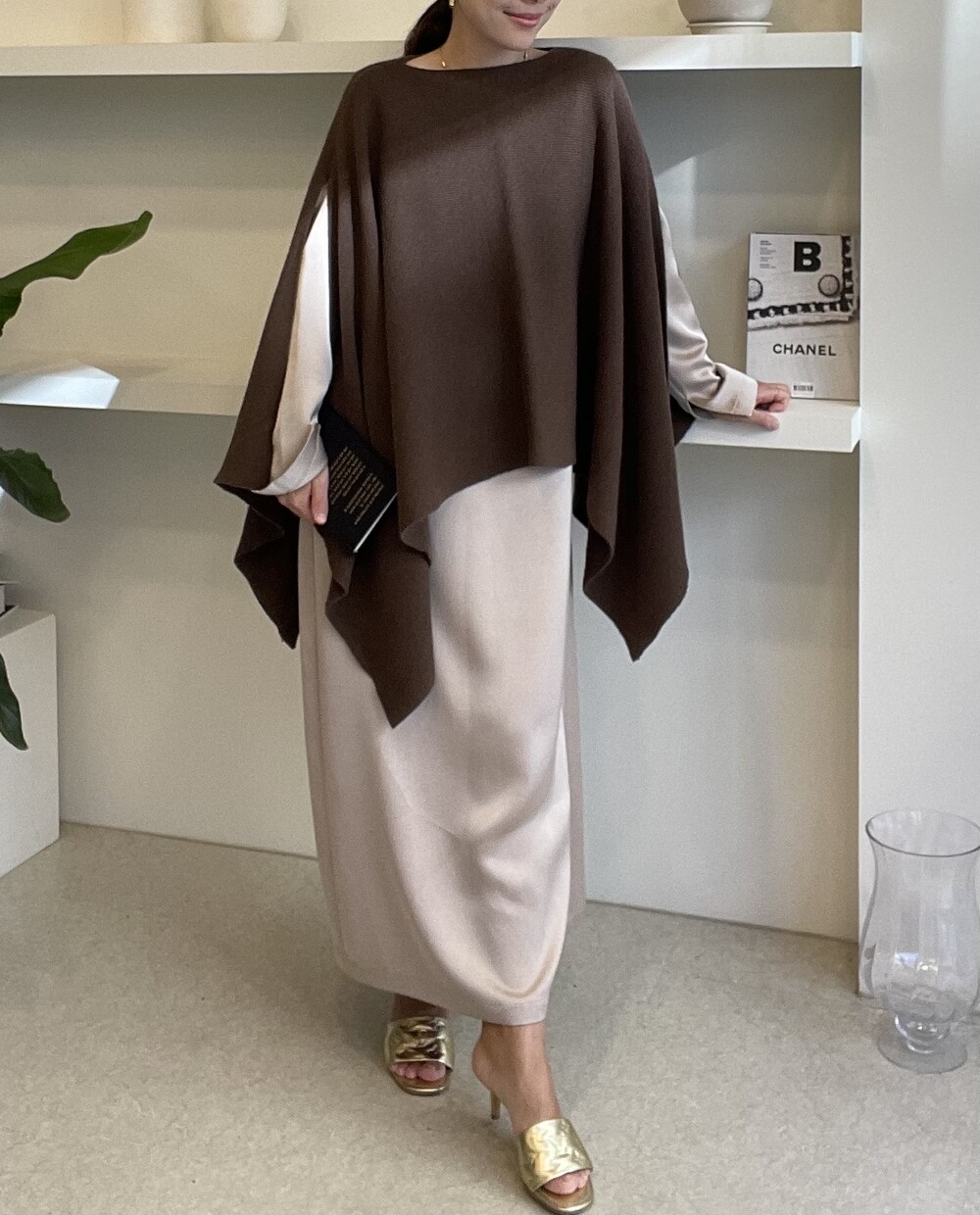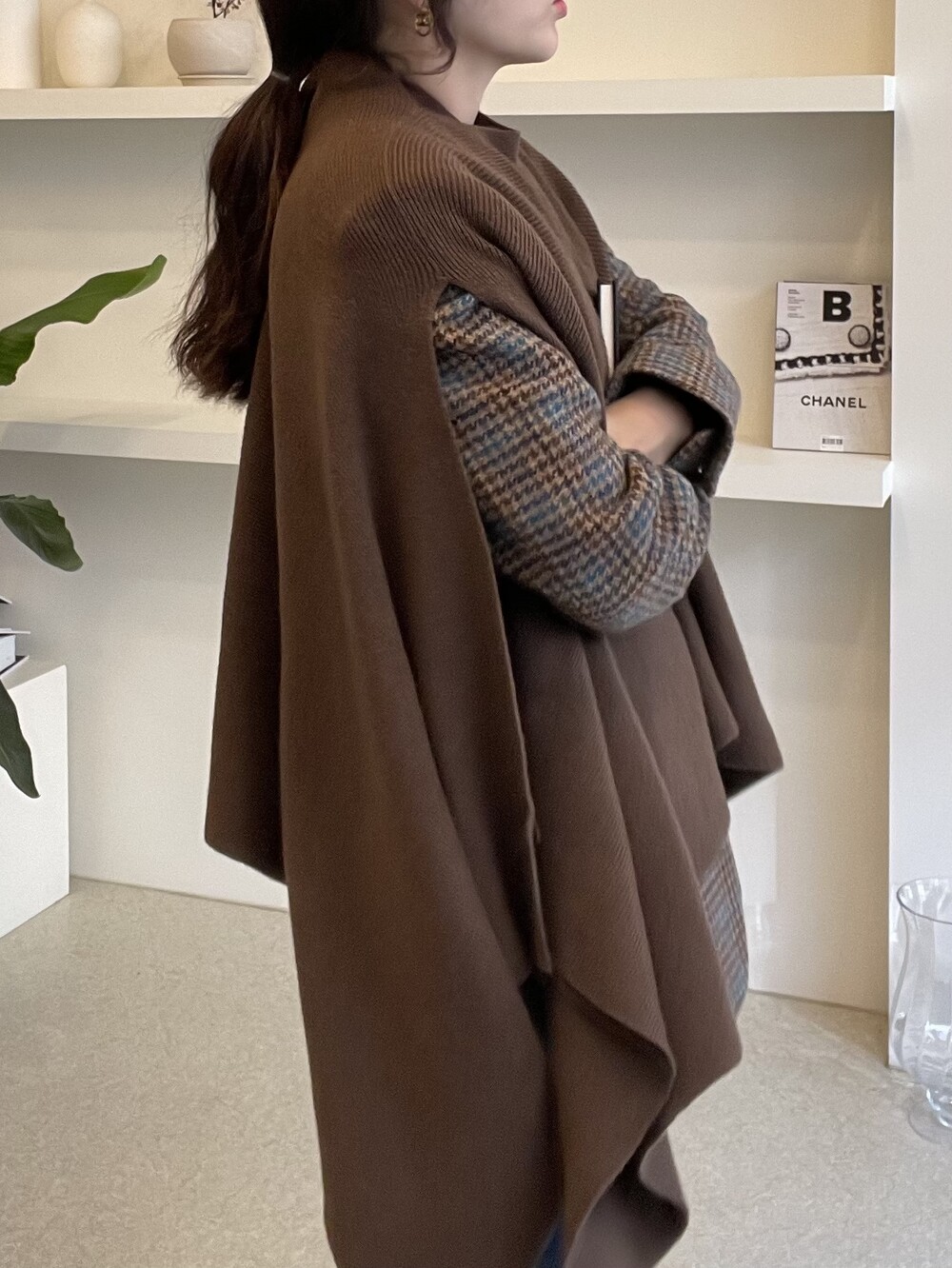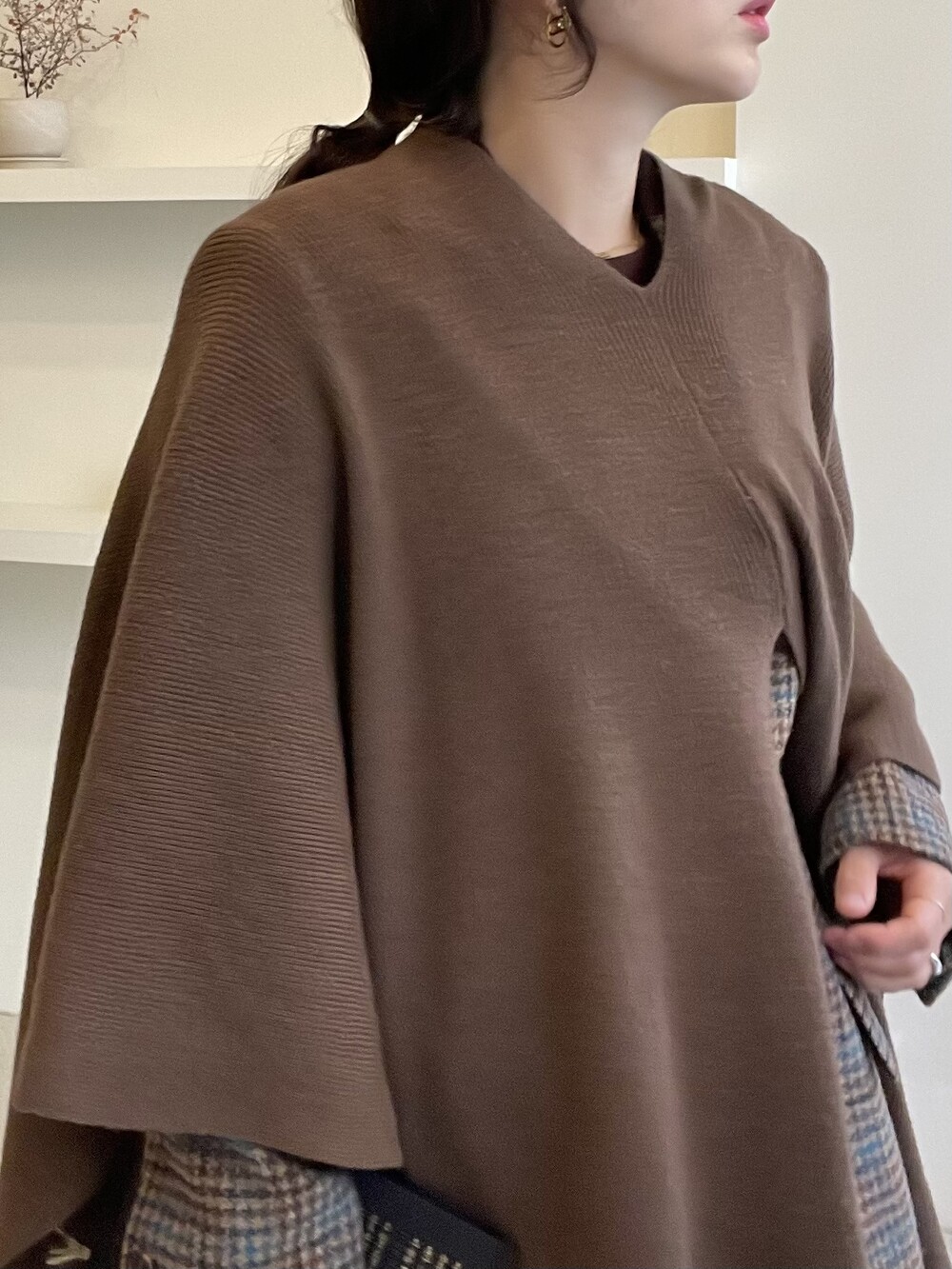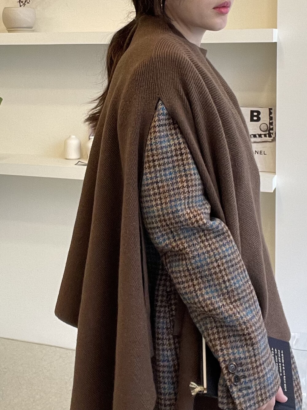 소프트한 질감의 램스울 90% 아크릴 10% 혼방의 knit cape 입니다.