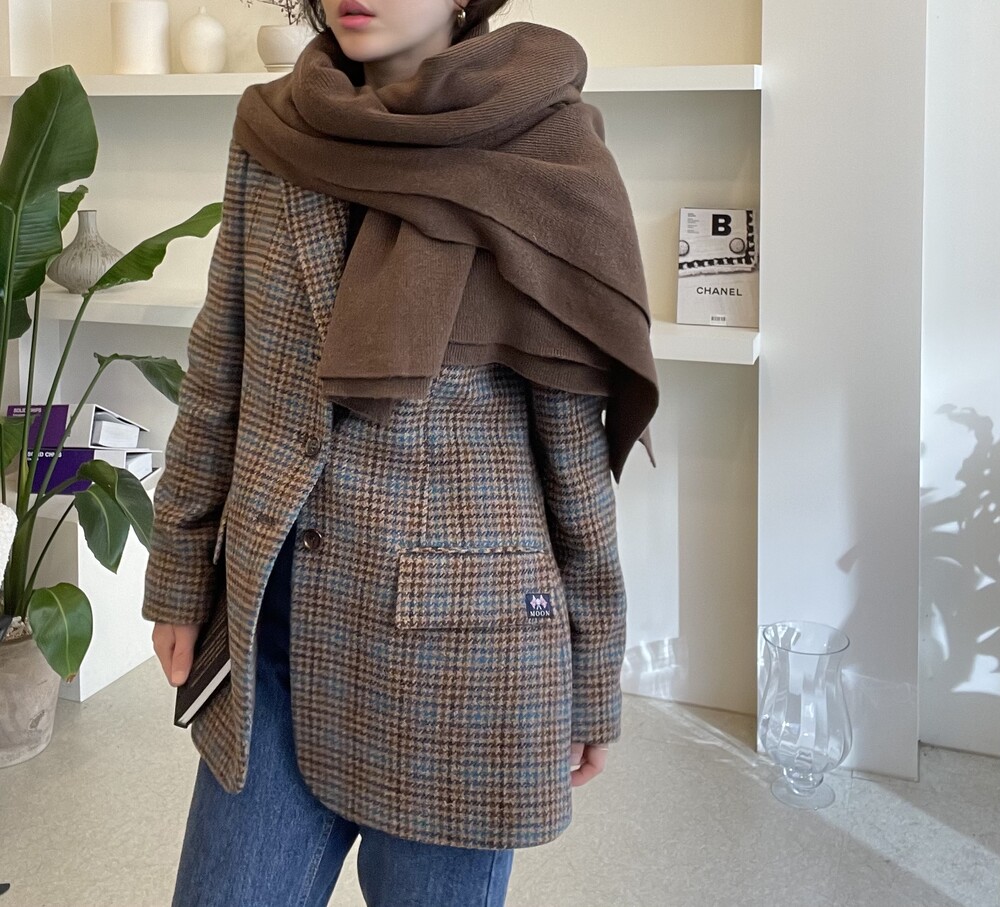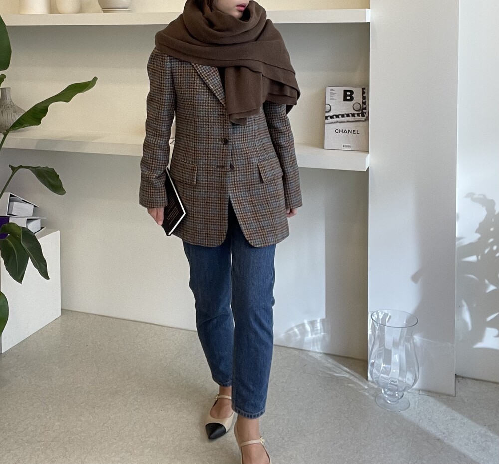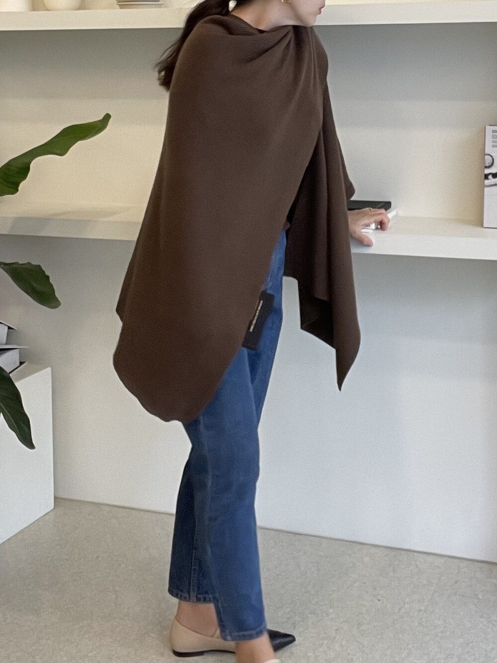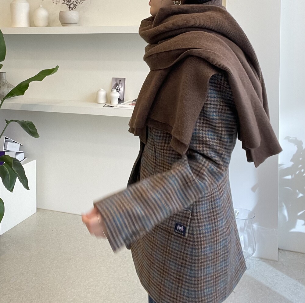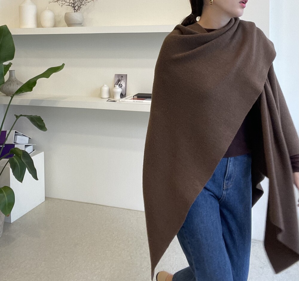 머플러의 형태로 한번 휙 감아주시거나 직사각형으로 접어서 어깨에 두르는 숄 연출도 물론 좋습니다.
