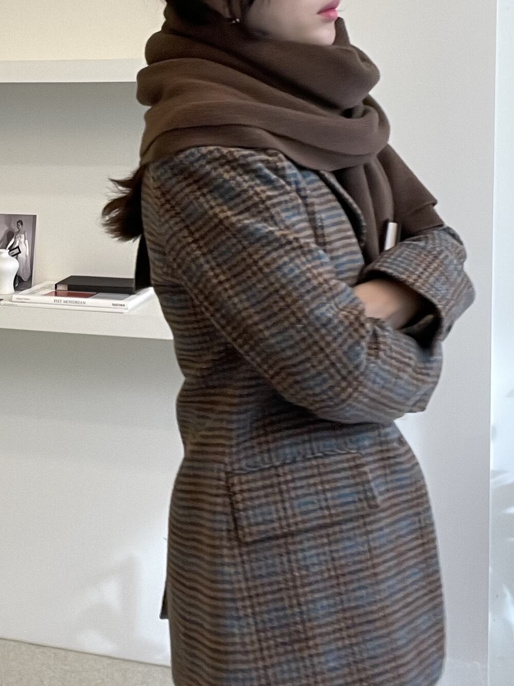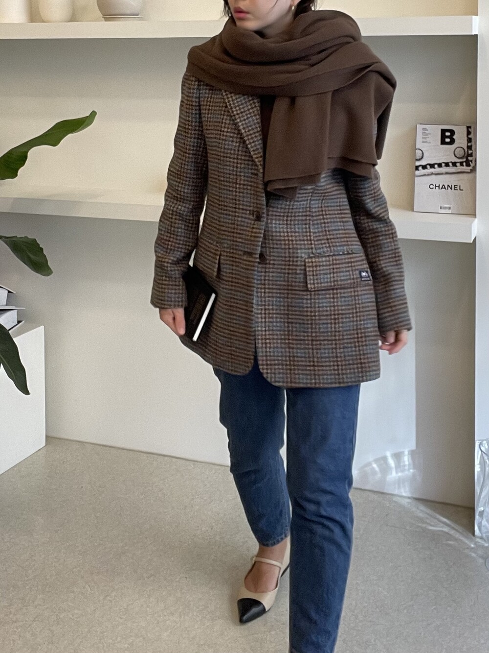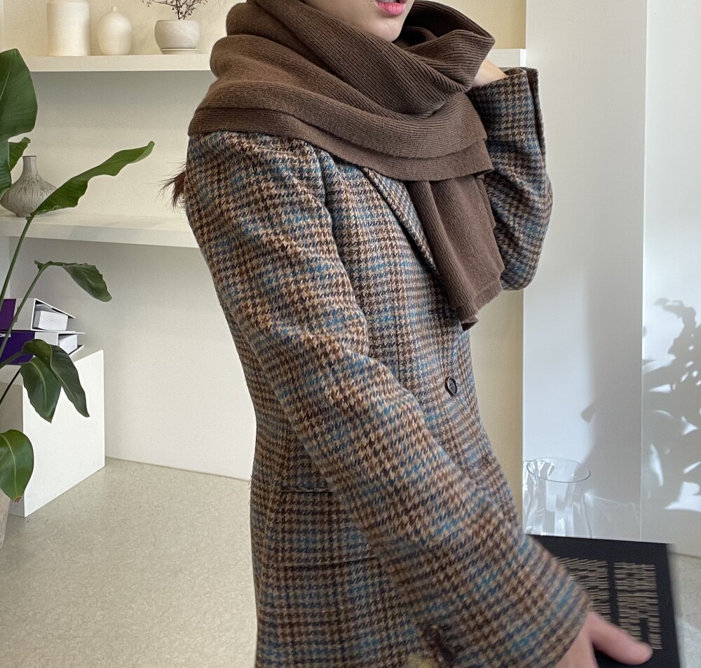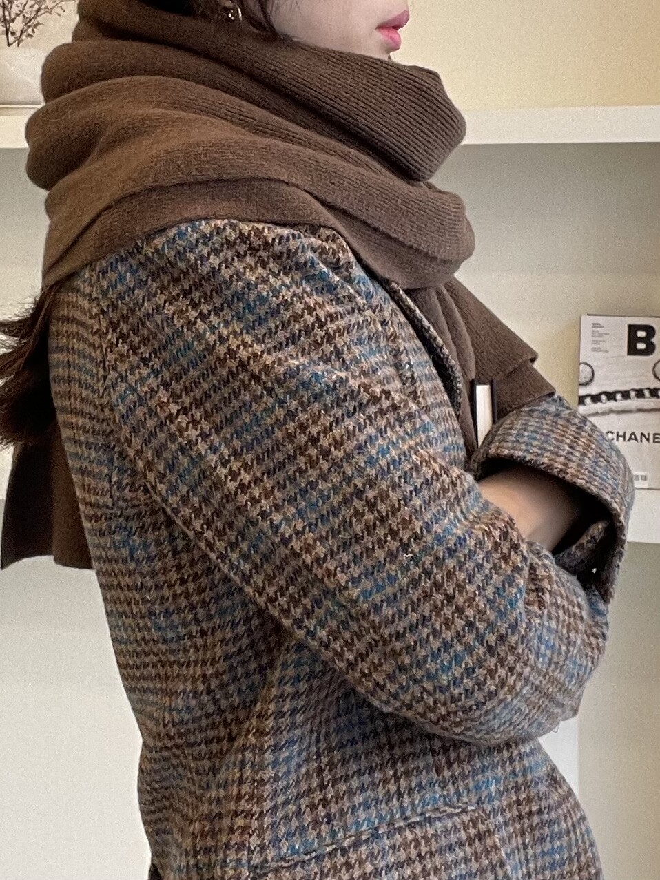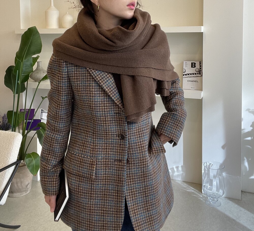 머플러의 형태로 한번 휙 감아주시거나 직사각형으로 접어서 어깨에 두르는 숄 연출도 물론 좋습니다.