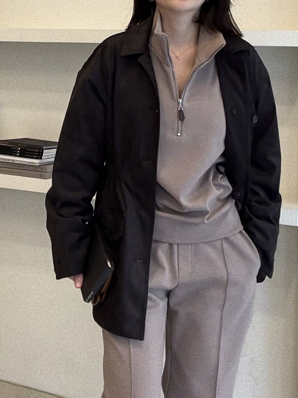 이번 4번째의 1769셋업은 탄탄한 분또져지 소재로 진행됩니다. 한여름 빼고 3시즌을 길게 즐기실 수 있는 소재로 제안됩니다. 안에는 가볍게 브러쉬 처리가 되어 있어 맨살에 닿는 느낌이 부드럽고 많이 두꺼운 질감은 아닙니다. 때문에 추운날에는 이너를 챙겨입고 입으시면 오히려 더 가볍고 따뜻하게 즐기시기에 좋습니다.