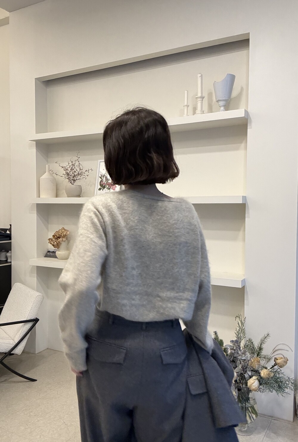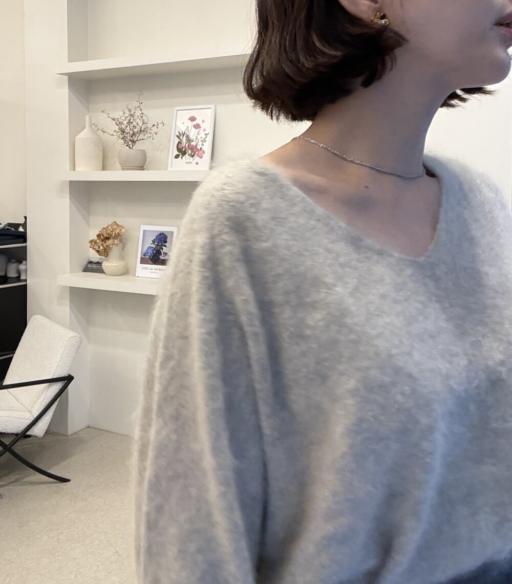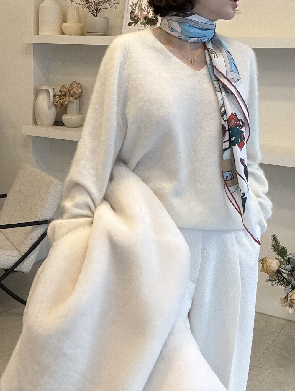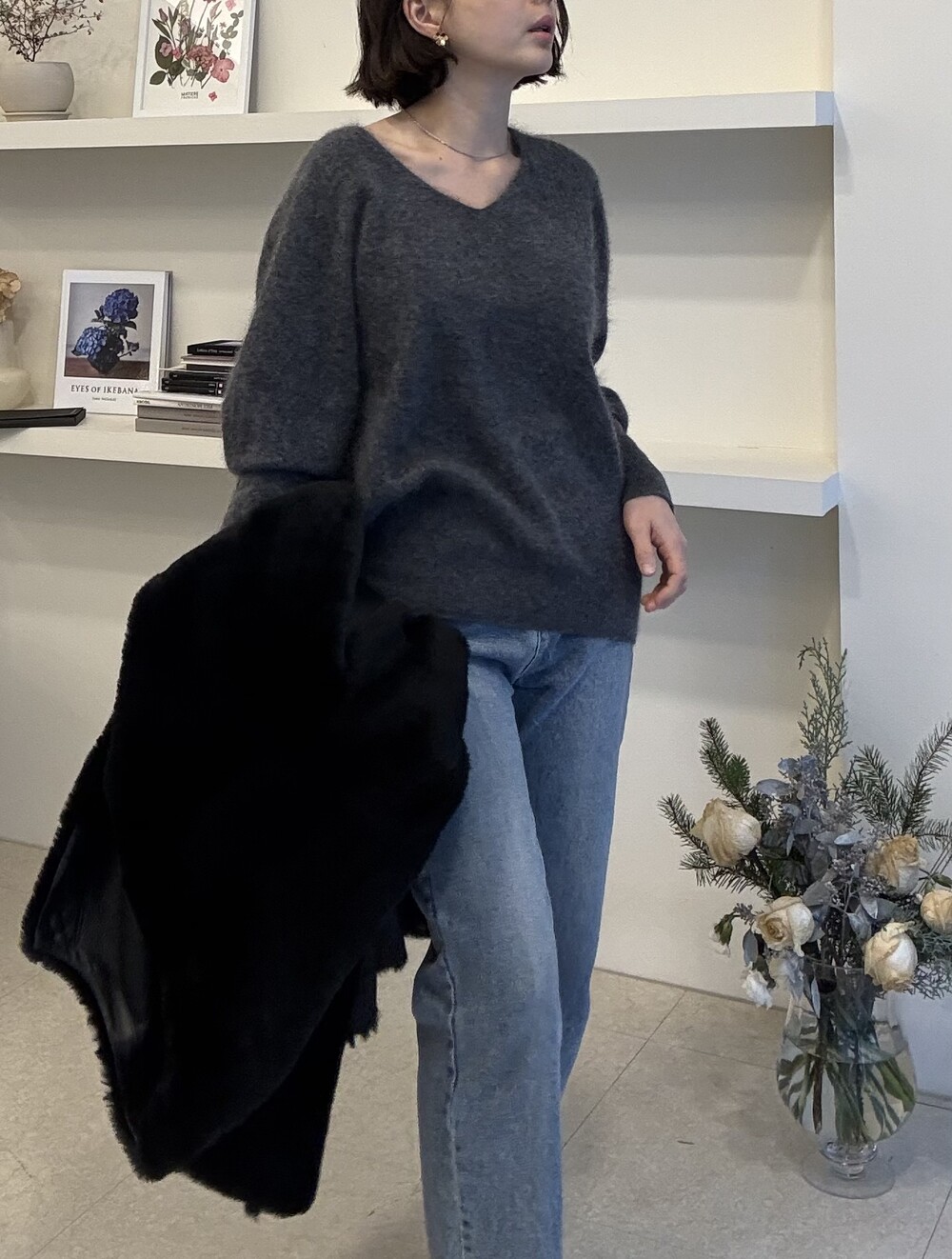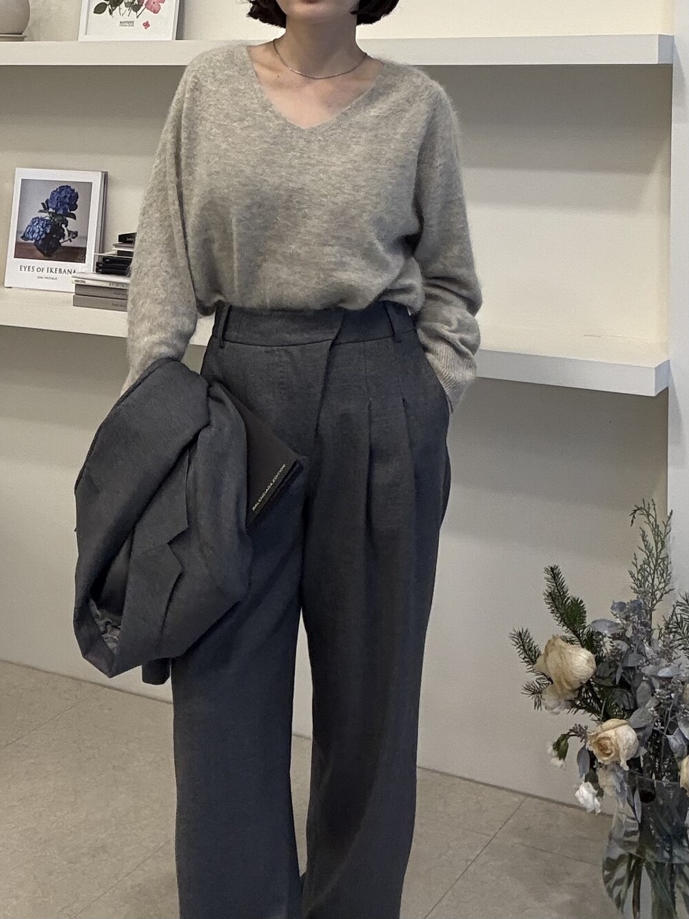 맨살에 닿는 느낌이 매우 부드러운 울90% / 캐시미어10% 원료로 부드럽게 짜여진 V넥 니트입니다.