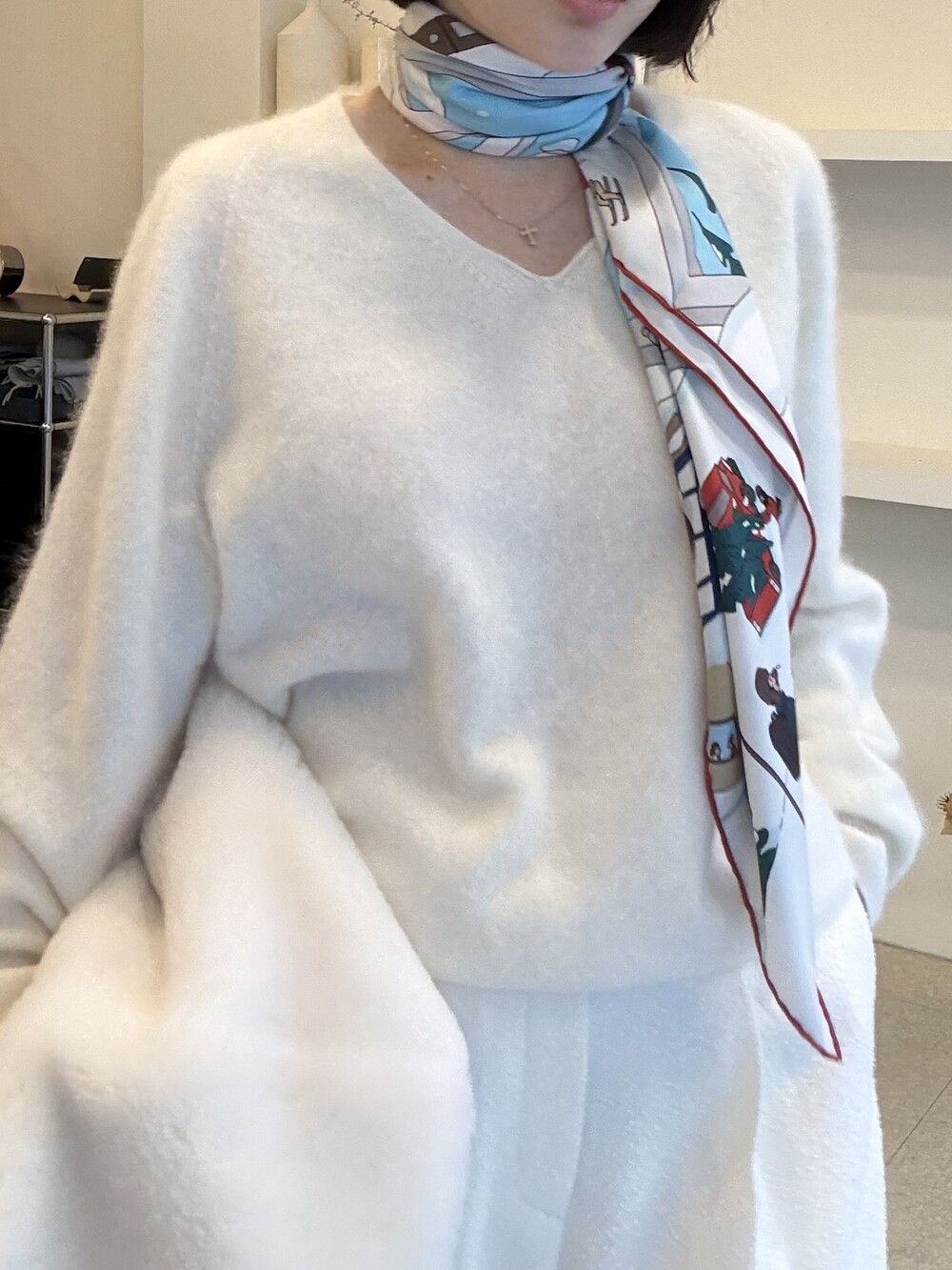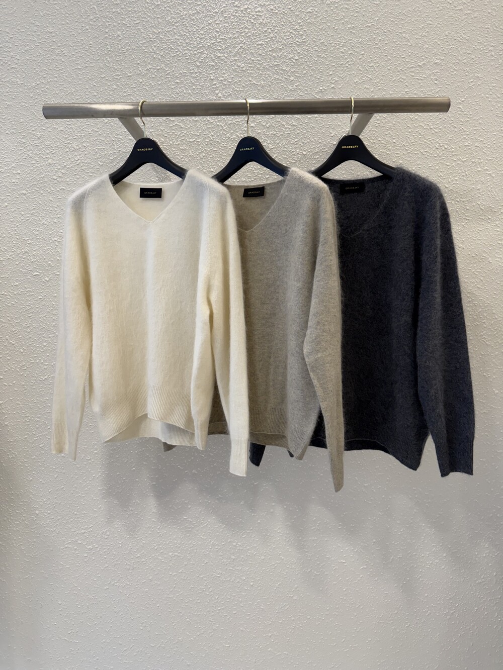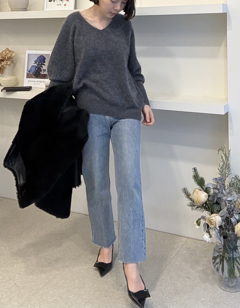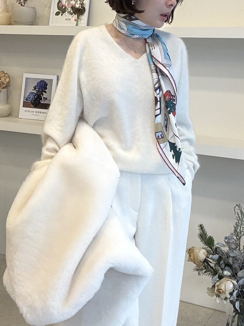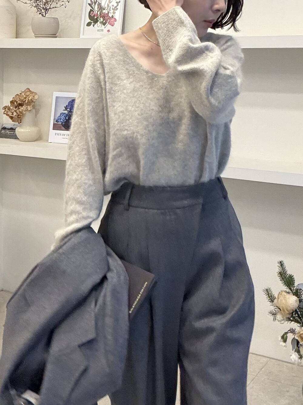 맨살에 닿는 느낌이 매우 부드러운 울90% / 캐시미어10% 원료로 부드럽게 짜여진 V넥 니트입니다.