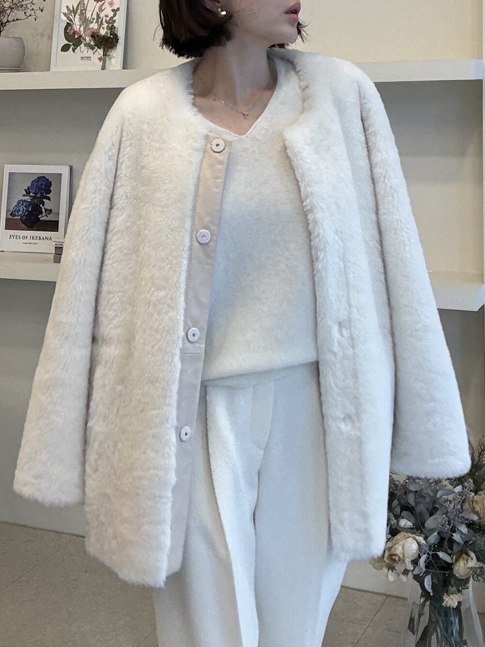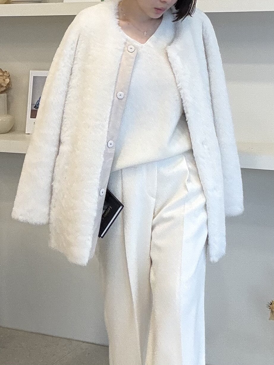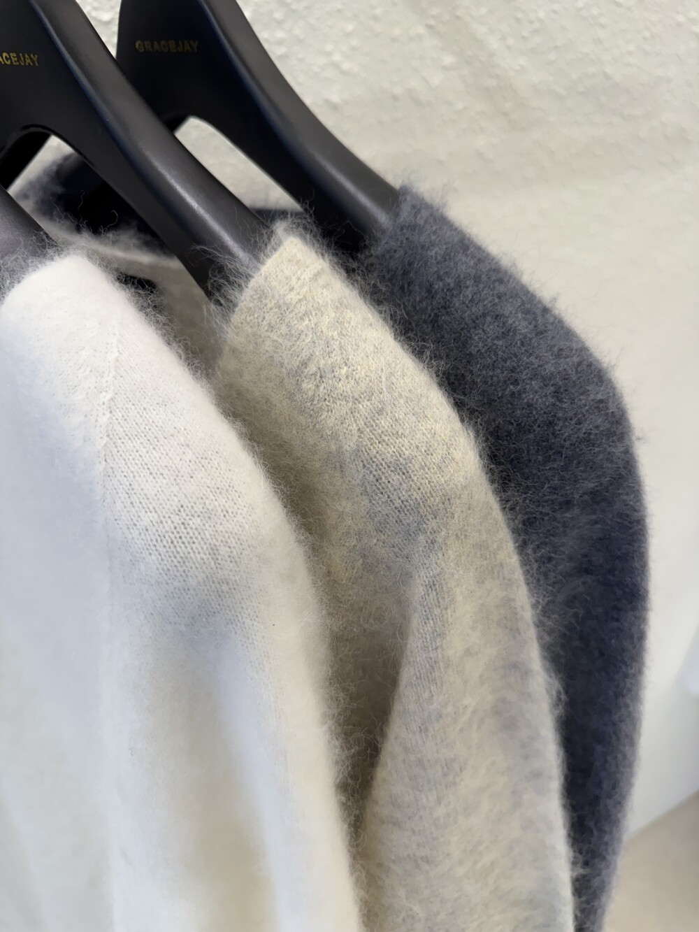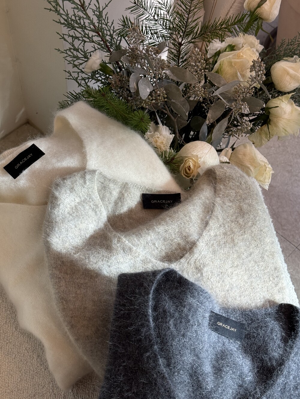 봉제라인이 없는 홀가먼트 기법으로 짜여졌으며, 앙고라의 원료가 아니라서 털빠짐은 현저히 적습니다.