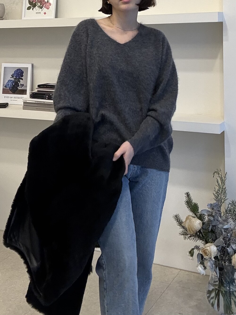 적당한 V라인의 파임과 여리한 느낌으로 연출이 좋은 니트라서 좋아하시는 분들께는 컬러상관없이 어떠한 컬러를 선택하셔도 만족되실거에요.