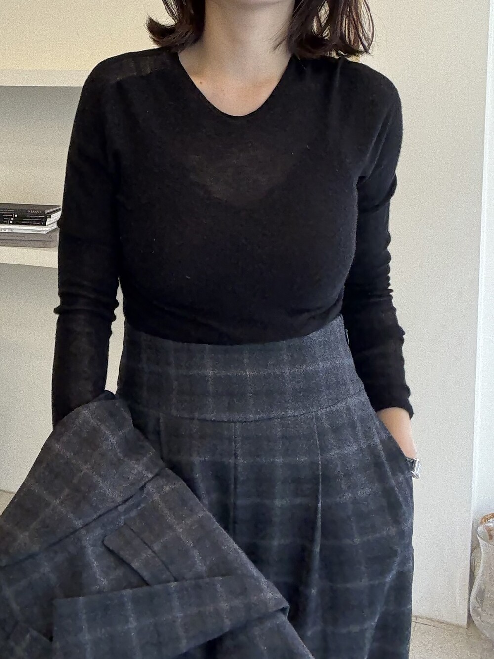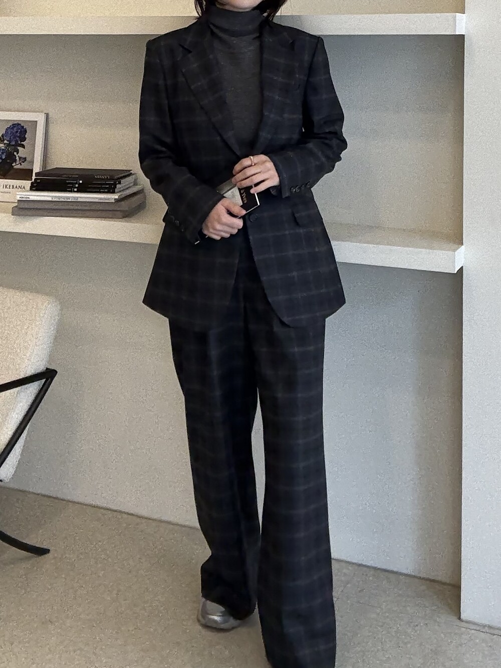 무엇보다 다리가 길어보이고 힙의 라인감도 예뻐보이게 만들어줘서 더 좋습니다. 힐을 신지 않는 분들도 길어보이는 연출이 가능하며 오랜시간의 연구를 통해 완성된 실루엣인 만큼 안정적으로 오래오래 포멀함 속에서 우아하게 즐겨주세요.
