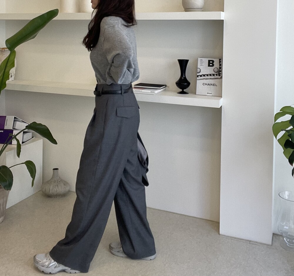 골반이 넓으신 분들도 안정적인 실루엣으로 입을 수 있는 New 투턱 팬츠입니다.