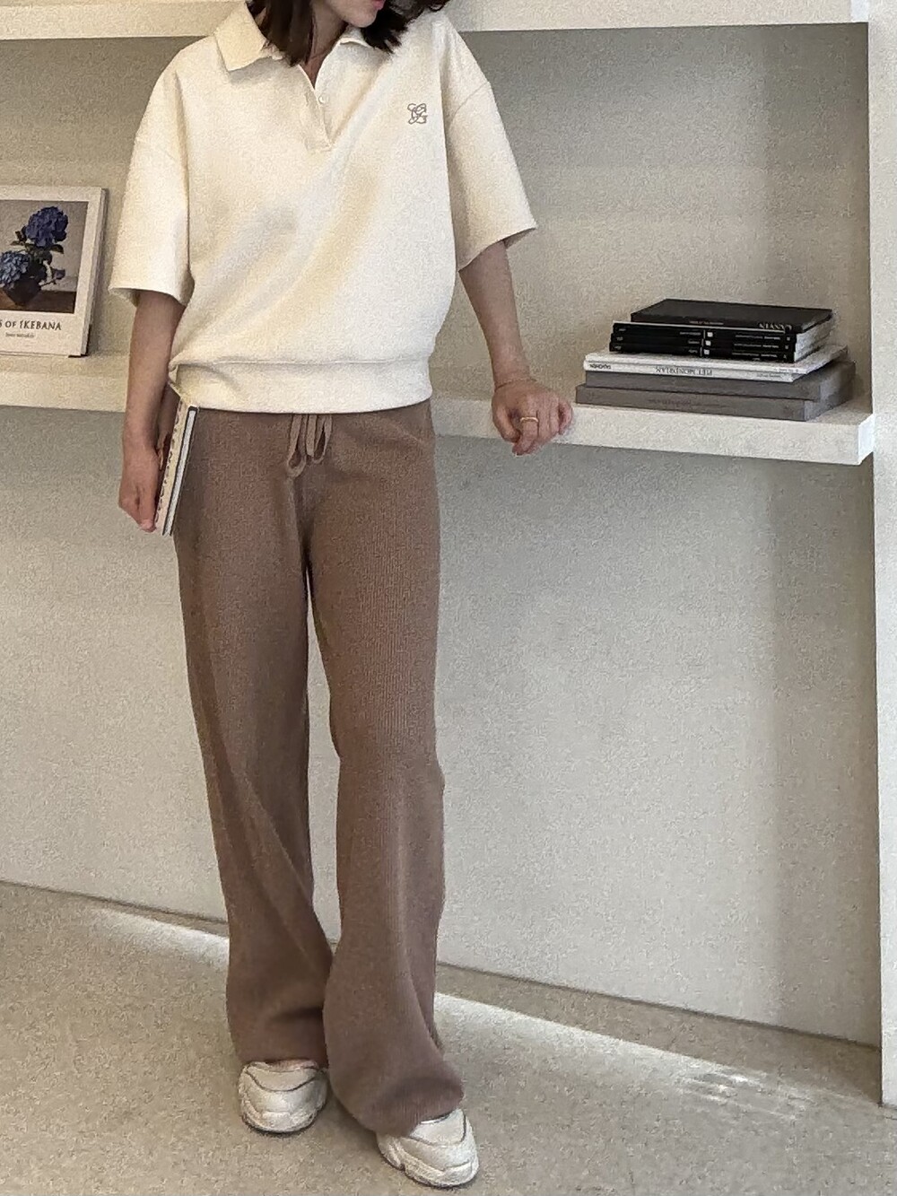 입체감 조직이 돋보이는 고급 코튼 베이스의 니트 팬츠 입니다.