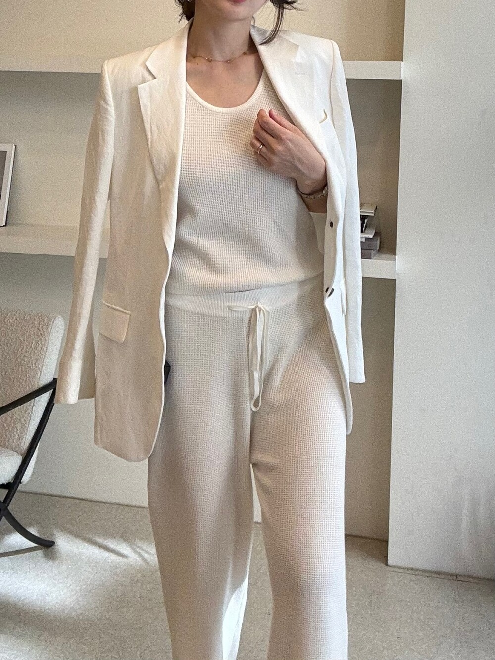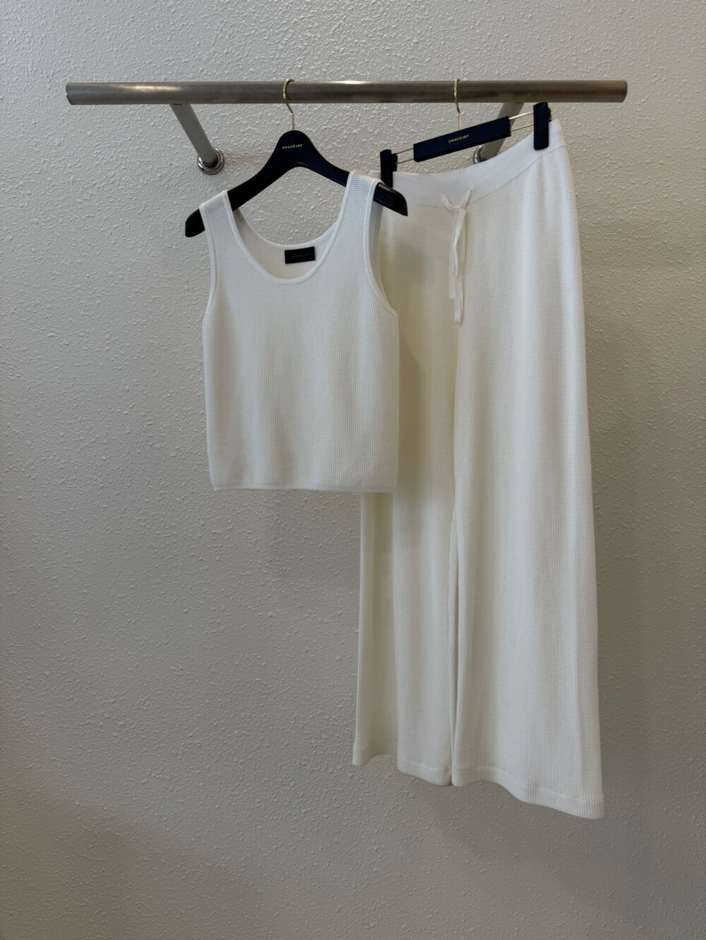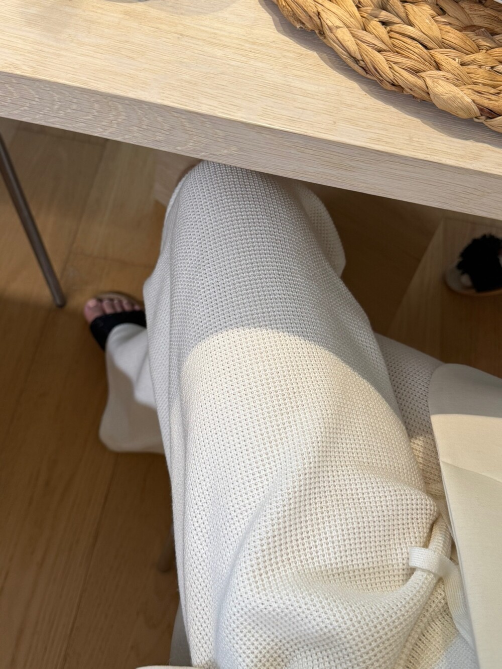 입체감 조직이 돋보이는 고급 코튼 베이스의 니트 팬츠 입니다.
