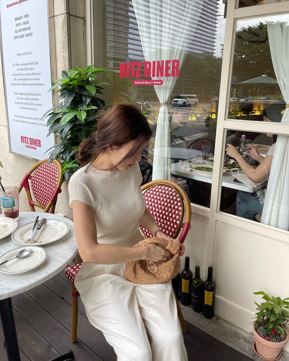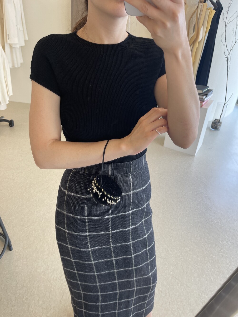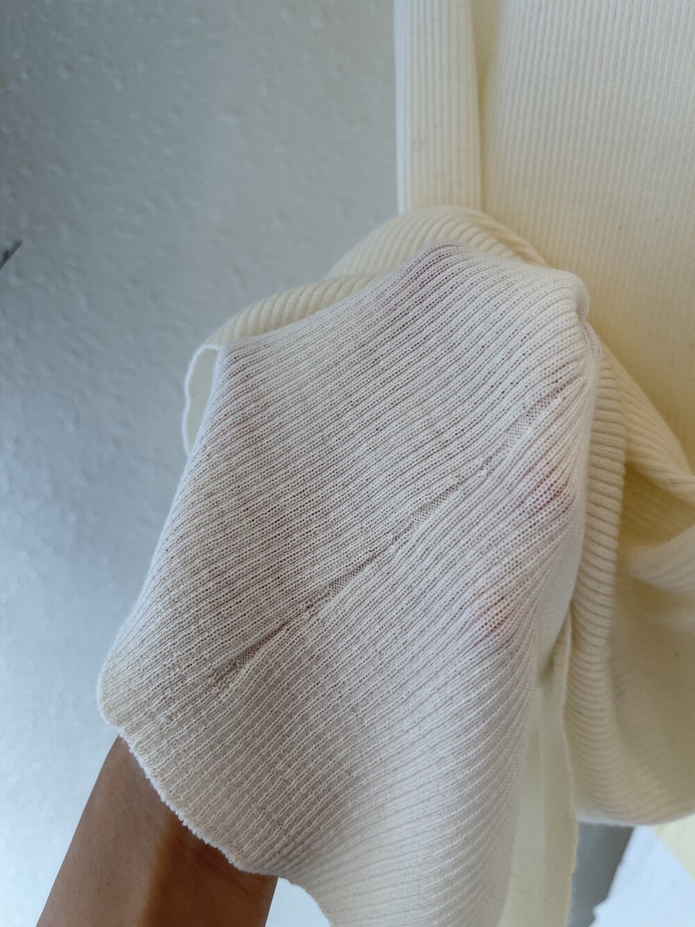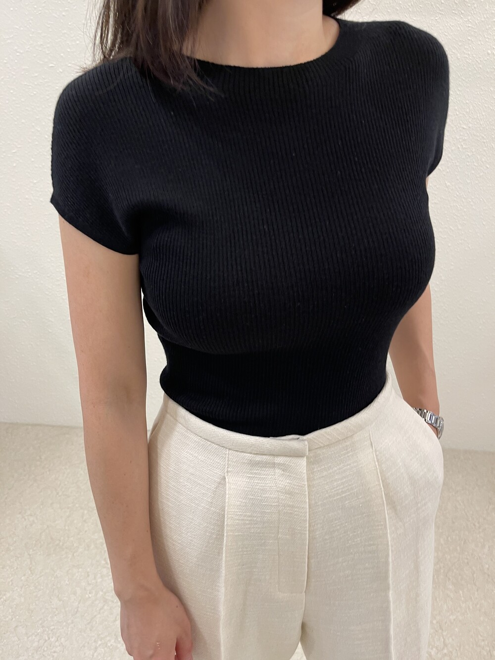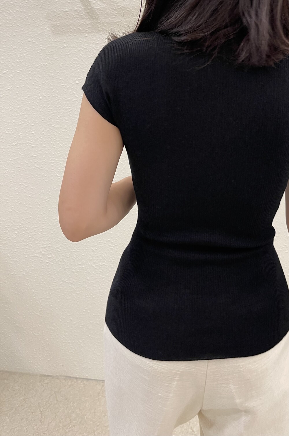 오프 화이트 컬러는 쨍한 화이트 속옷과 매치시 비침이 있으니, 은은한 스킨 컬러의 속옷과 매치해주세요.