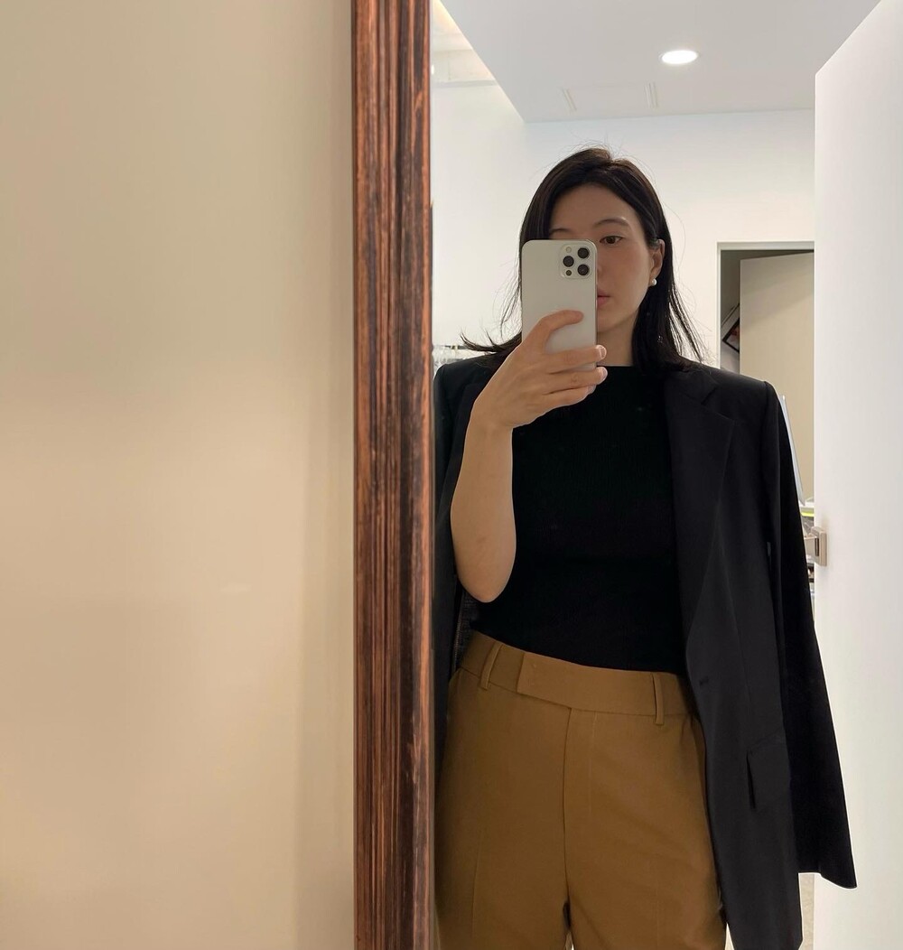 로우 하프넥 니트는 니트 단품만으로도 충분히 우아하고 단아한 멋을 가지고 있기에