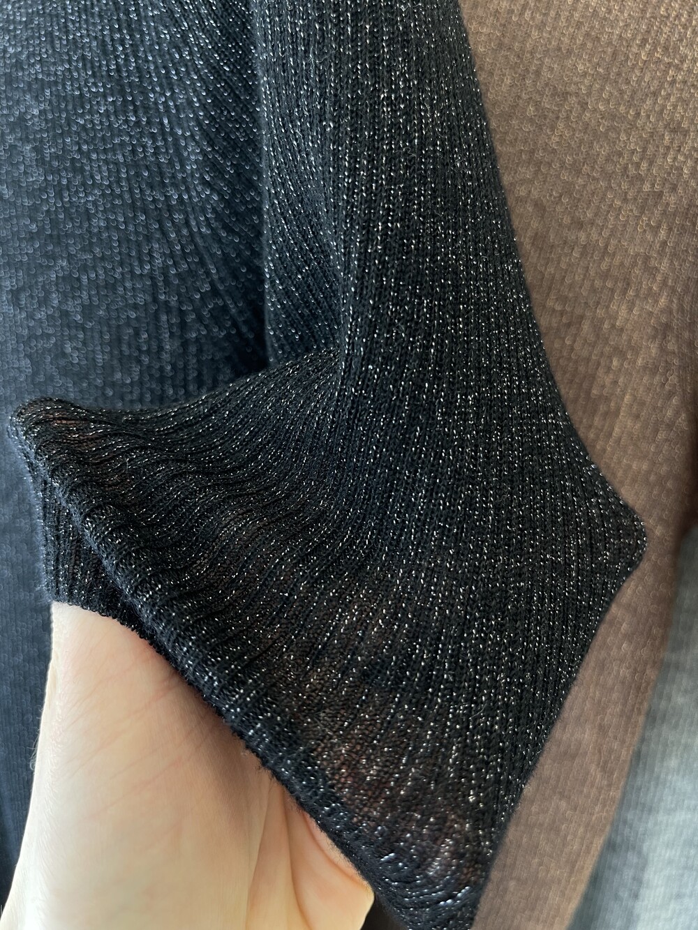 울 85% 비스코스레이온15 % ( 반짝이는 펄사 ) 의 소재이며, 답답하지 않은 목선과 팔라인을 가볍게