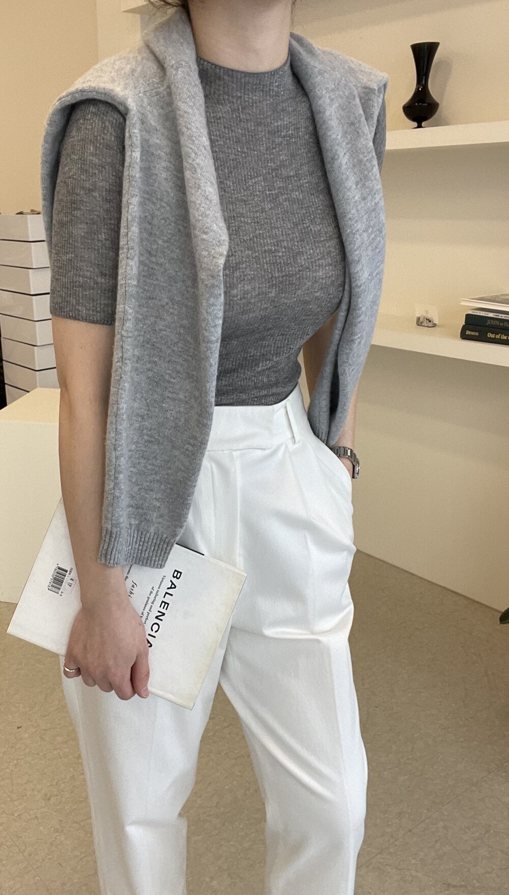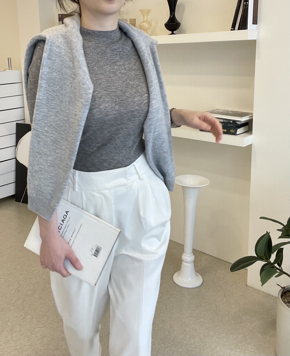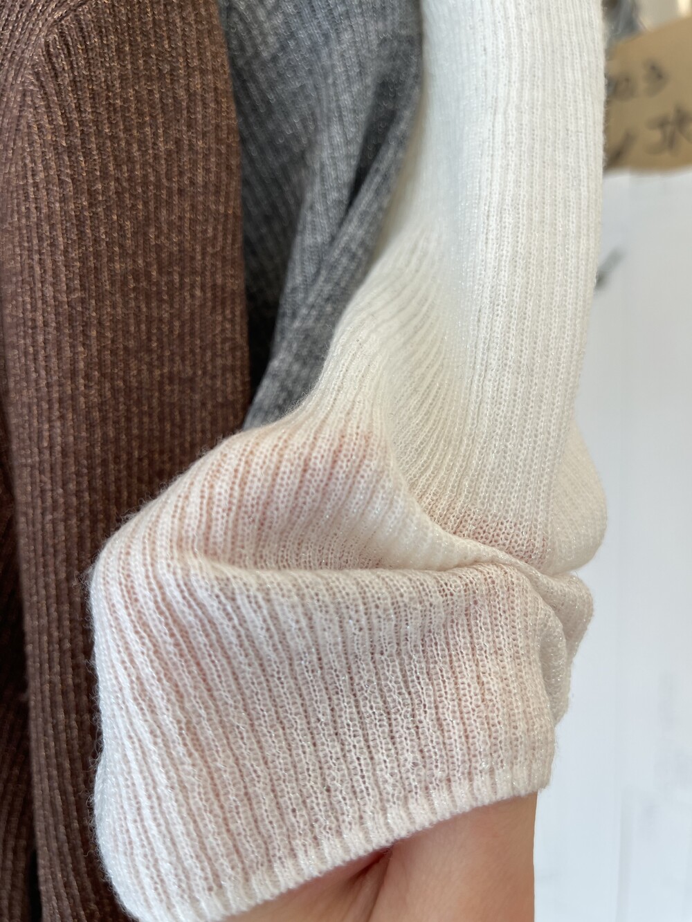 어깨선, 옆선 모두 무봉제 홀가먼트 고급봉제로마감 되었으며, 소프트하고 우아하고 지적인 분위기를 느낄 수 있는 니트입니다.