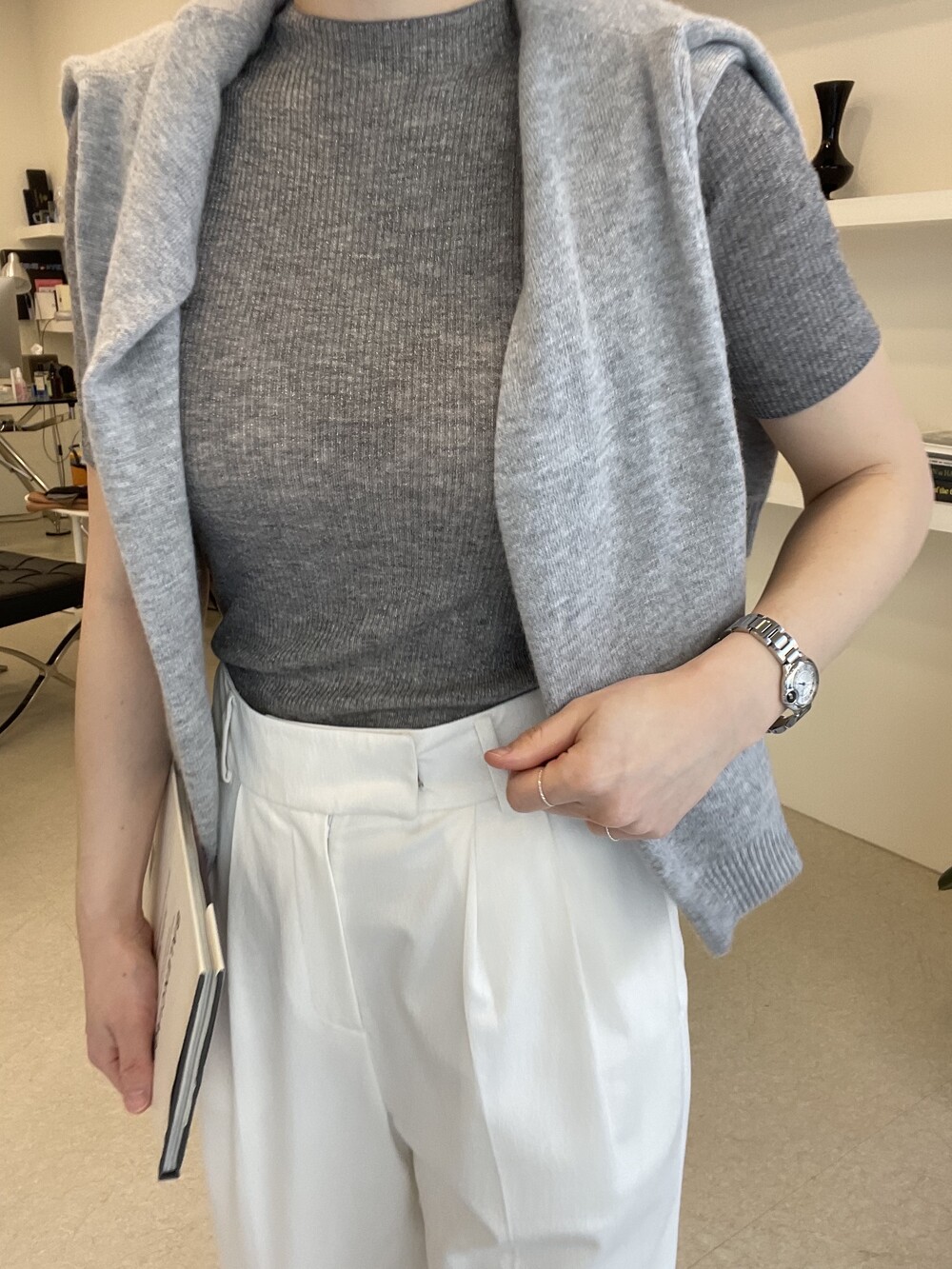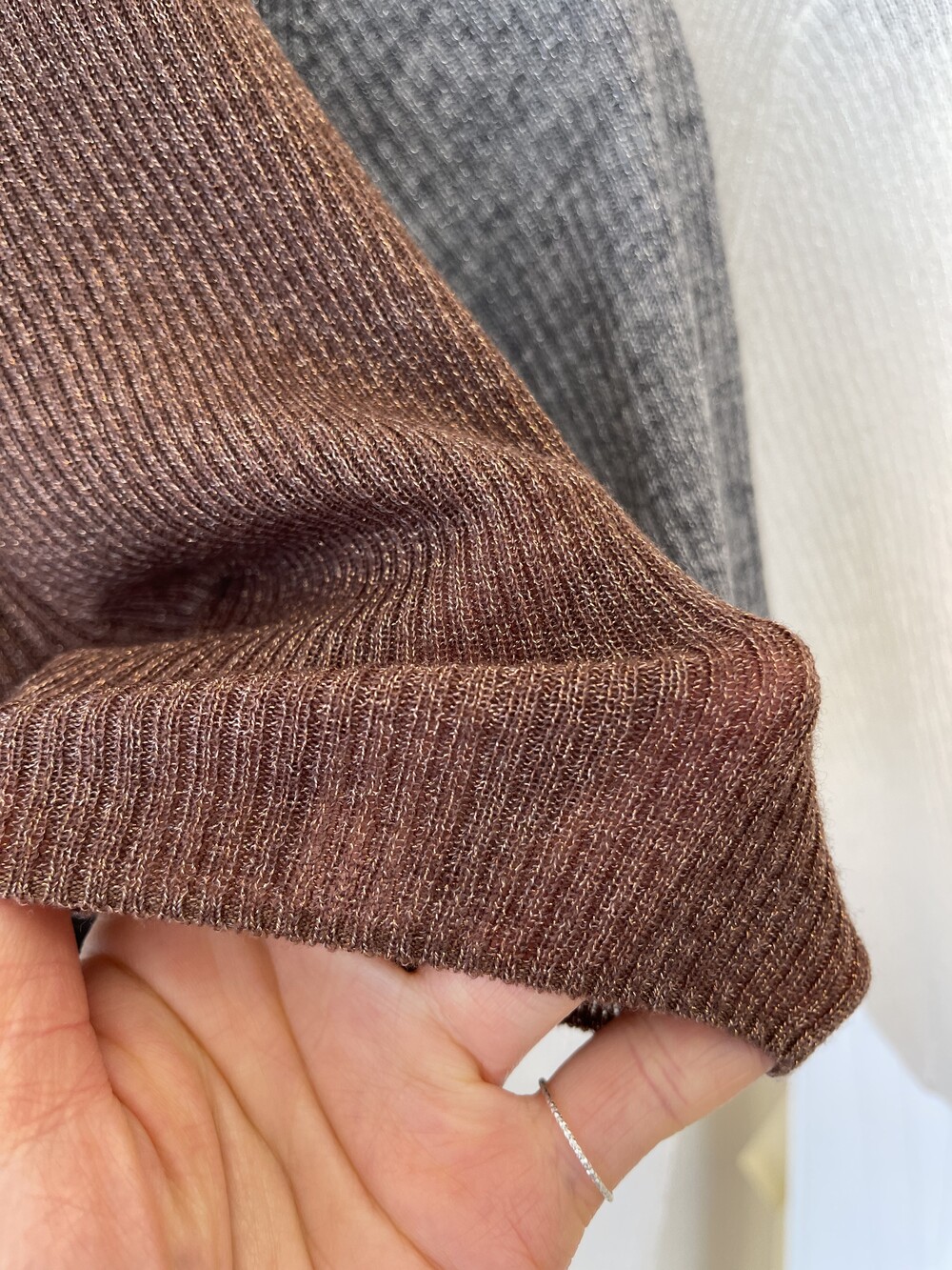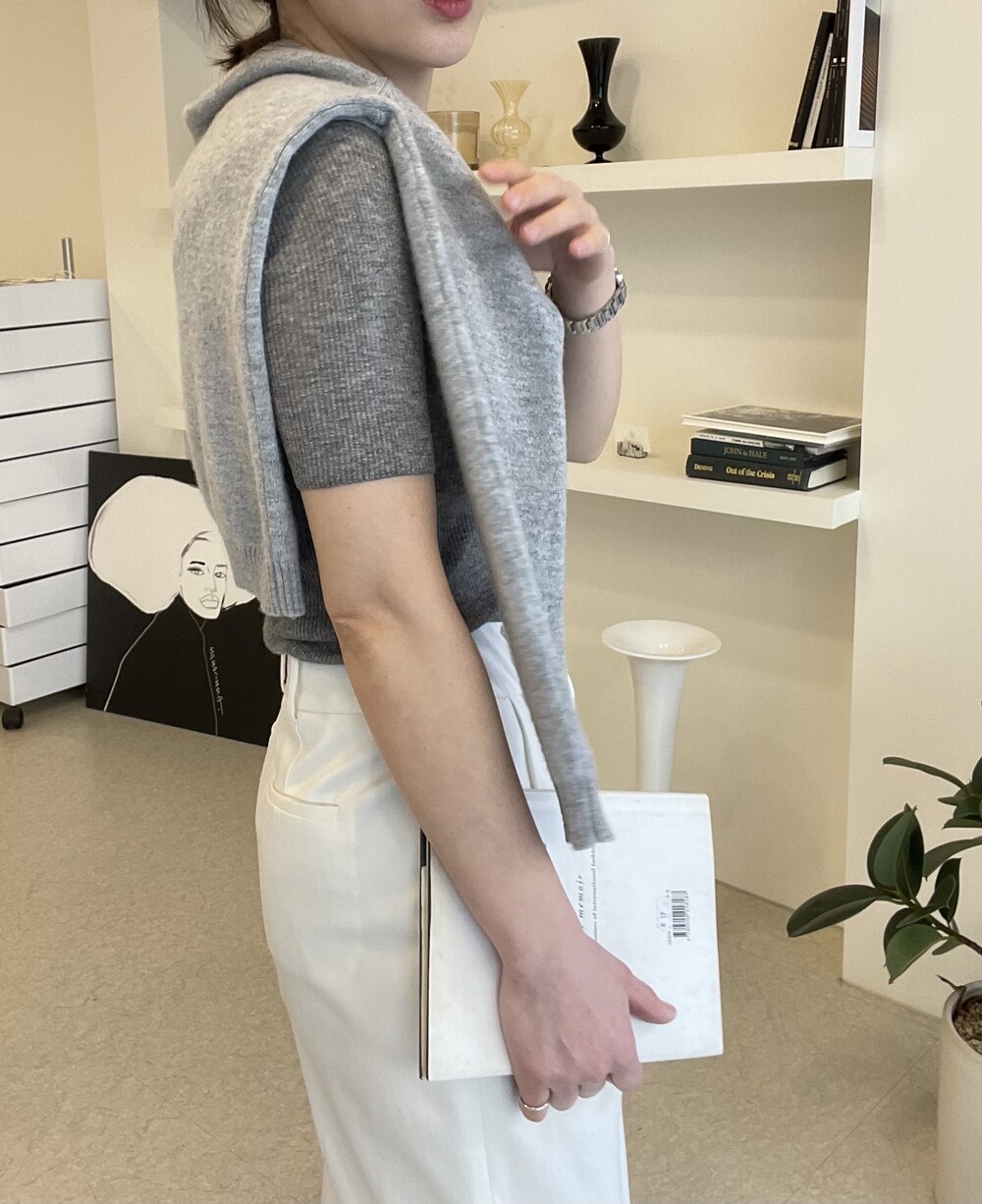 어깨선, 옆선 모두 무봉제 홀가먼트 고급봉제로마감 되었으며, 소프트하고 우아하고 지적인 분위기를 느낄 수 있는 니트입니다.