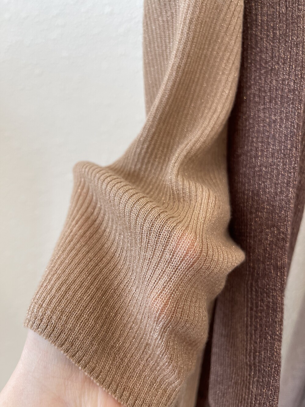 자연스럽게 밀착되도록 입는 핏이며, 은은하게 반짝이는 펄사가 함유되었음에도 불구하고 편안하고 매우 부드러운 촉감을 느낄 수 있도록 만들어졌습니다.