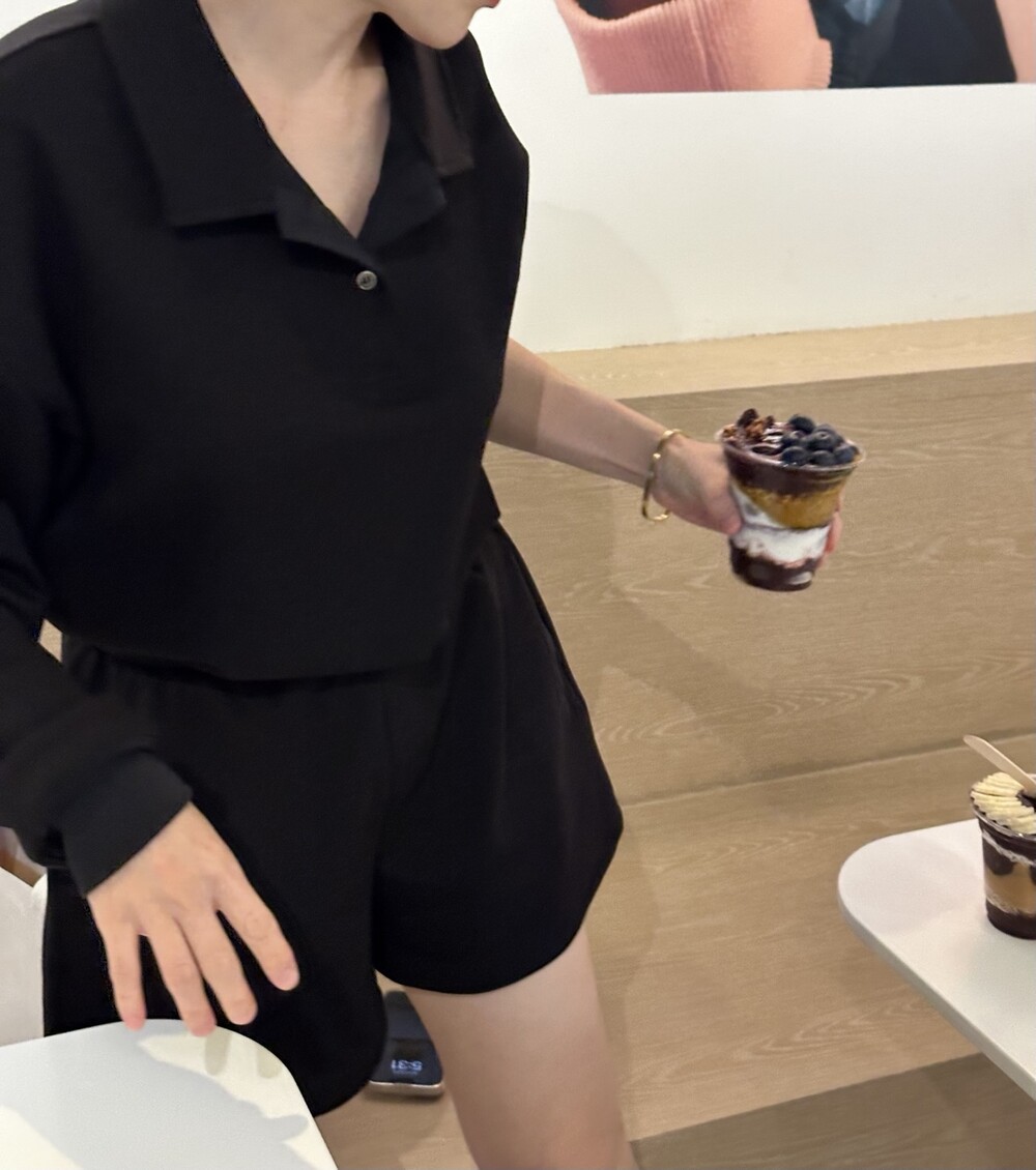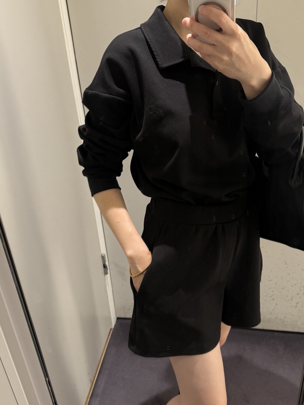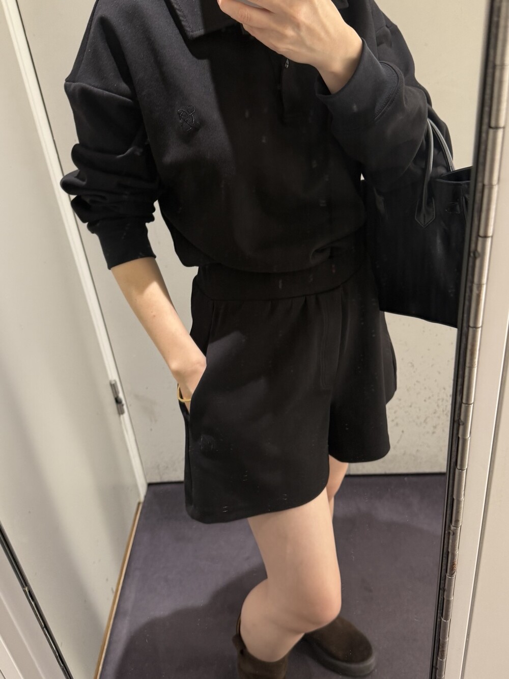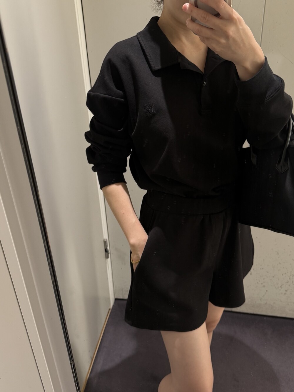 상의는 동일 소재의 블랙 컬러로 긴소매+ 반소매 각각 선택이 가능합니다.
