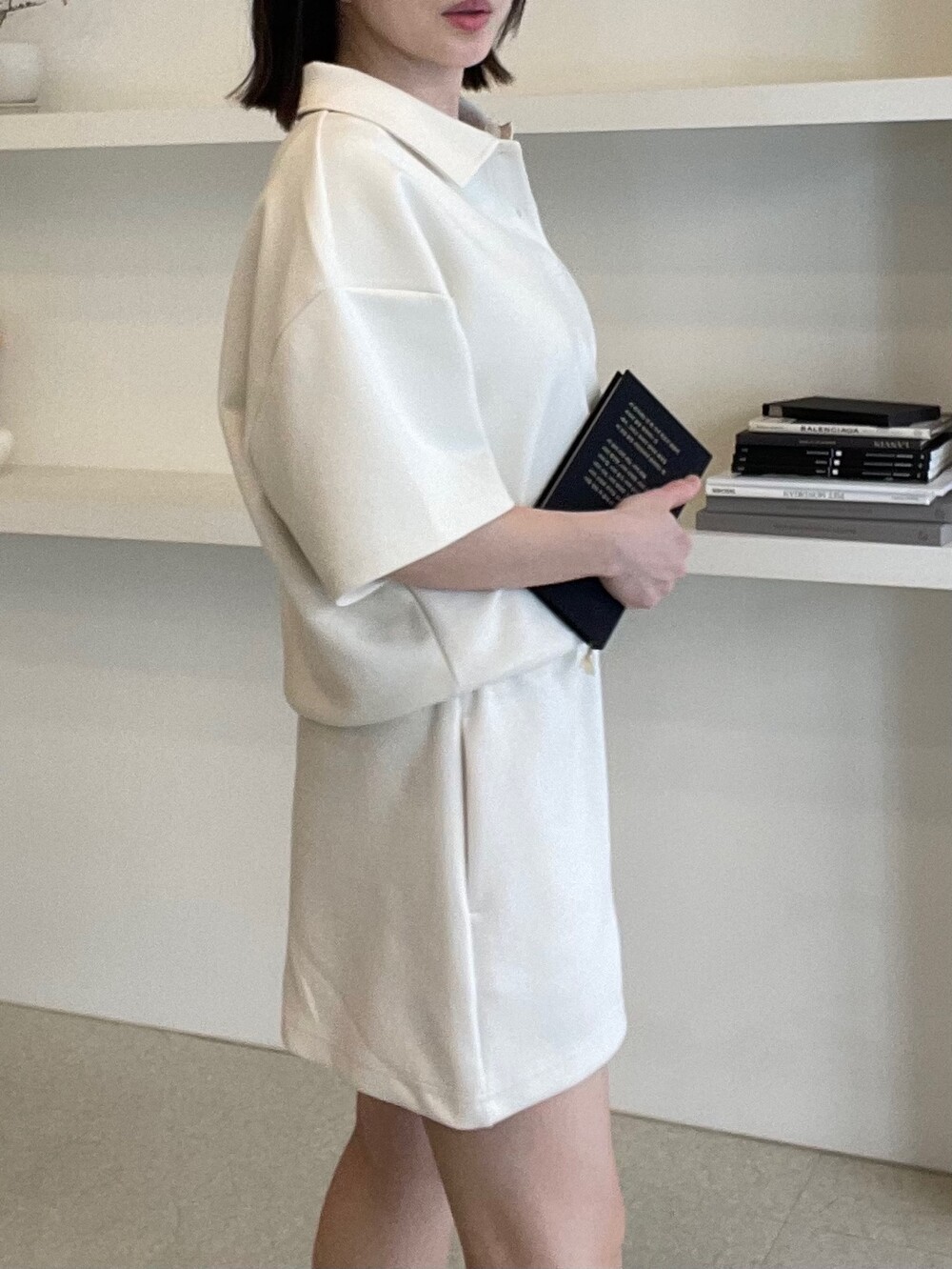 부해보이지 않는 에어리한 쿠션감의 코튼 혼방 소재로 맨살에 닿는 느낌이 매우 부드럽고 가벼운 질감의 하이앤드 소재로 만들어진 셋업입니다.