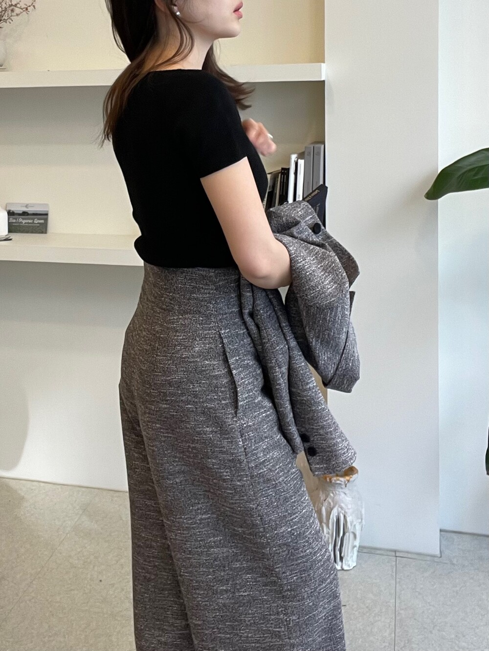 가볍고 시원하게 입을 수 있는 트위드 소재라서 제안되는 코디 외에도 셔츠, 면티셔츠등 여름까지 폭 넓게 활용해 주세요.