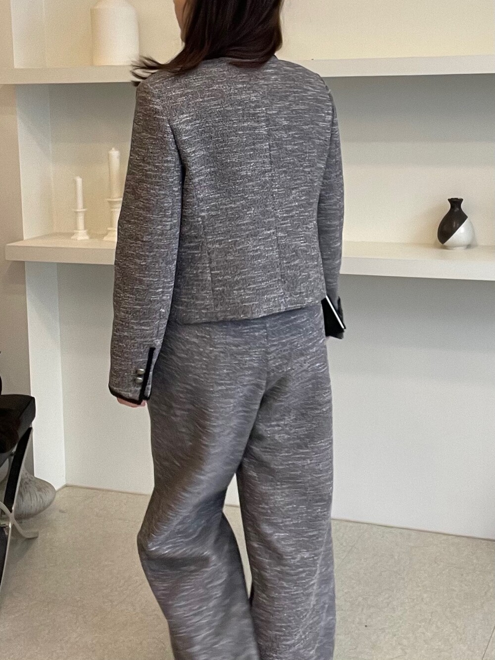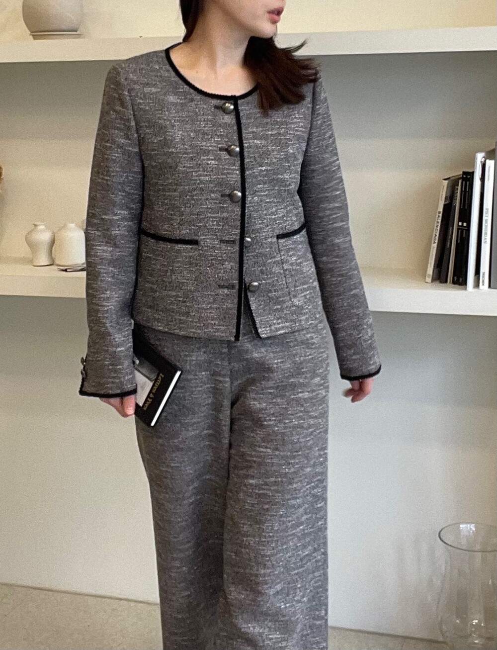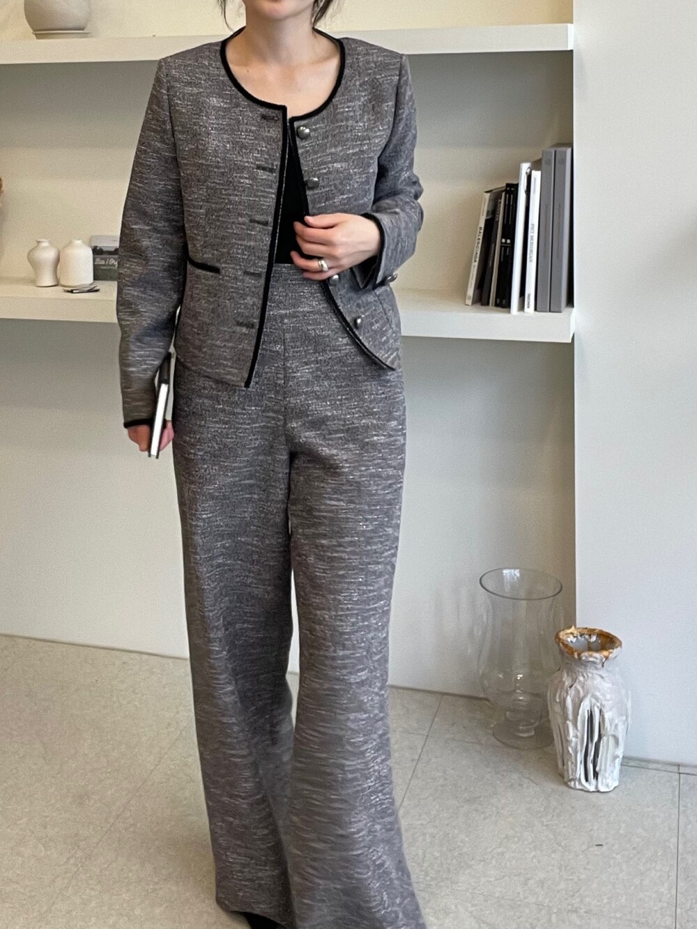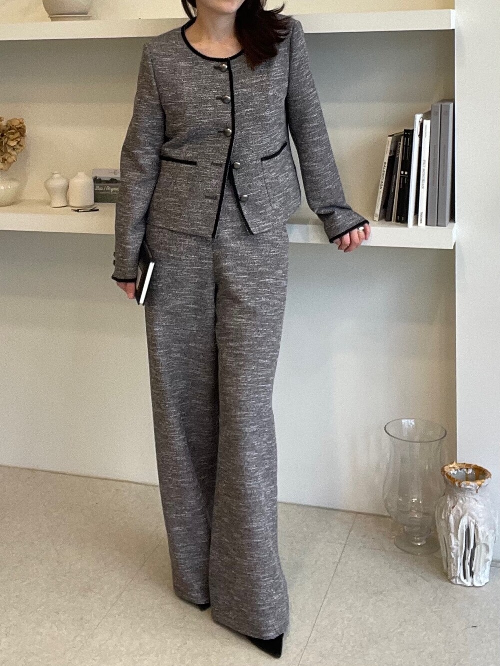 - 가벼운 중량을 느낄 수 있는 트위드 혼방사