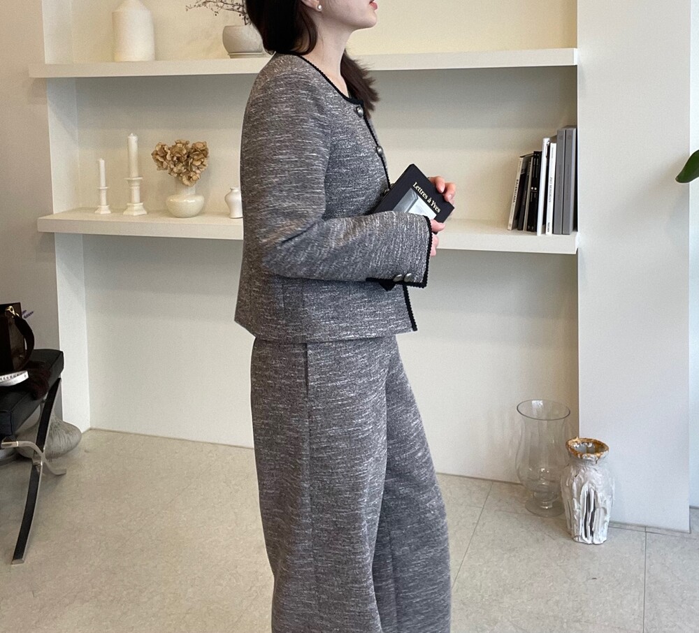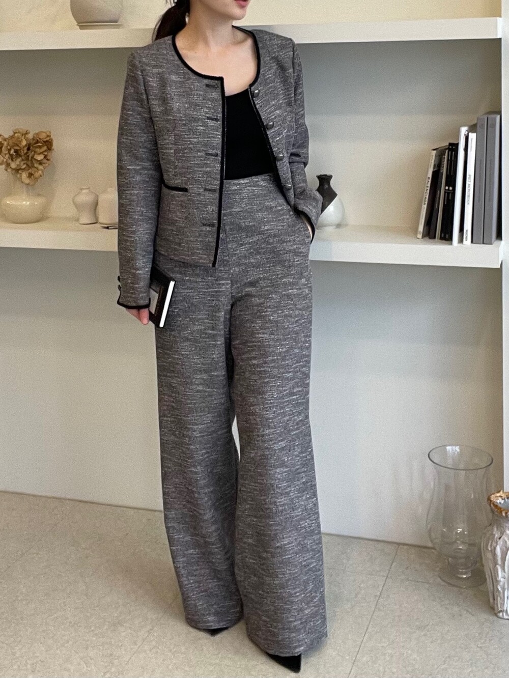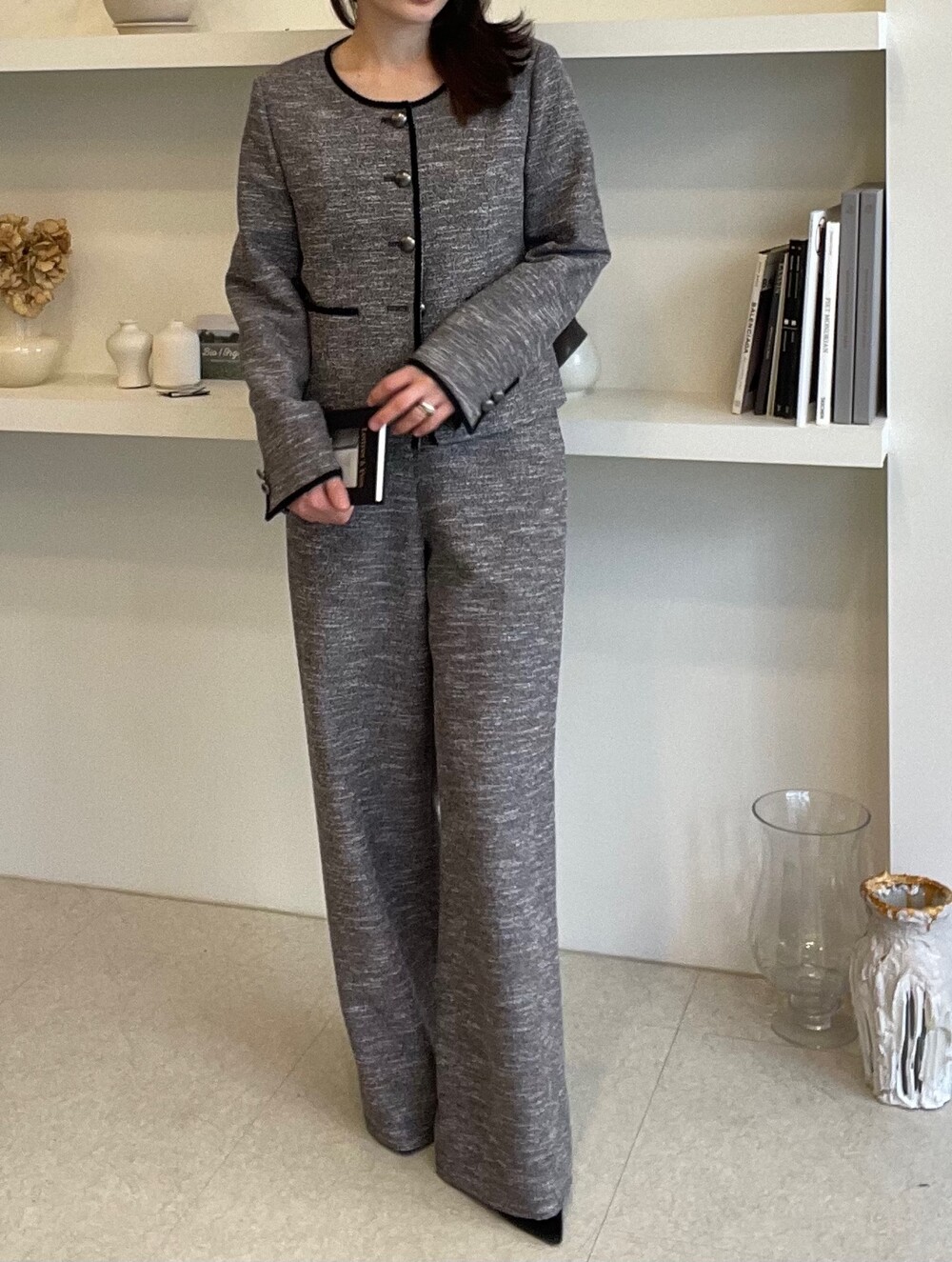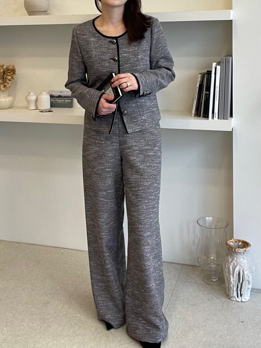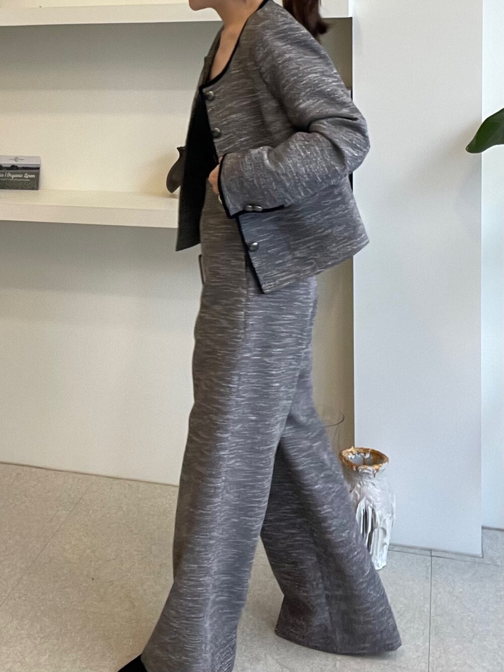 - 가벼운 중량을 느낄 수 있는 트위드 혼방사