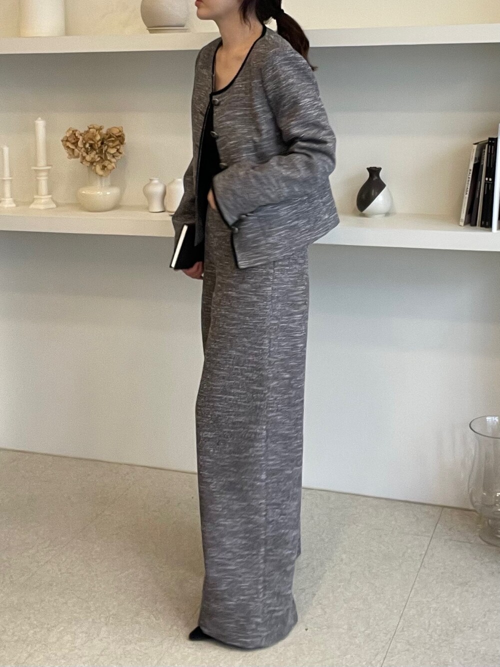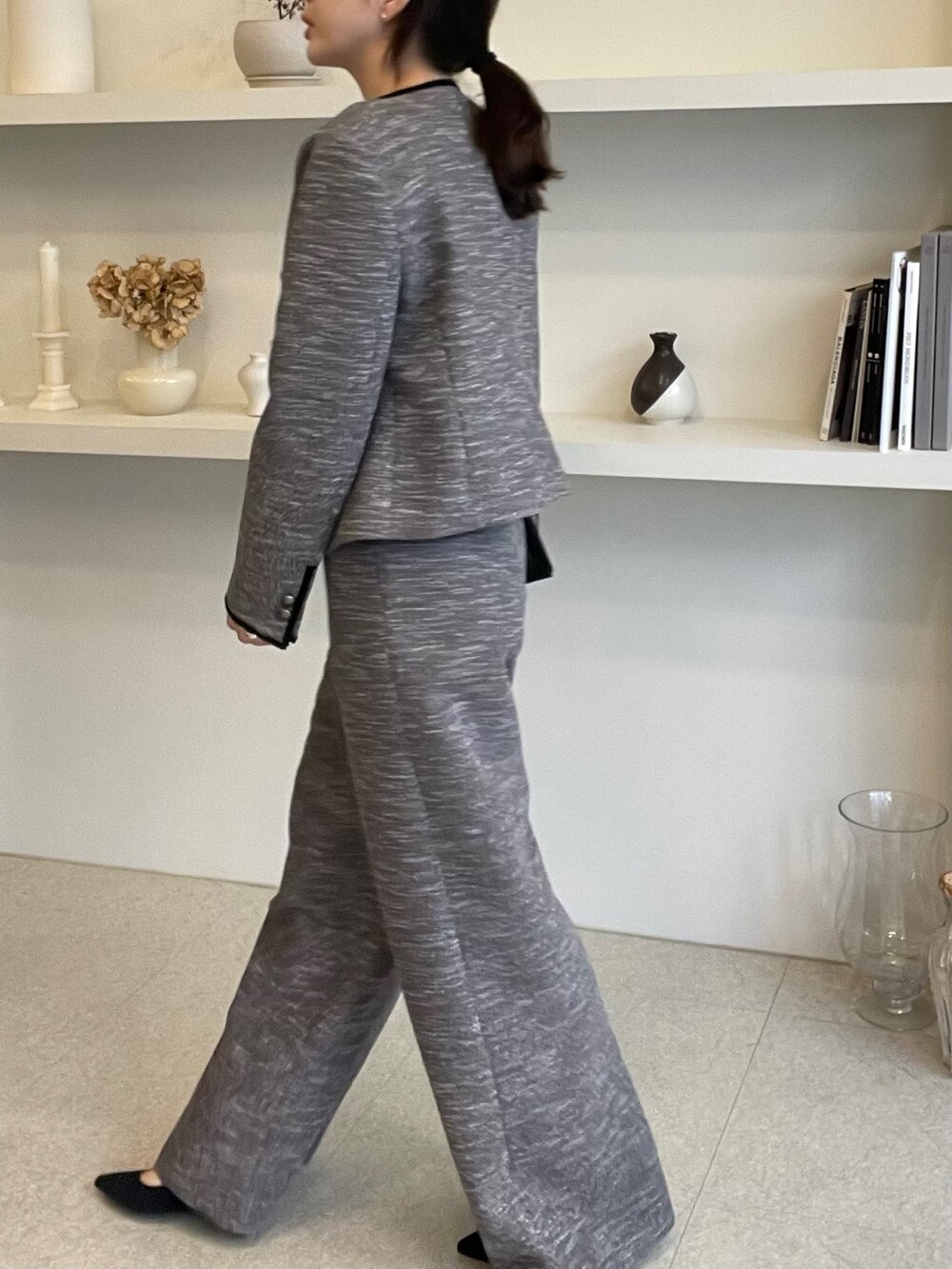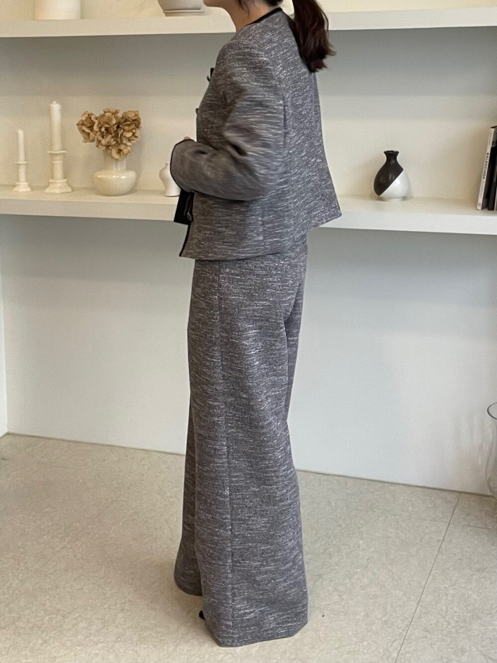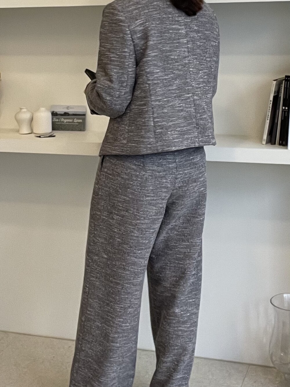 - 가벼운 중량을 느낄 수 있는 트위드 혼방사