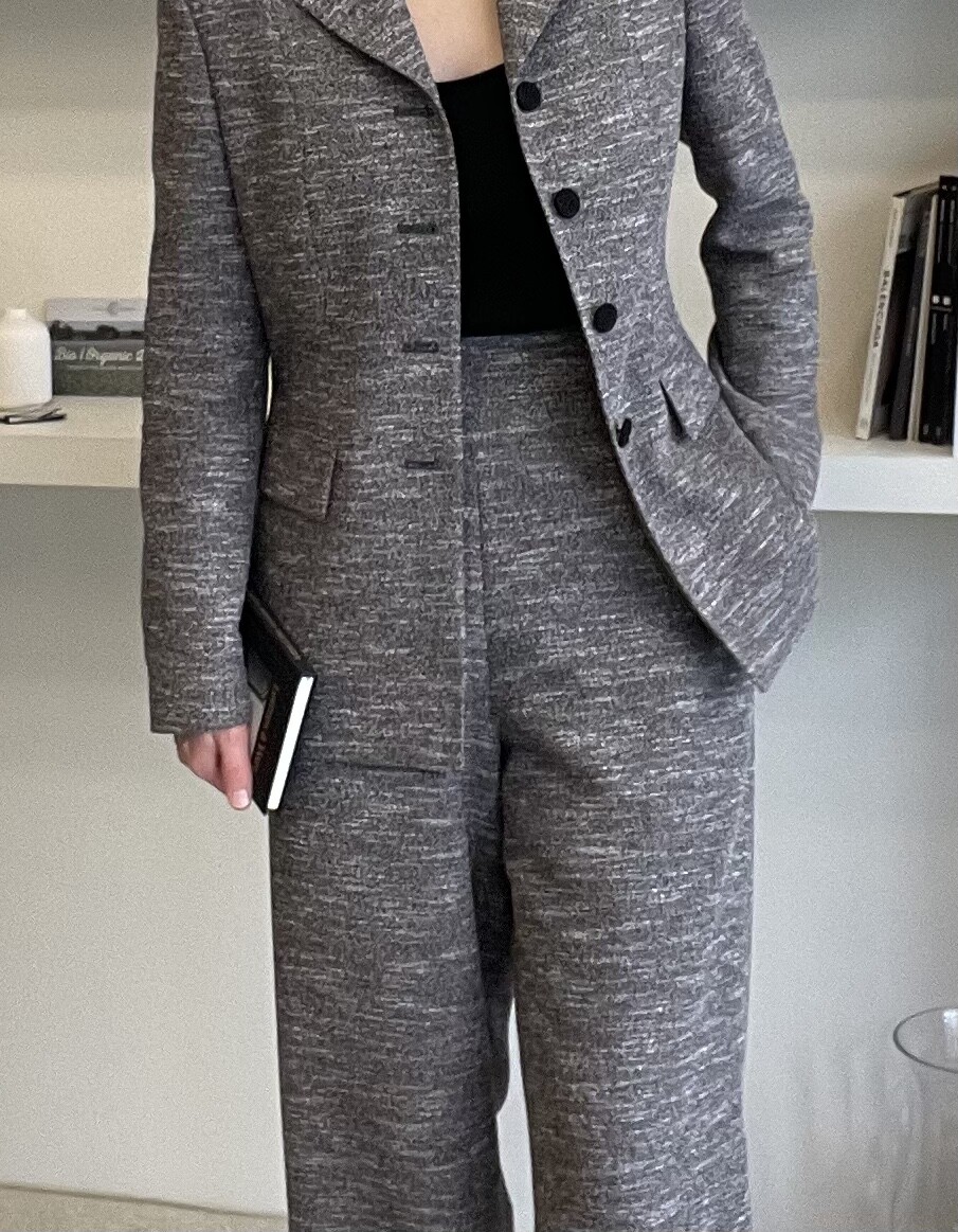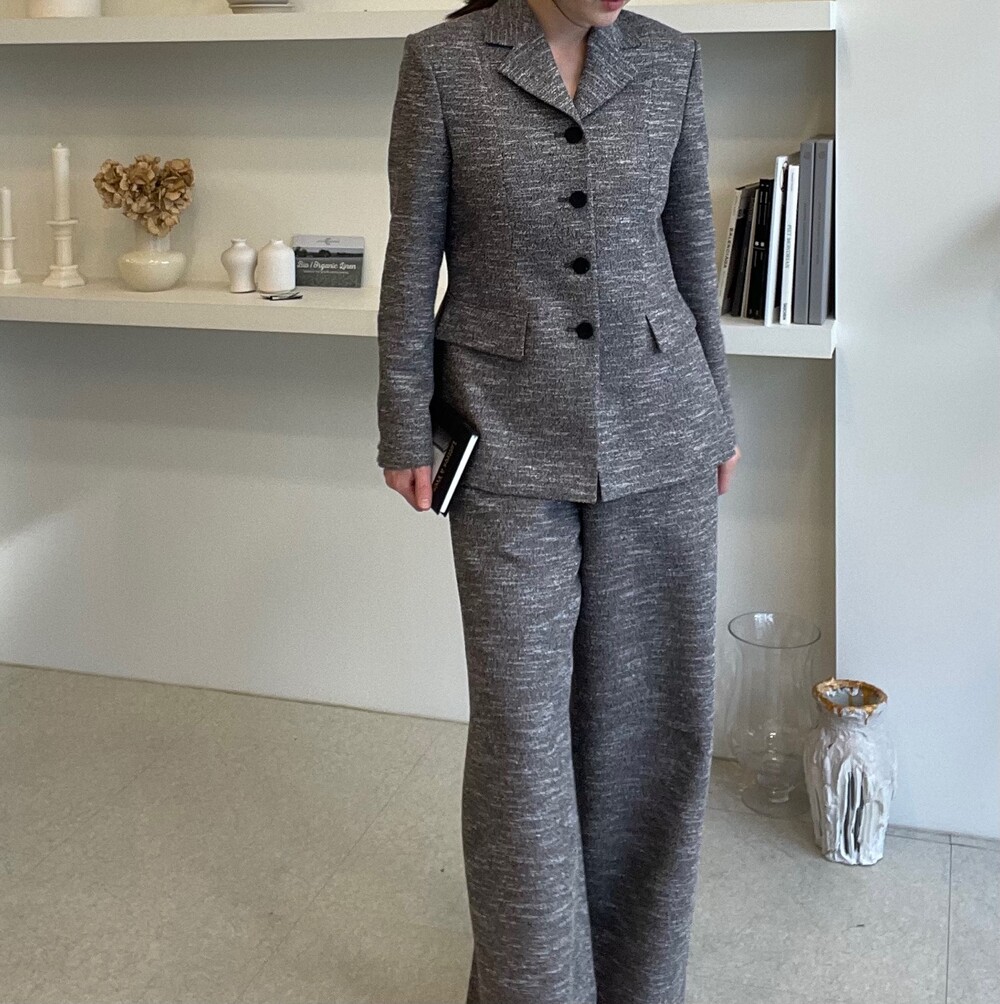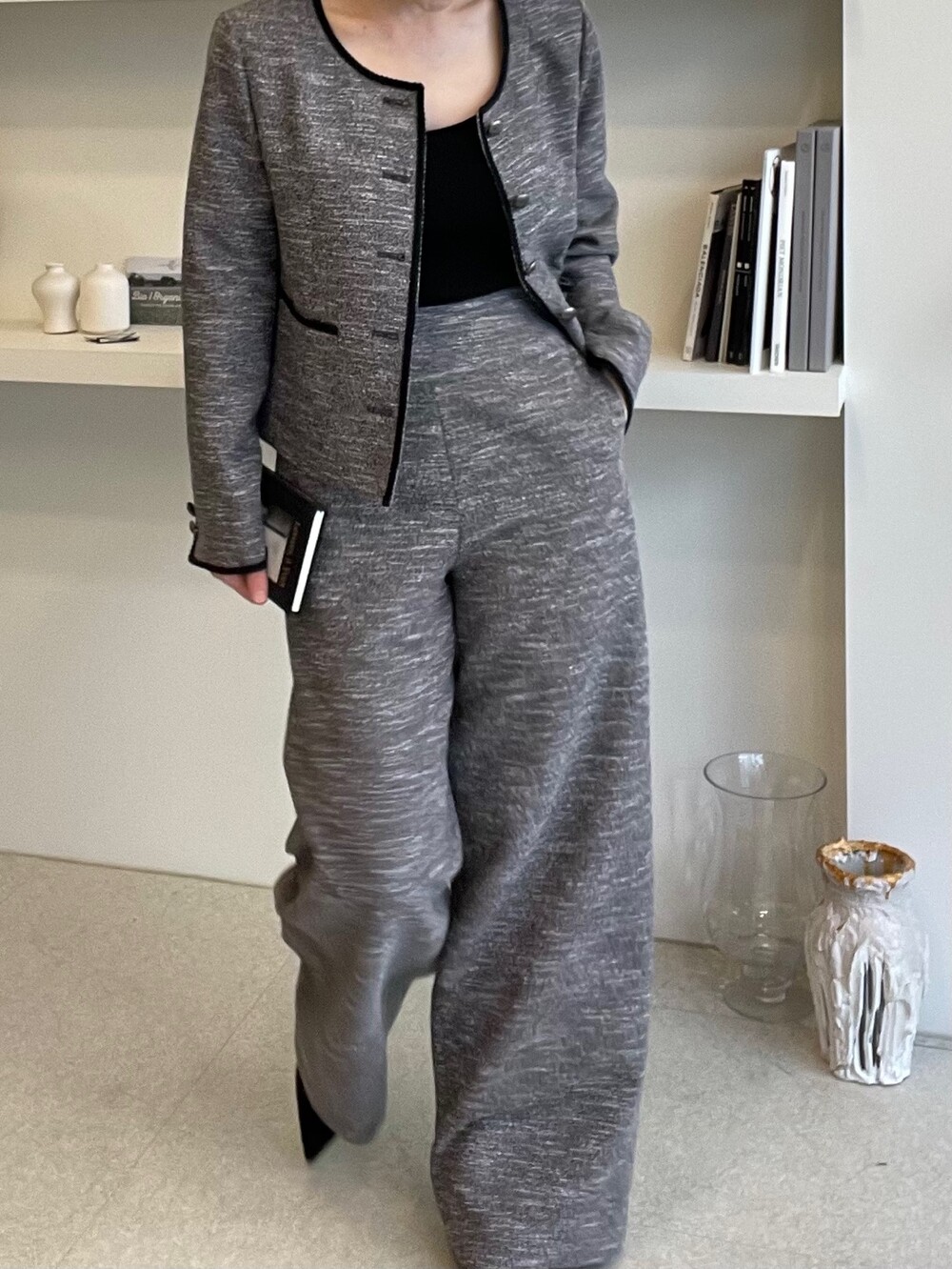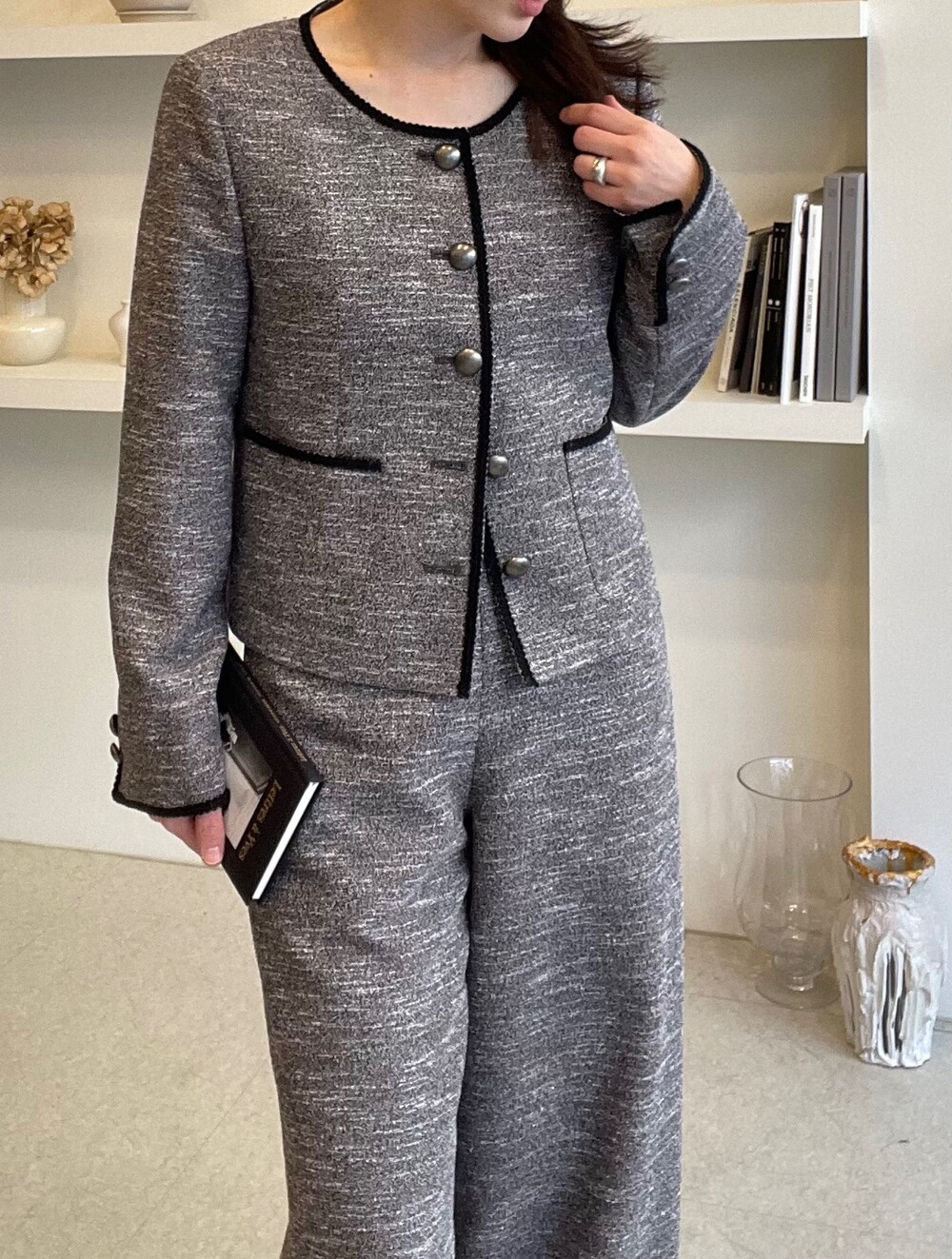 이태리 까베르니 원사로 만들어진 청량감이 느껴지는 트위드로 여름까지 즐길 수 있는 패브릭이며,