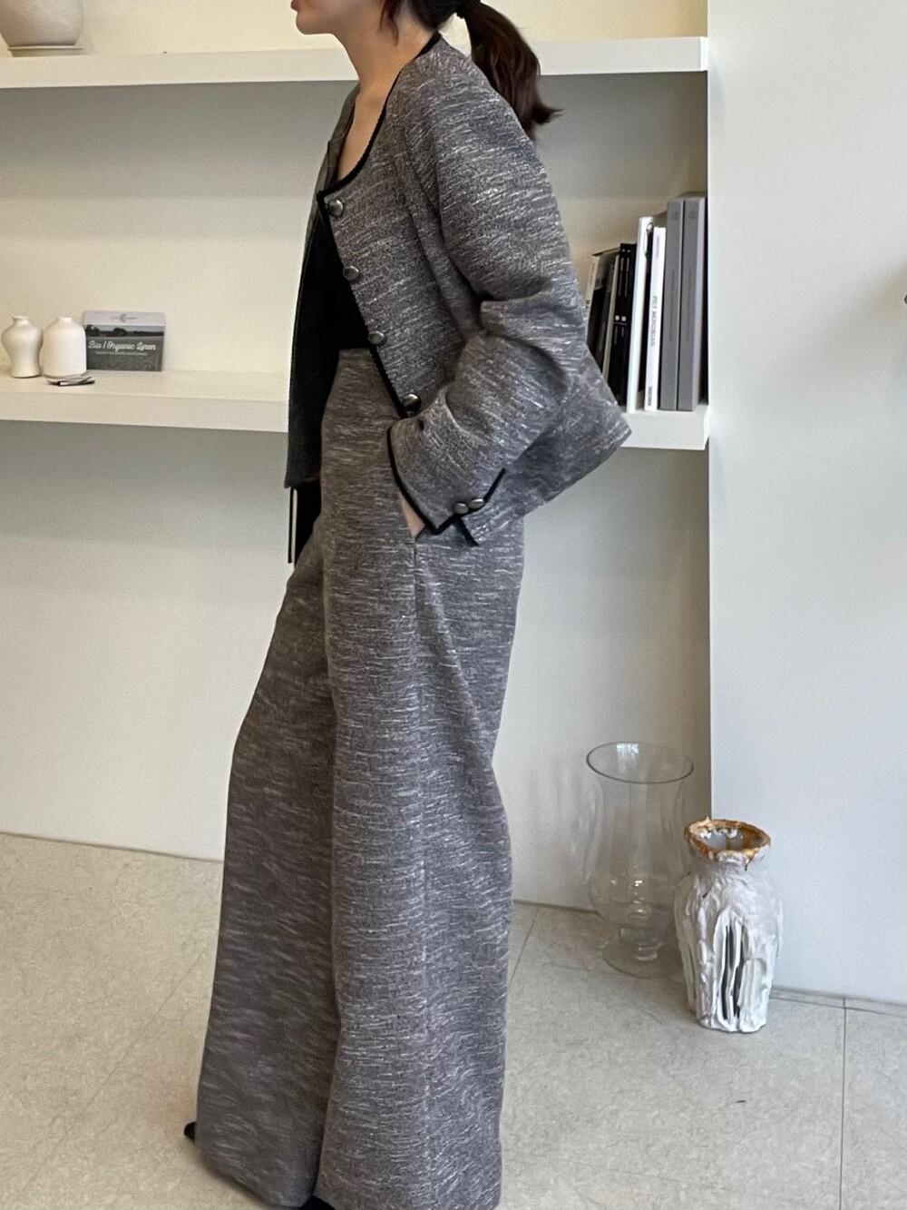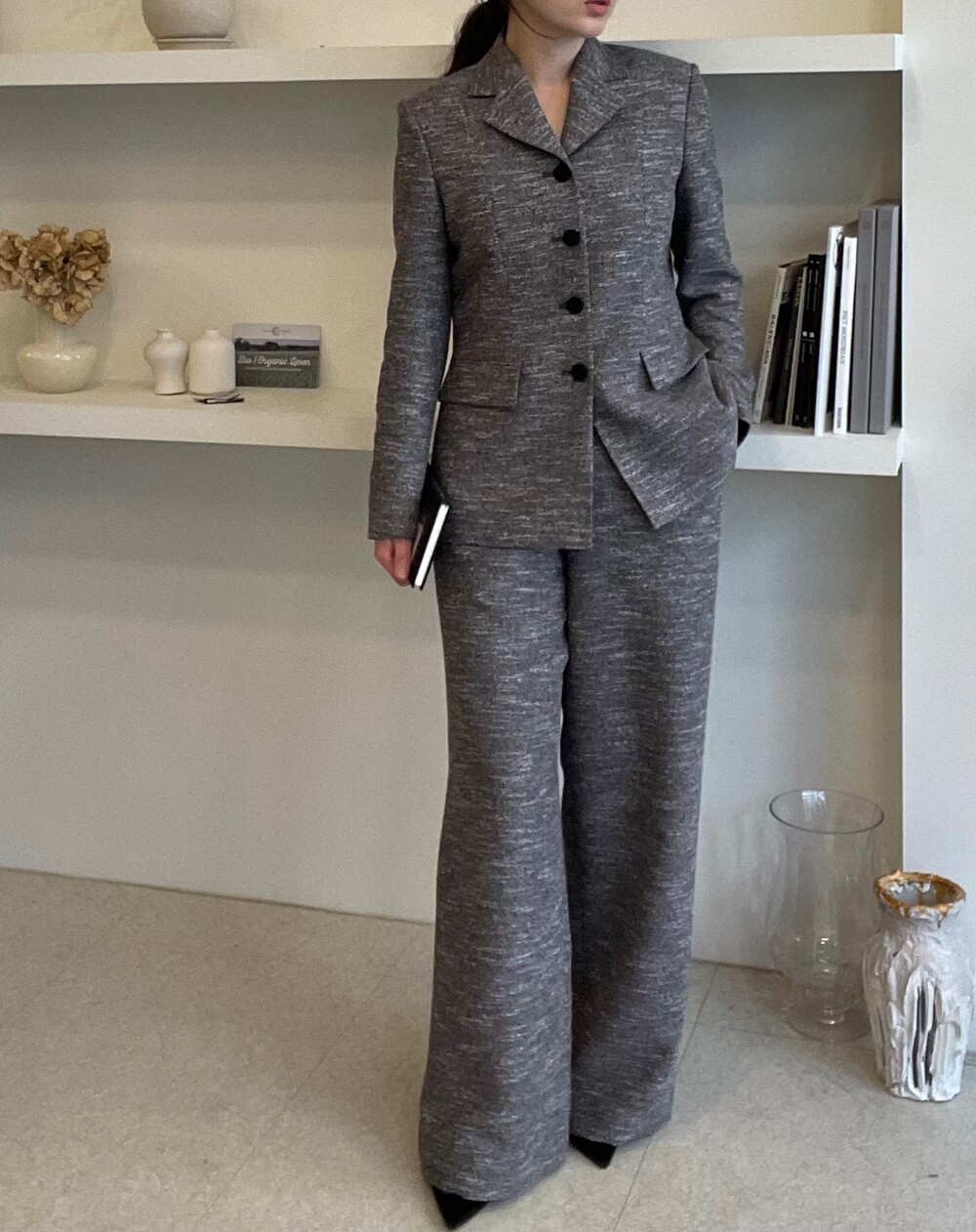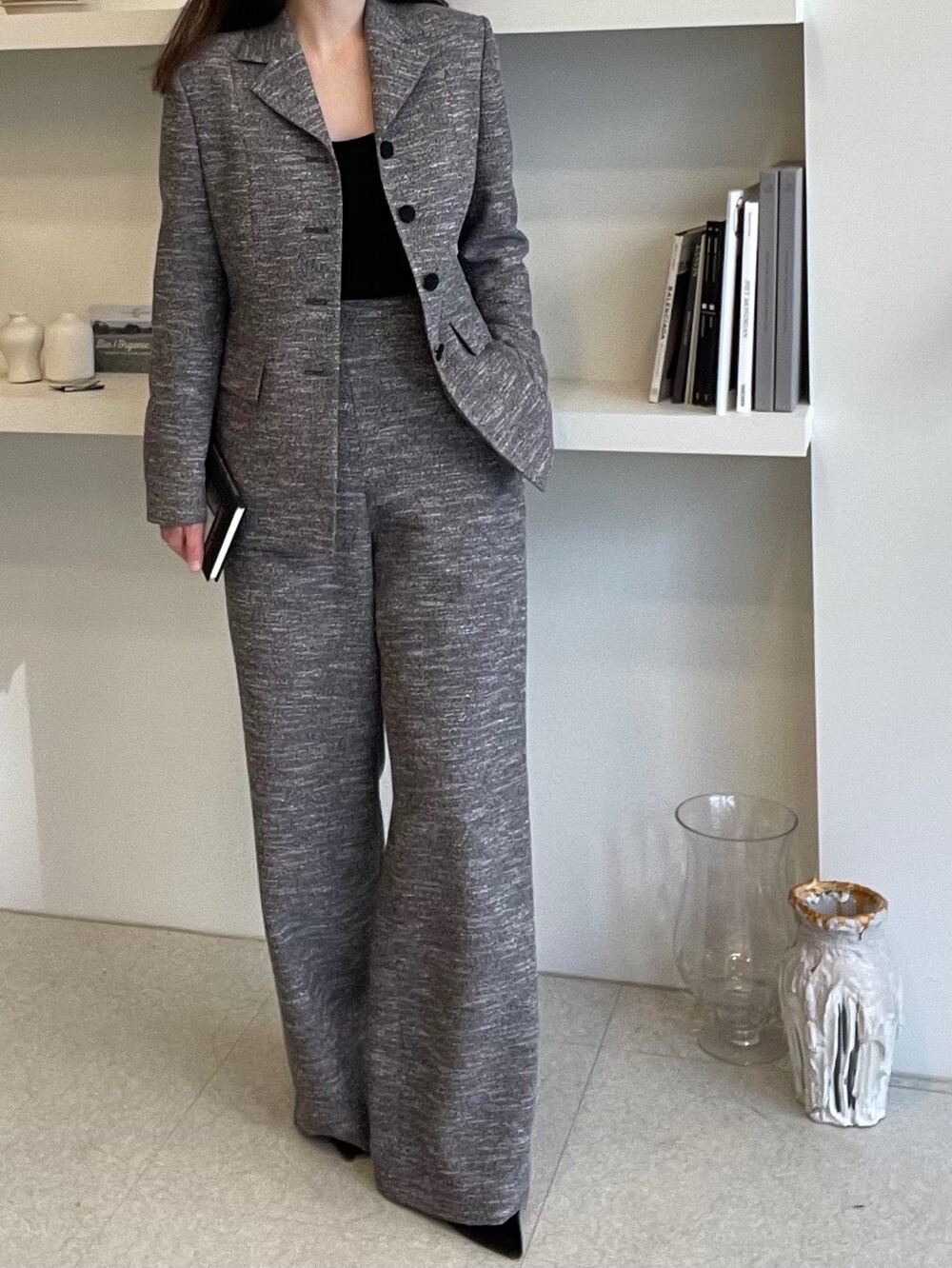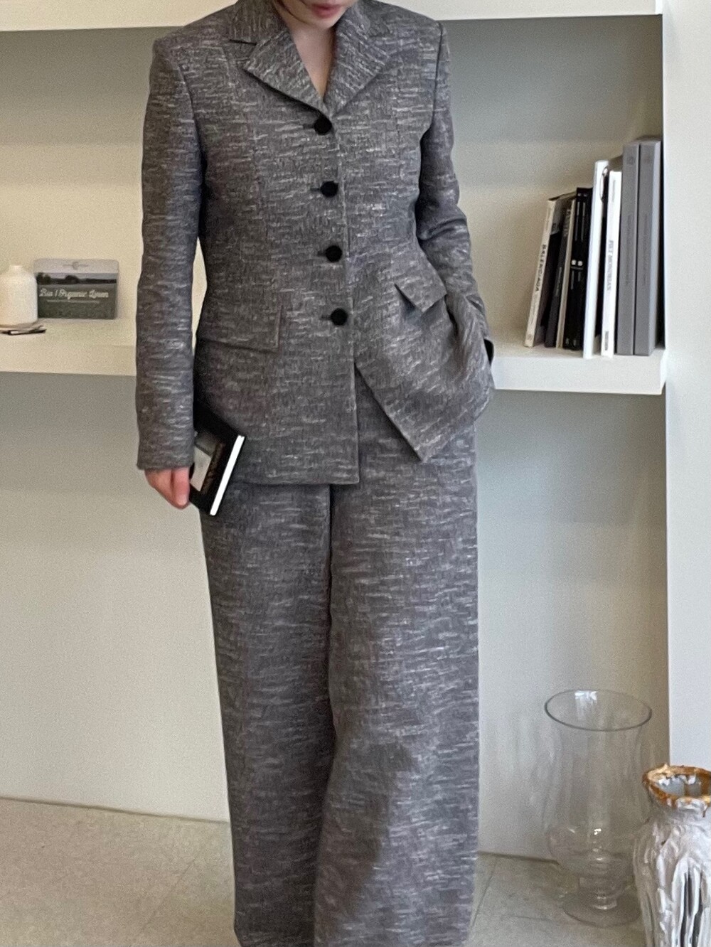 이태리 까베르니 원사로 만들어진 청량감이 느껴지는 트위드로 여름까지 즐길 수 있는 패브릭이며,
