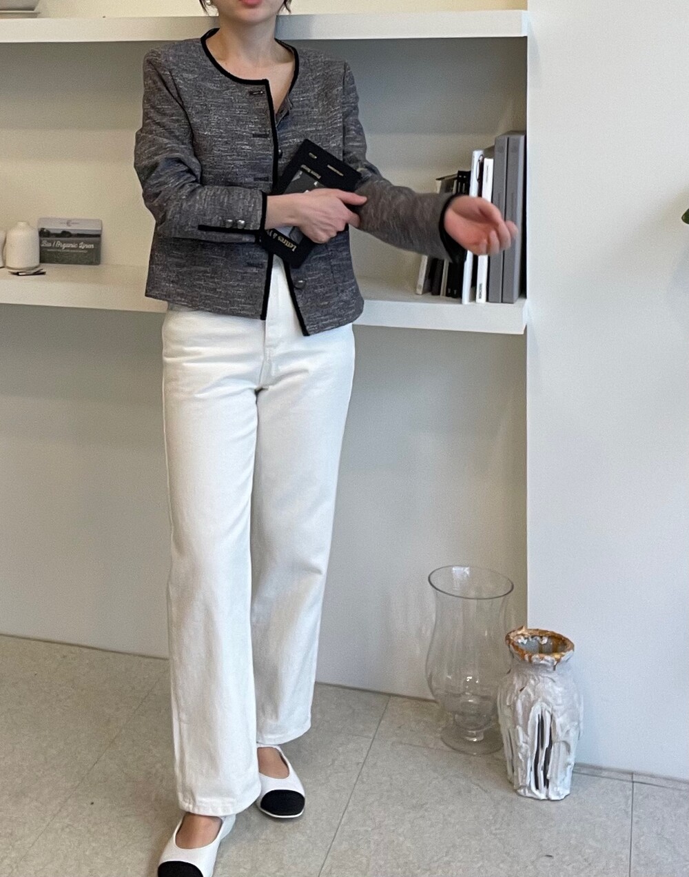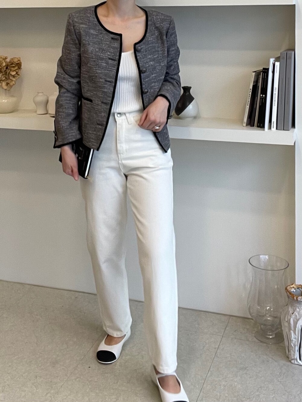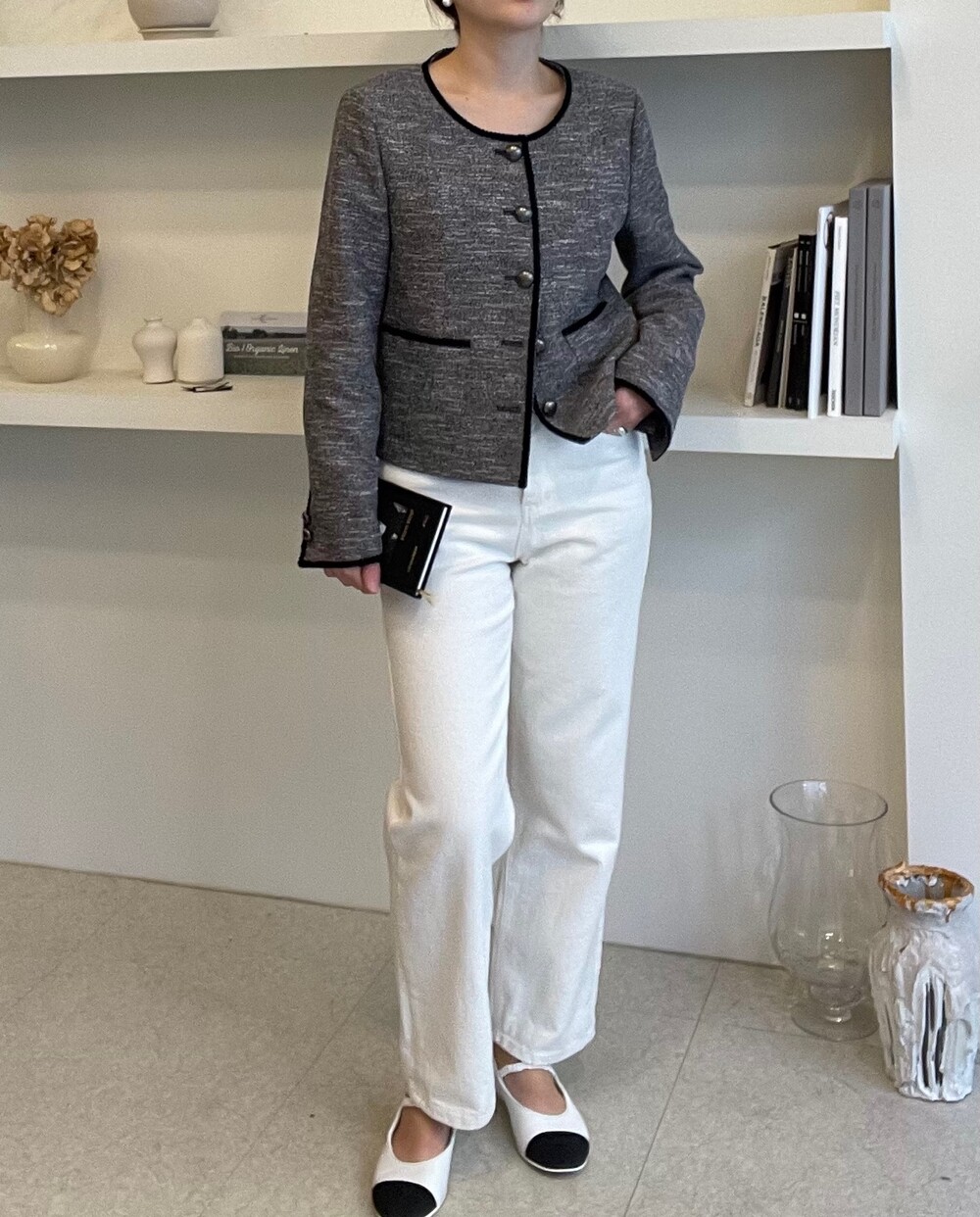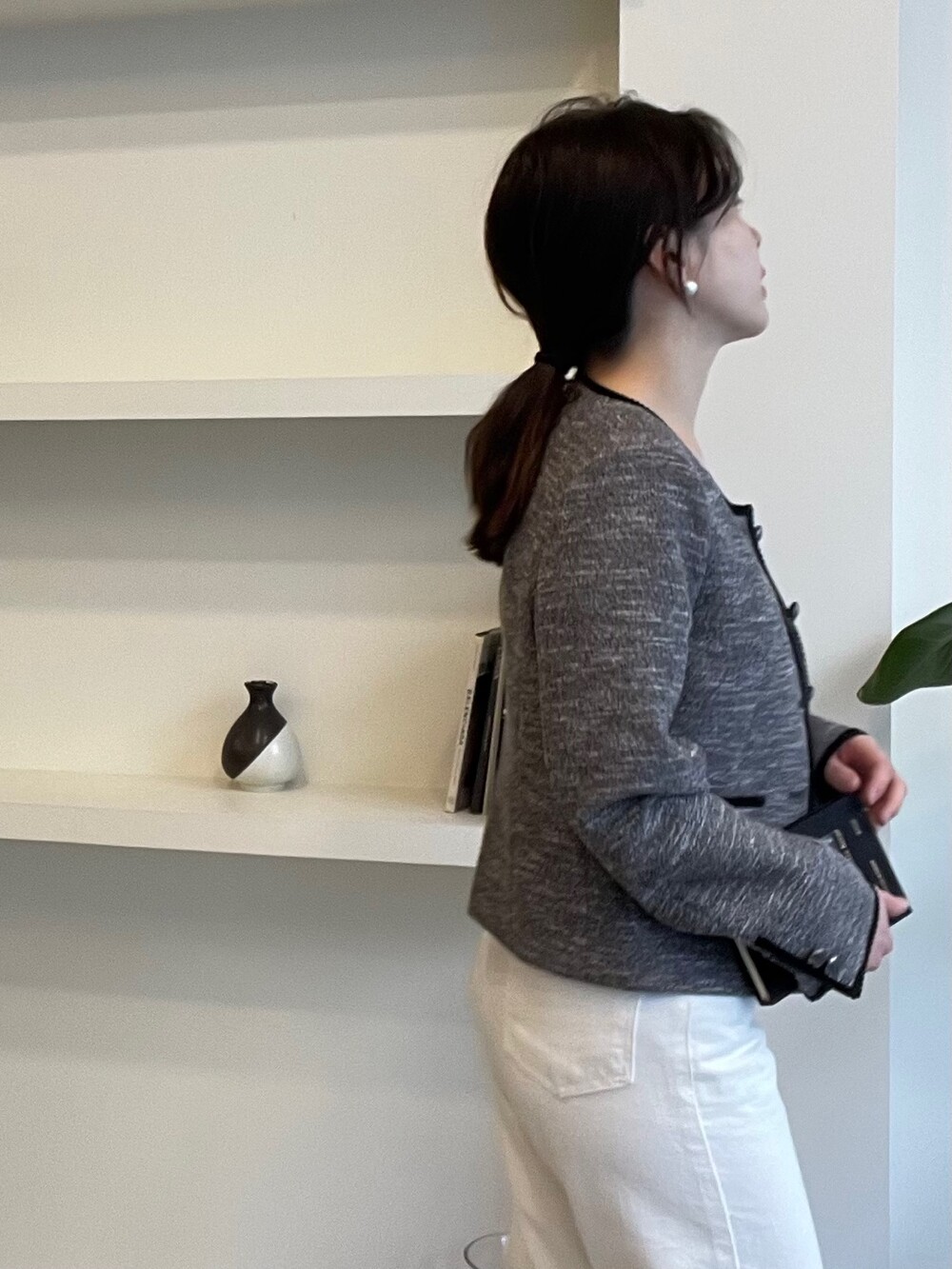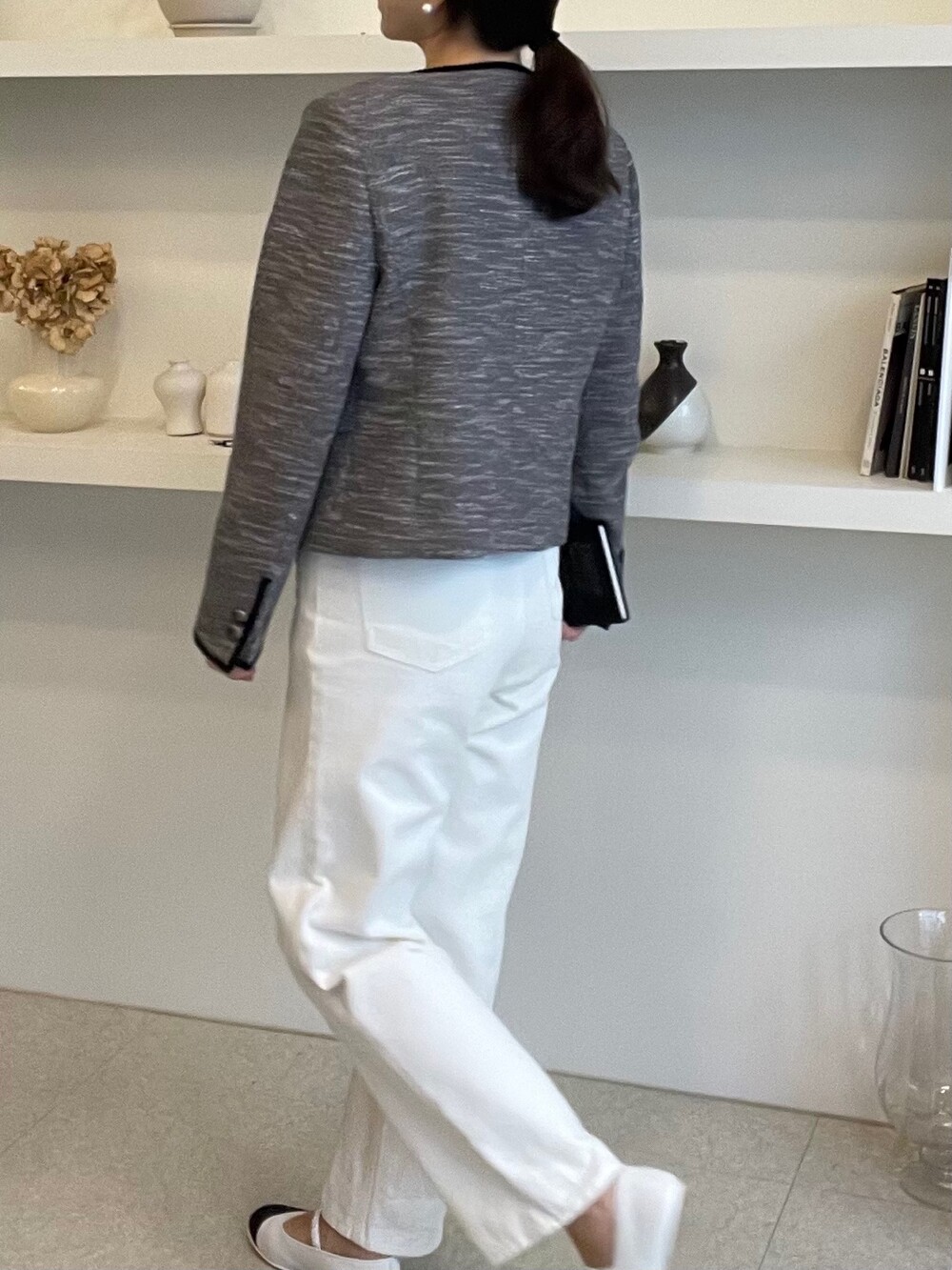 가볍고 시원하게 입을 수 있는 트위드 소재라서 제안되는 코디 외에도 반바지등 여름까지 폭 넓게 활용해 주세요.