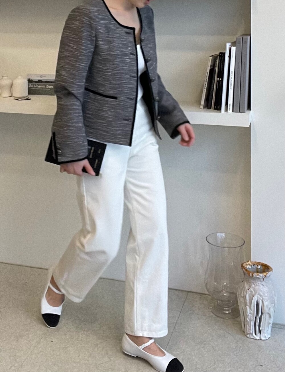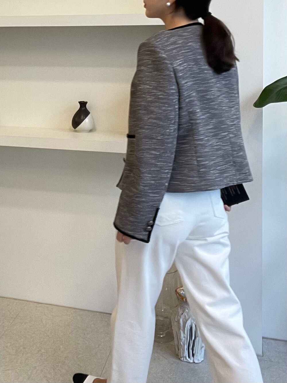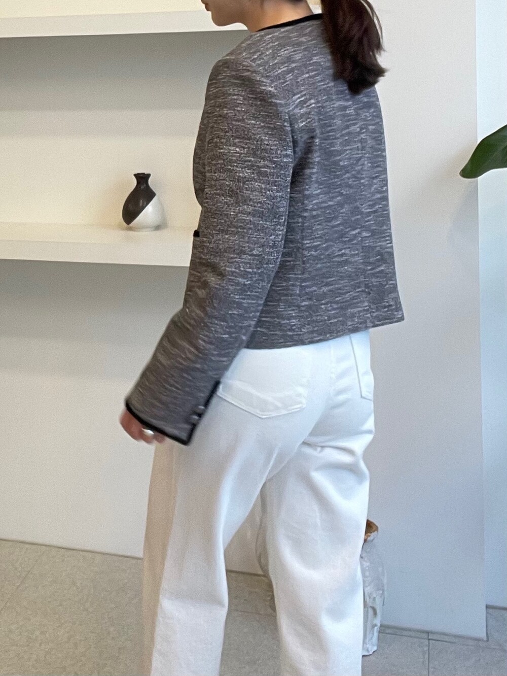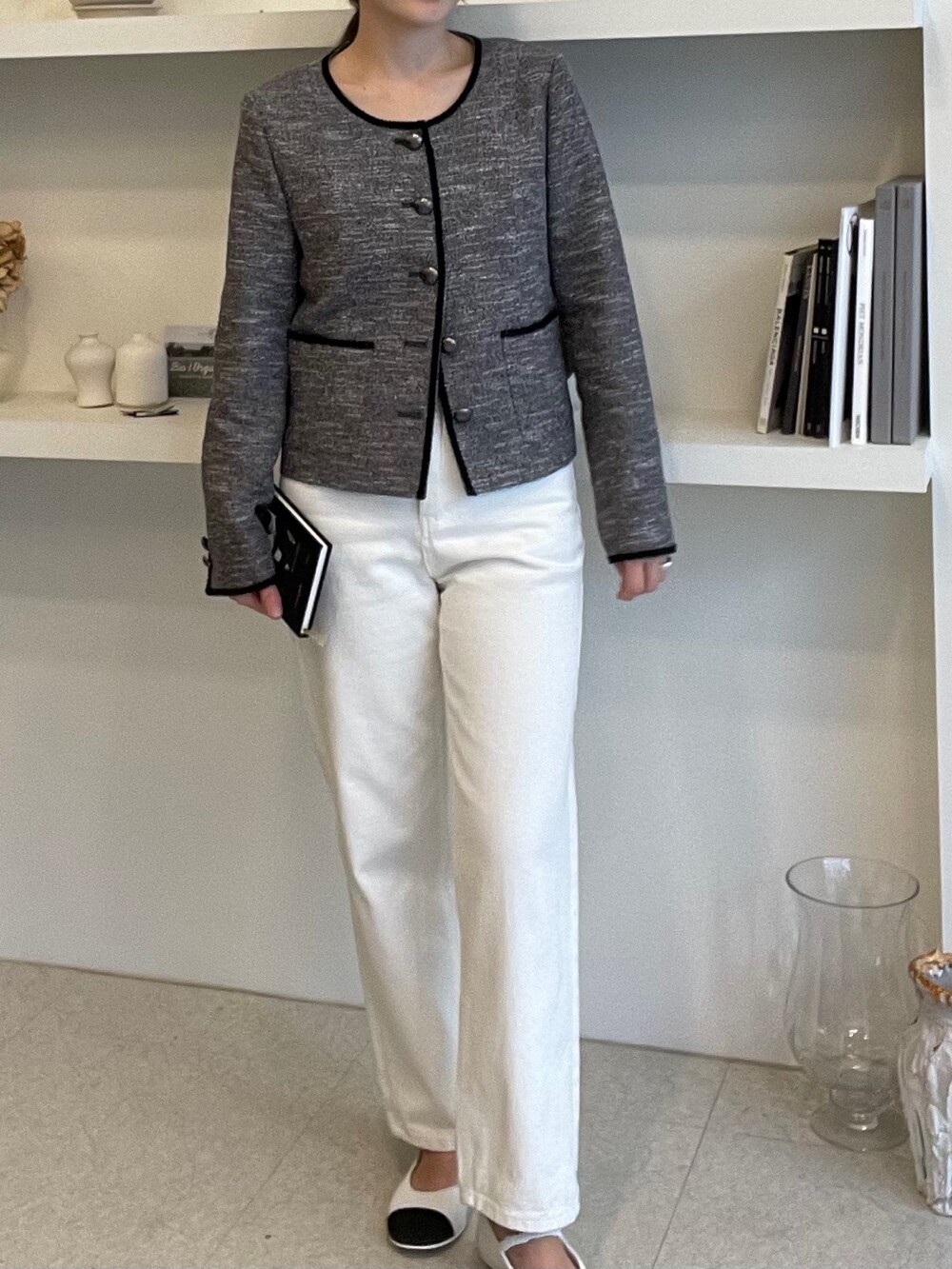 가볍고 시원하게 입을 수 있는 트위드 소재라서 제안되는 코디 외에도 반바지등 여름까지 폭 넓게 활용해 주세요.